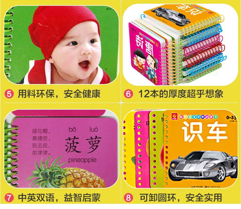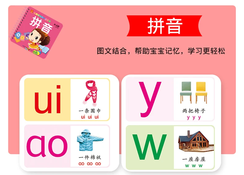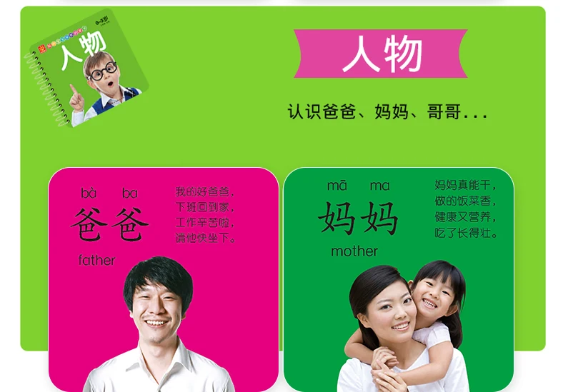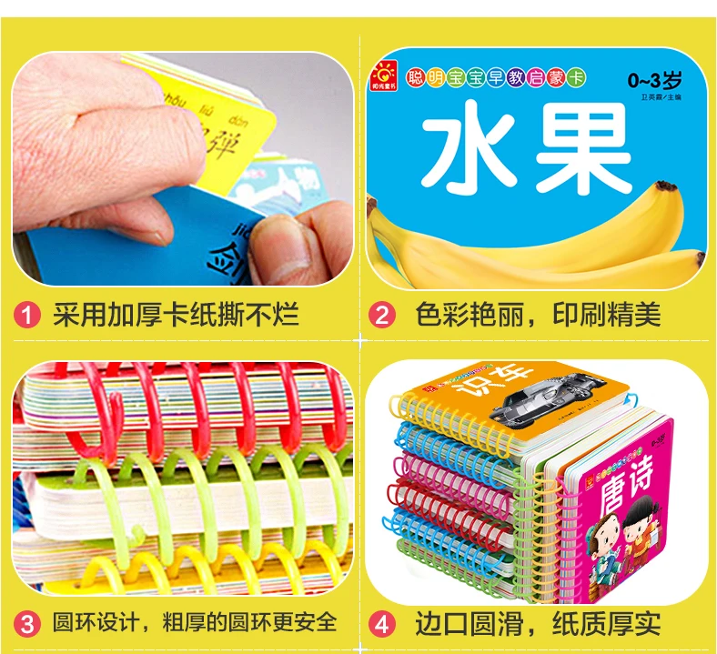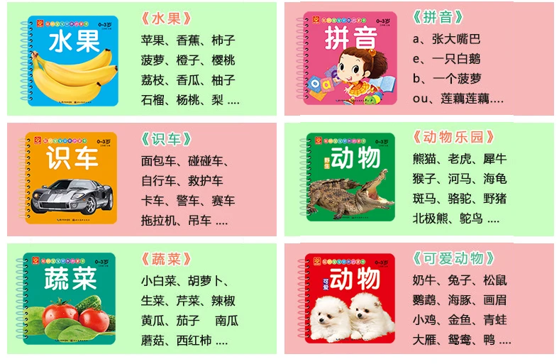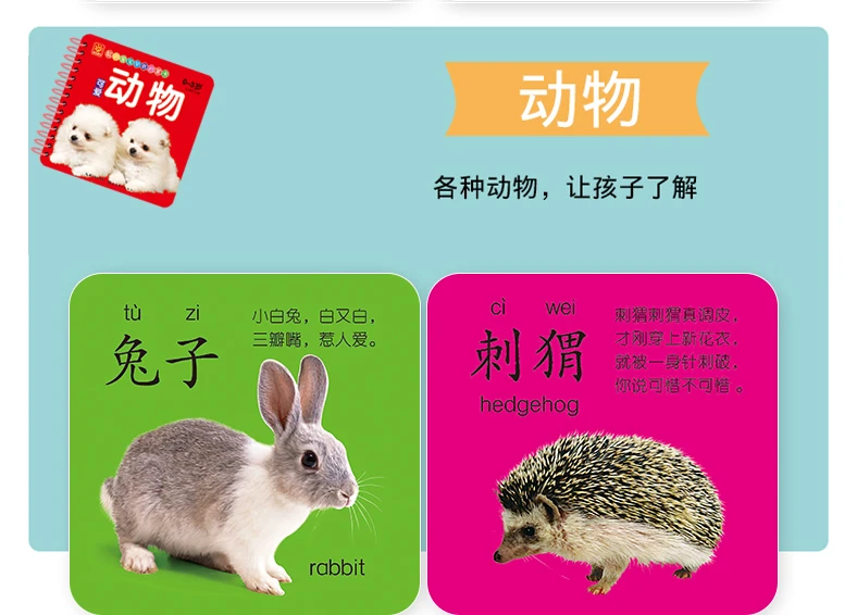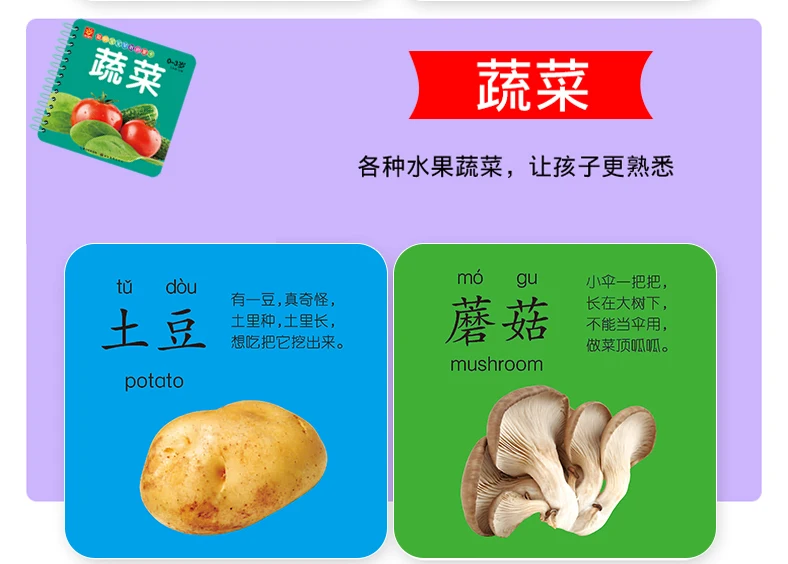 New 10pcs Kids Chinese Learning Cards pictures books with Pinyin English Chinese character book hanzi fruit animal people cards