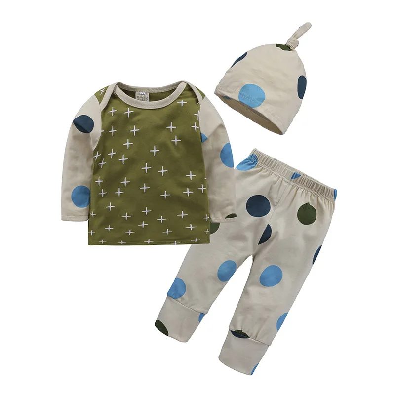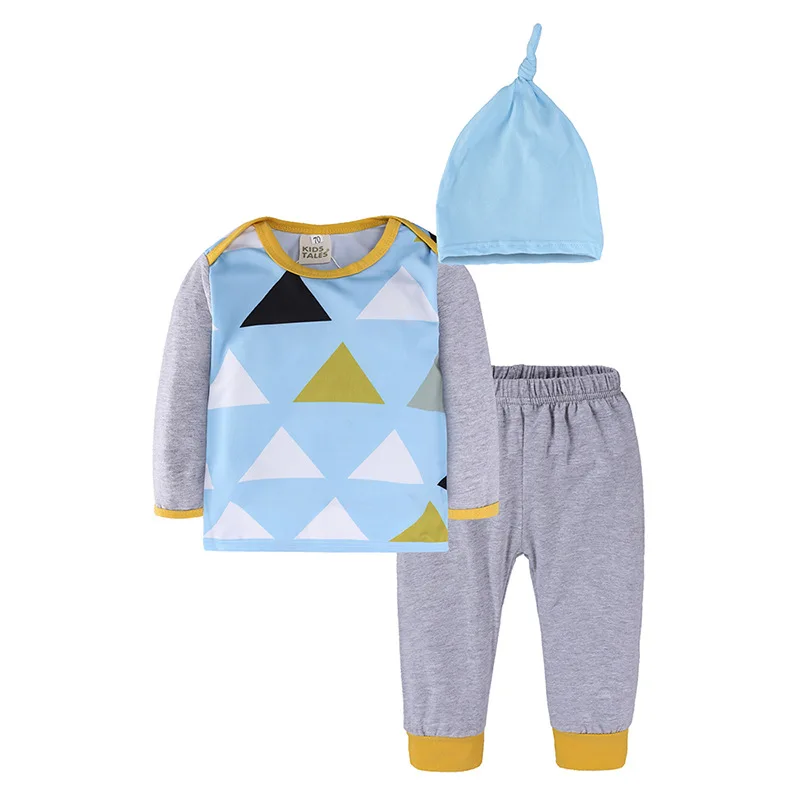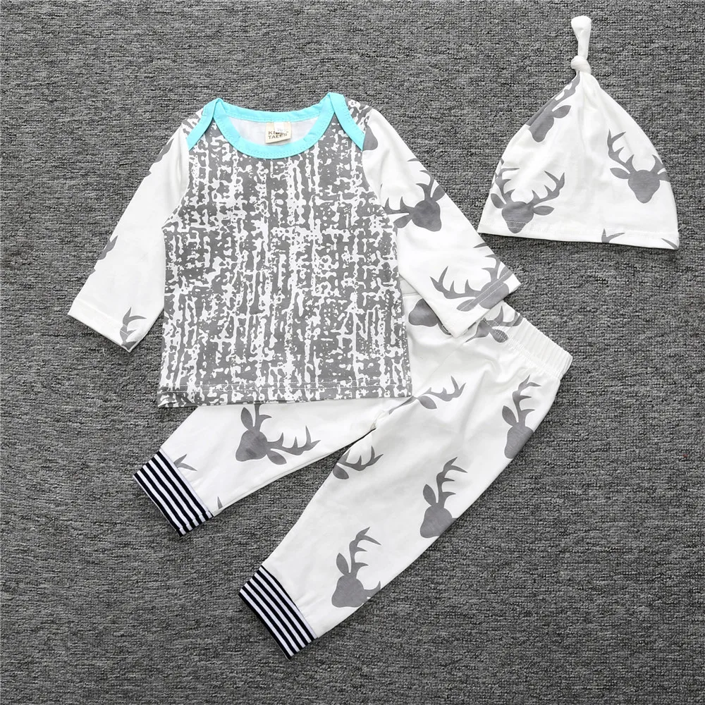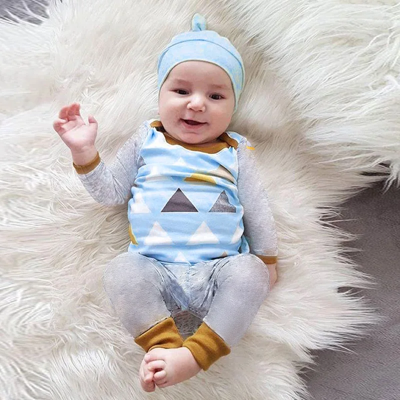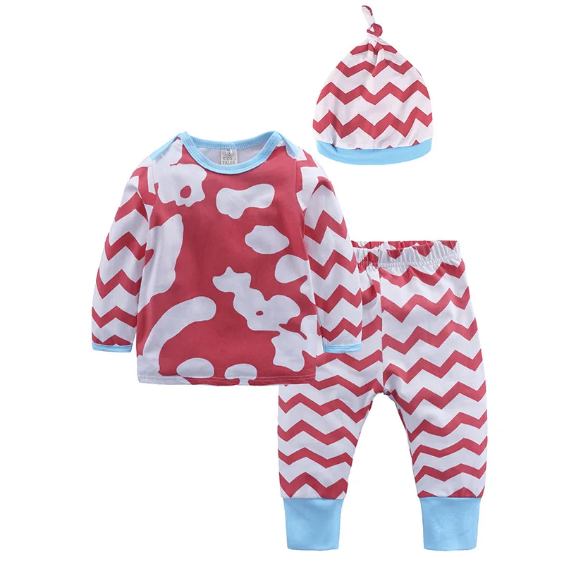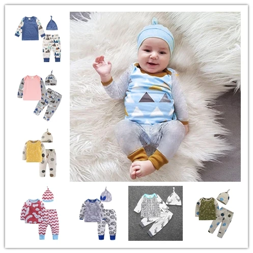 New 2018 Baby Clothing Set Fashion cartoon Pattern Patchwork Top+Pants+Hat Newborn Baby Boy Girl Clothes Toddler Outfits