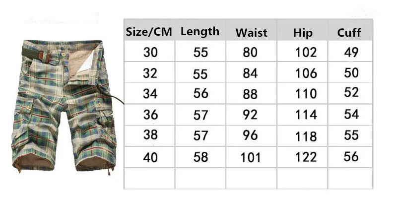 New 2018 Summer Fashion Plaid Beach Shorts Men’s Casual Camo Camouflage Shorts Military Short Pants Male Bermuda Cargo Overalls