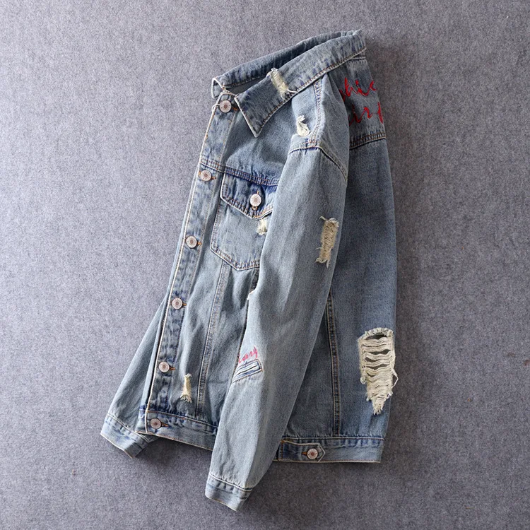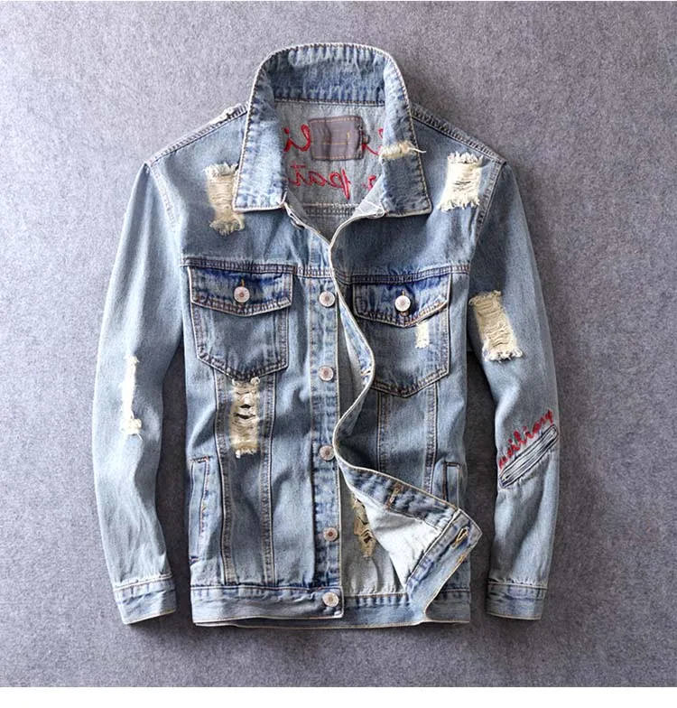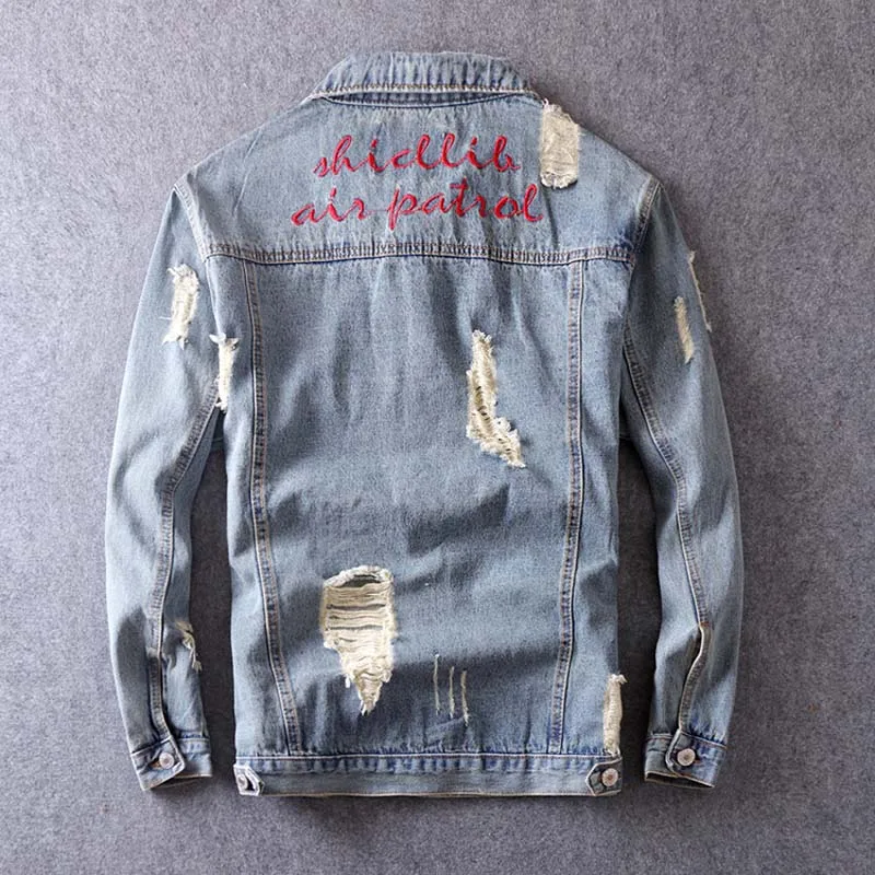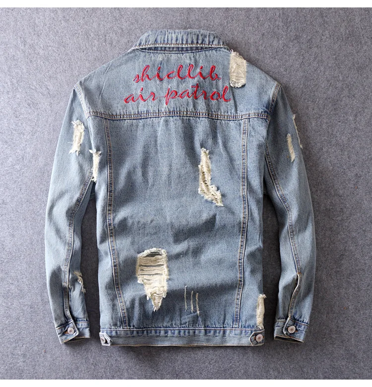 New 2019 Autumn Style Fashion Patch Denim Jacket Streetwear Hole Patchwork Jean Jacket Men Denim Jackets