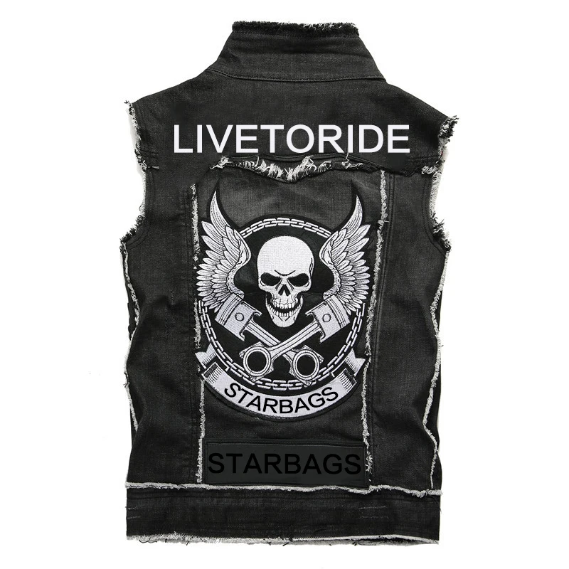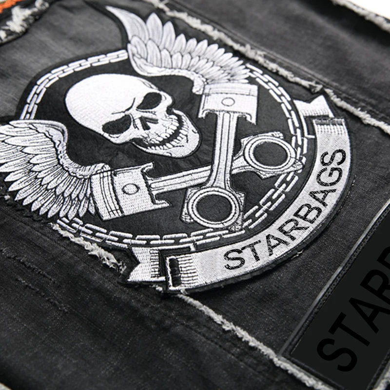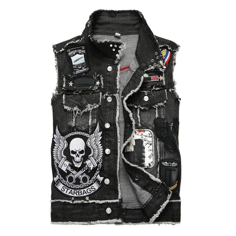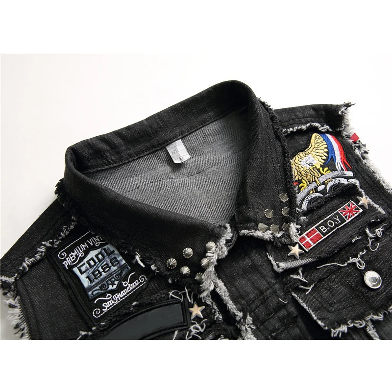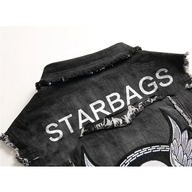 New 2023 spring men’s black embroidered denim cardigan youth popular lapel men’s casual vest