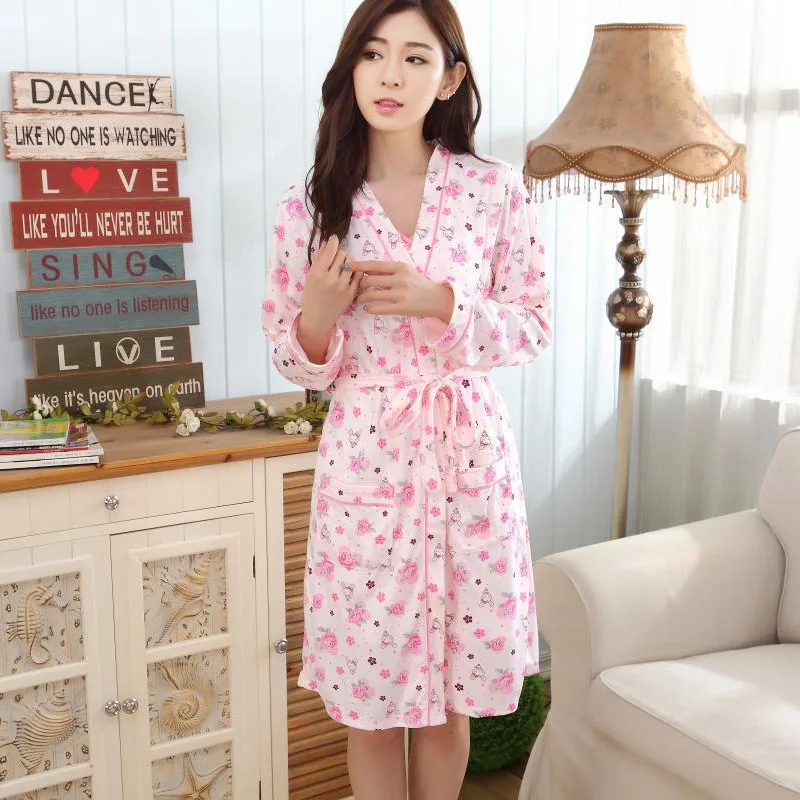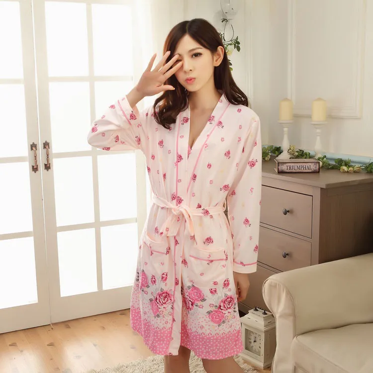 new arrival 2 pcs cotton women pajamas flower print robe sets one size Nightgowns&Sleepshirts women cardigan sleepwear