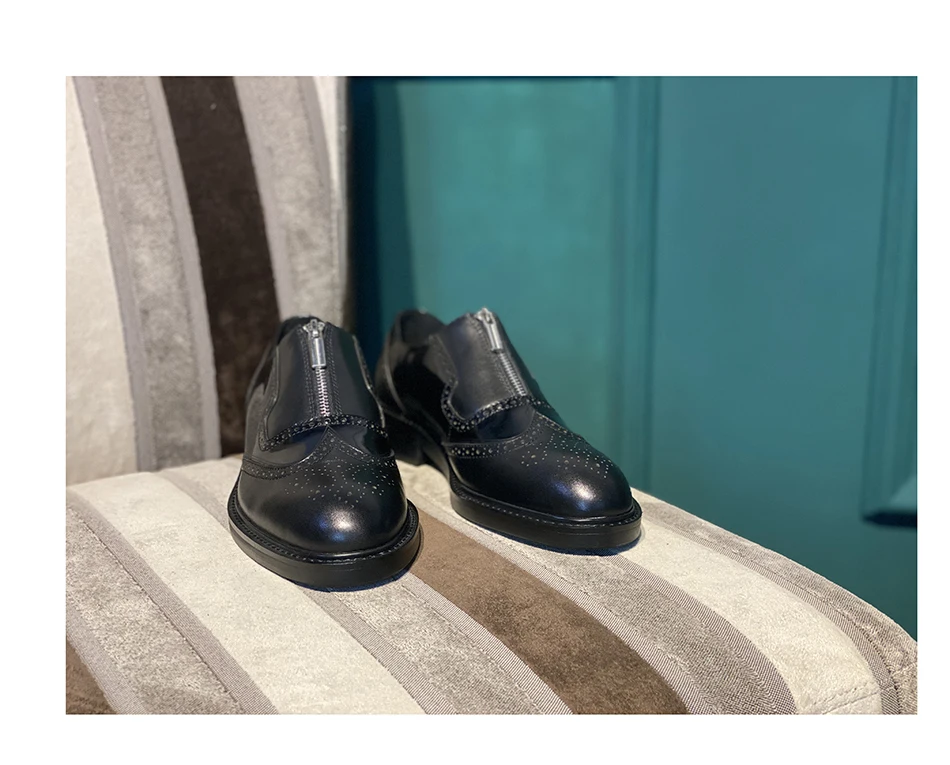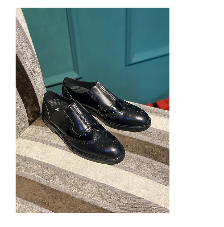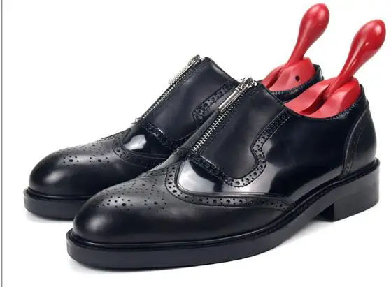 New arrival business shoes brugue dress shoes for men classics carved slip on zipper black men shoes
