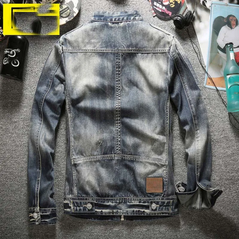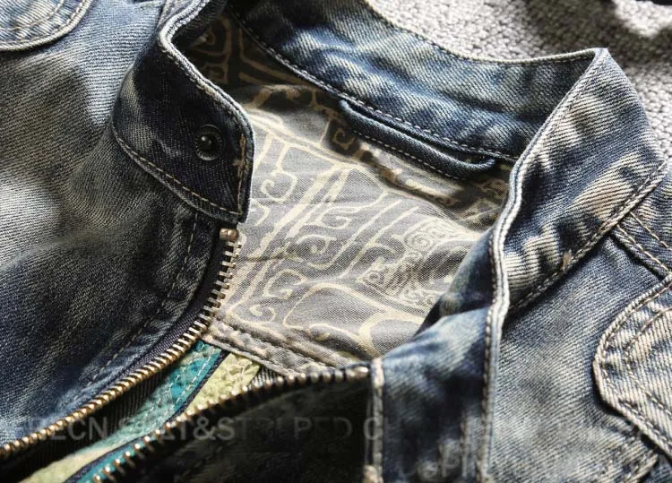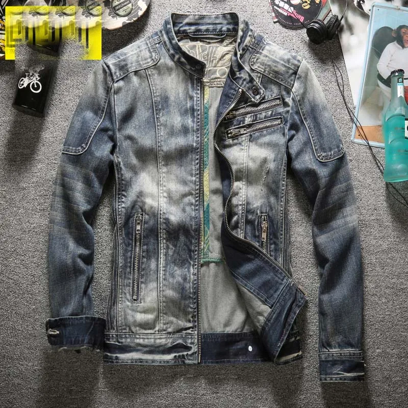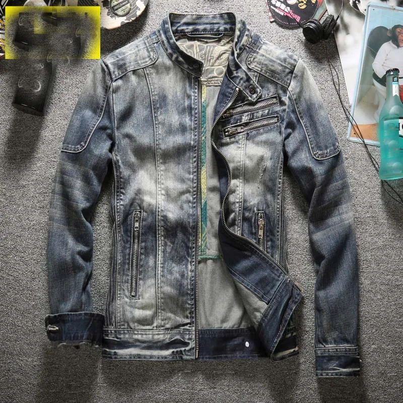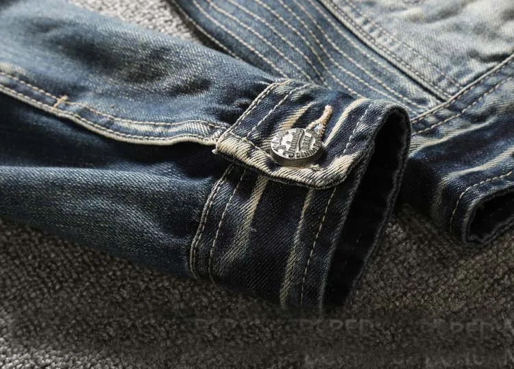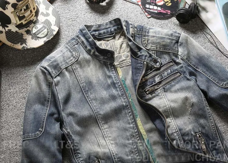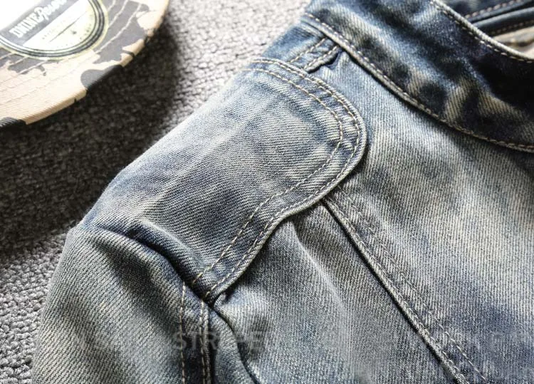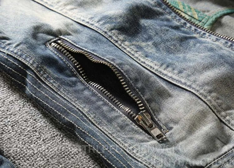 New Arrivals Mens Biker Jeans Jacket Coats Streetwear Patchwork Pattern Designer Male Suit Denim Coats XXXL