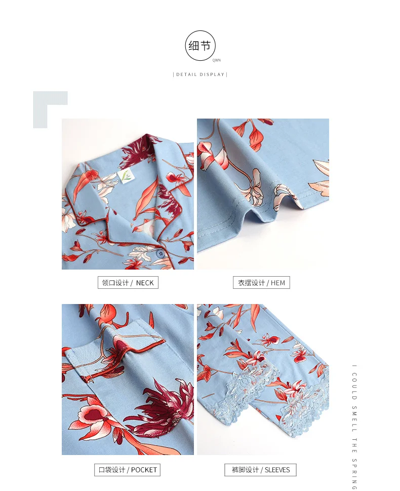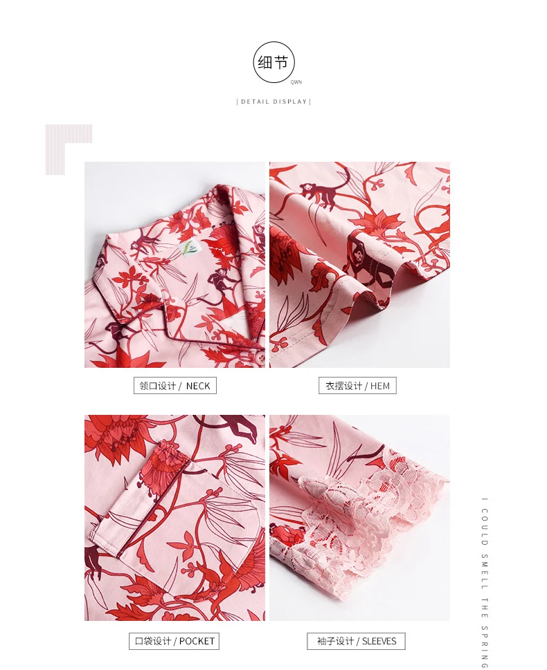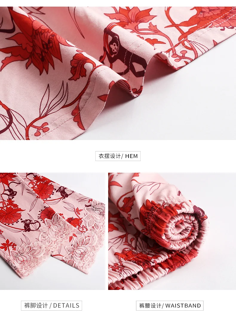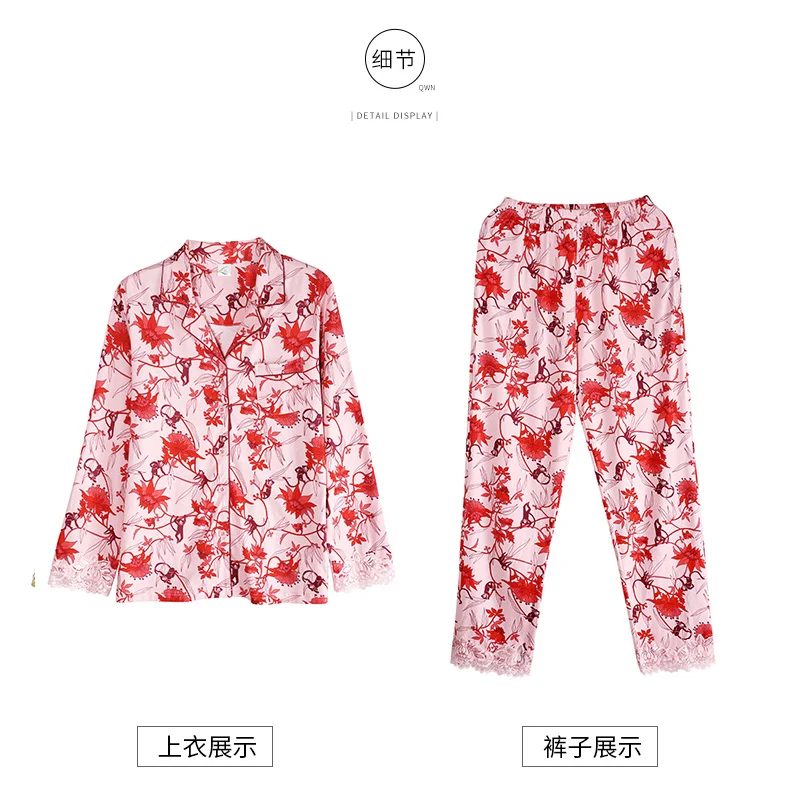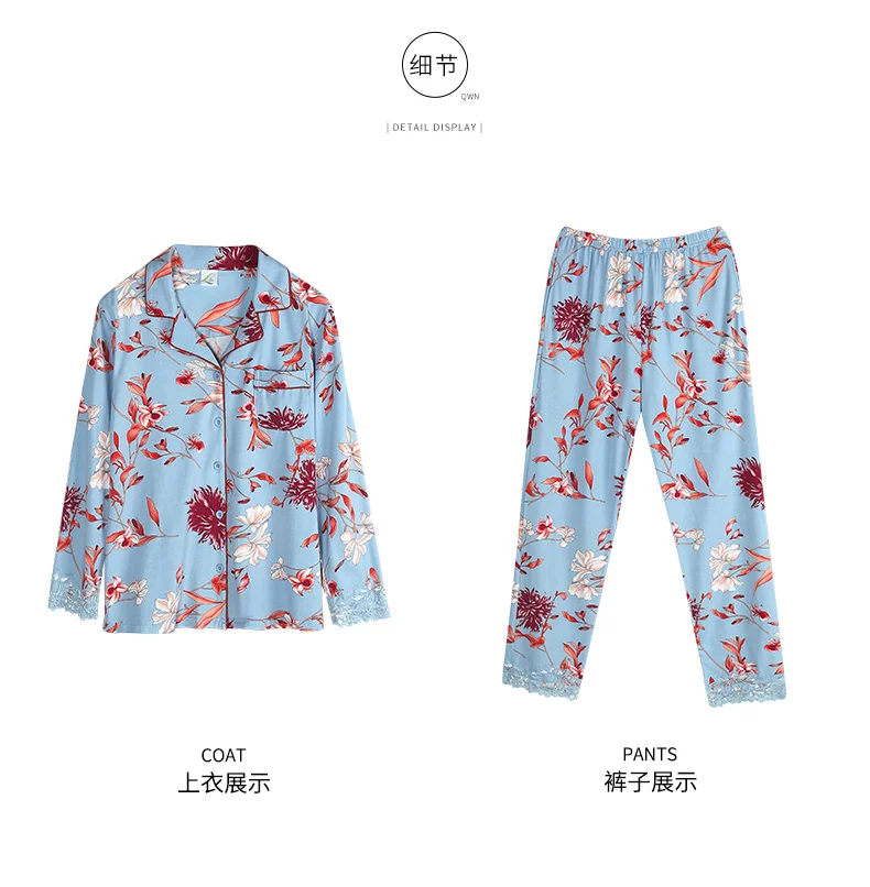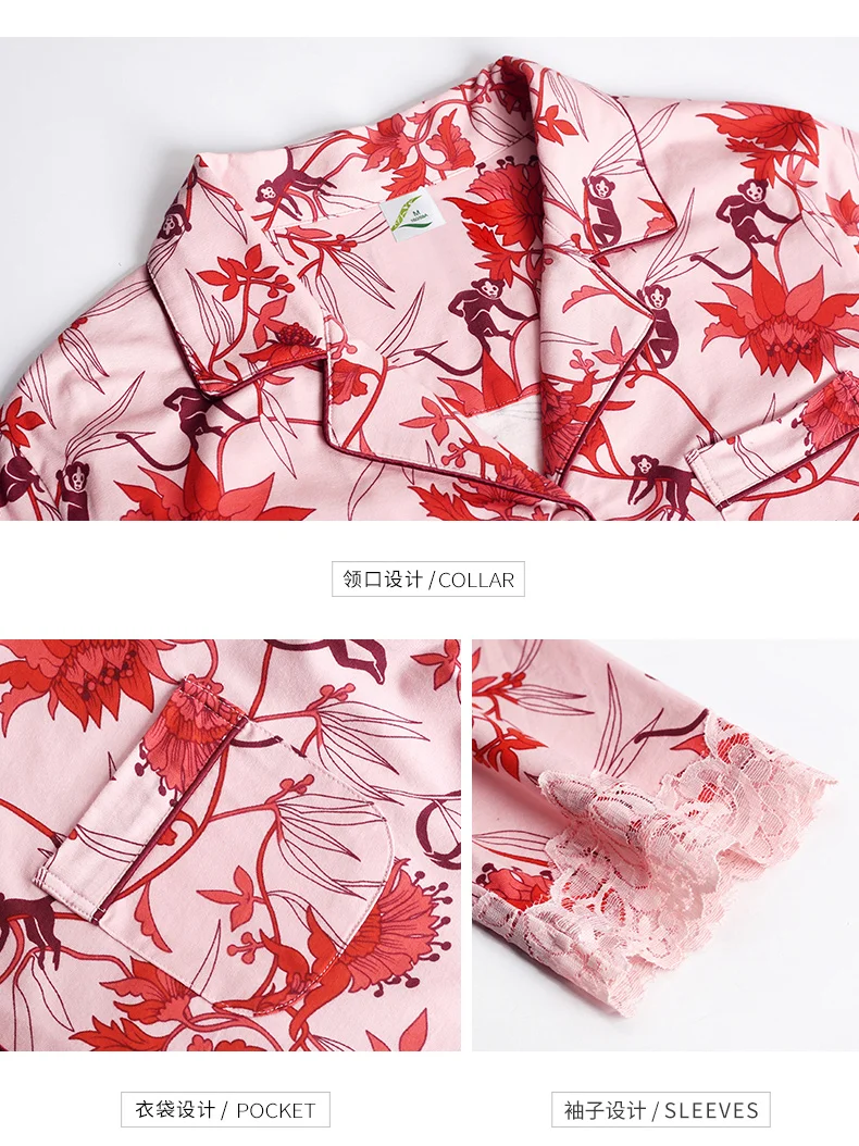 New Autumn Pyjamas Women Lace Pajama Sets Lovely Floral Print Sleepwear For Women M-XXXL Modal Cotton Pijamas Mujer