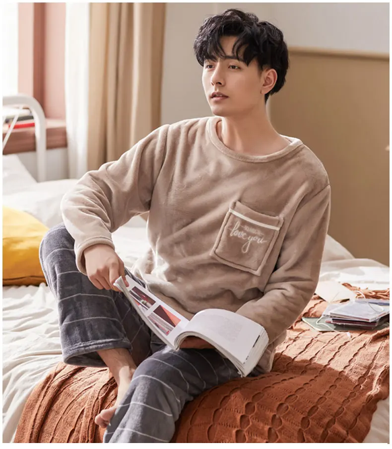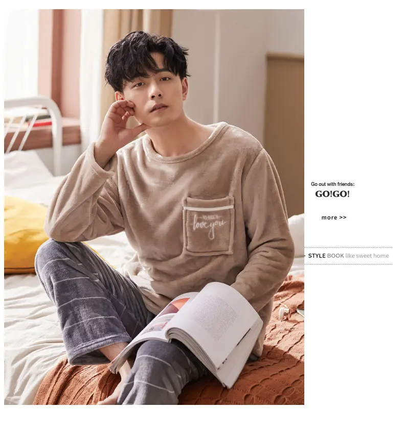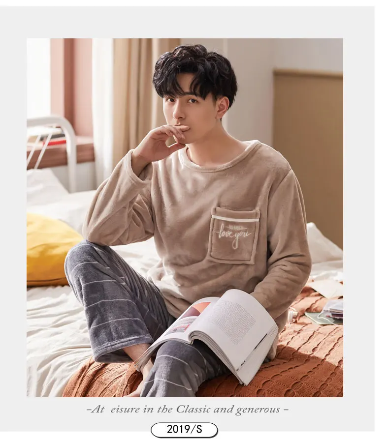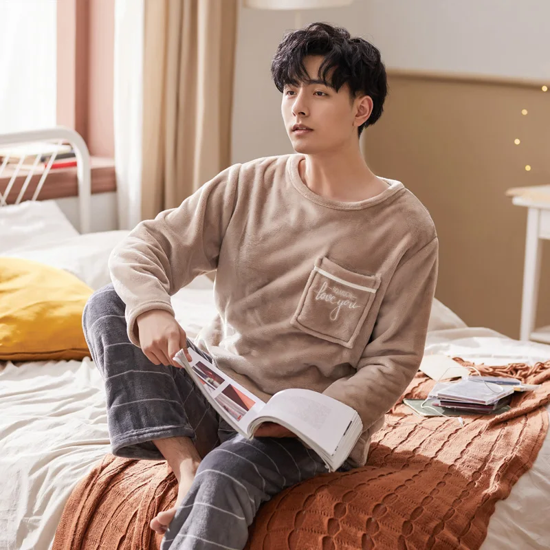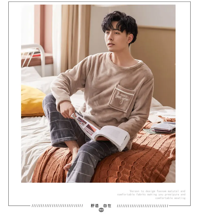 New Autumn Winter Thick Warm Men’s Pajamas Set Flannel Pyjama Homme Long Sleeve Casual Soft Plus Size L-3XL Male Sleepwear Suit