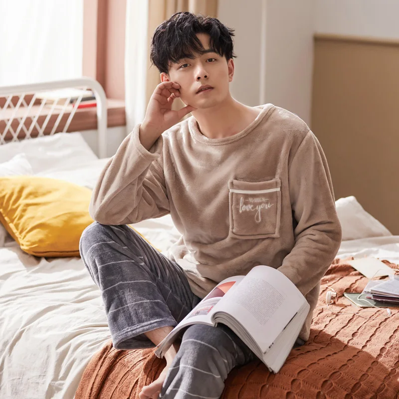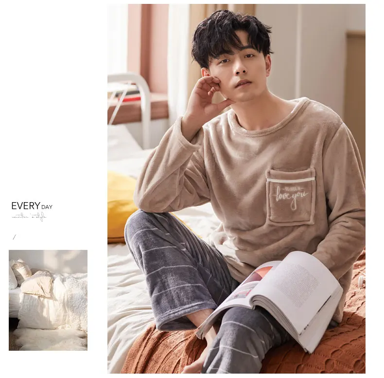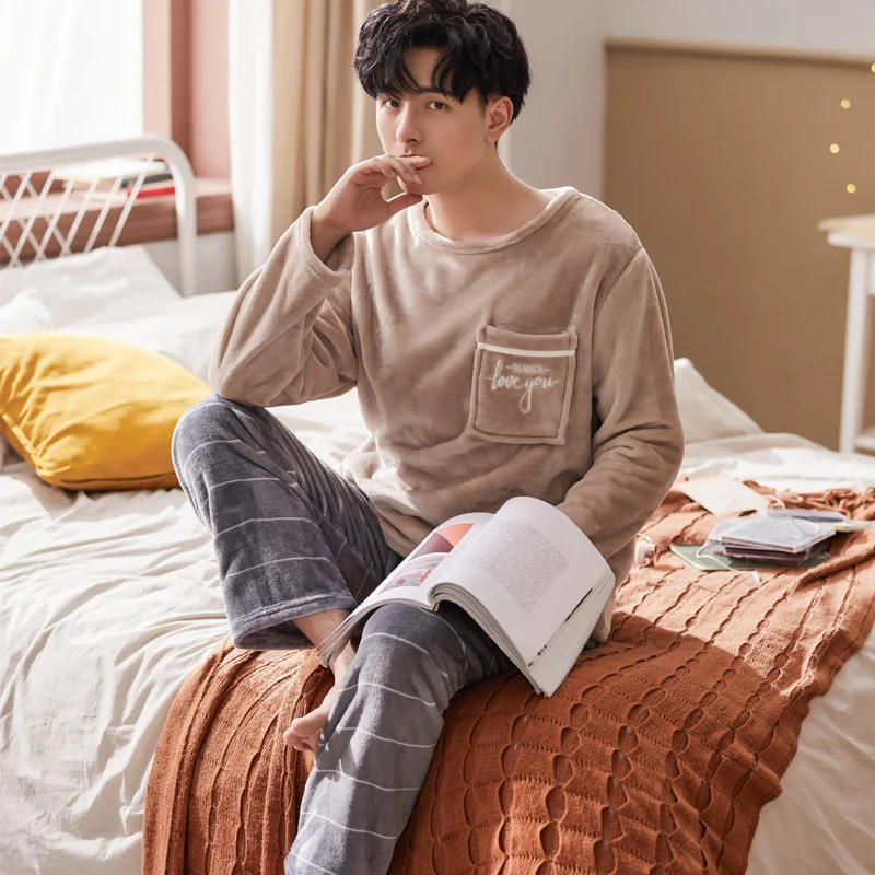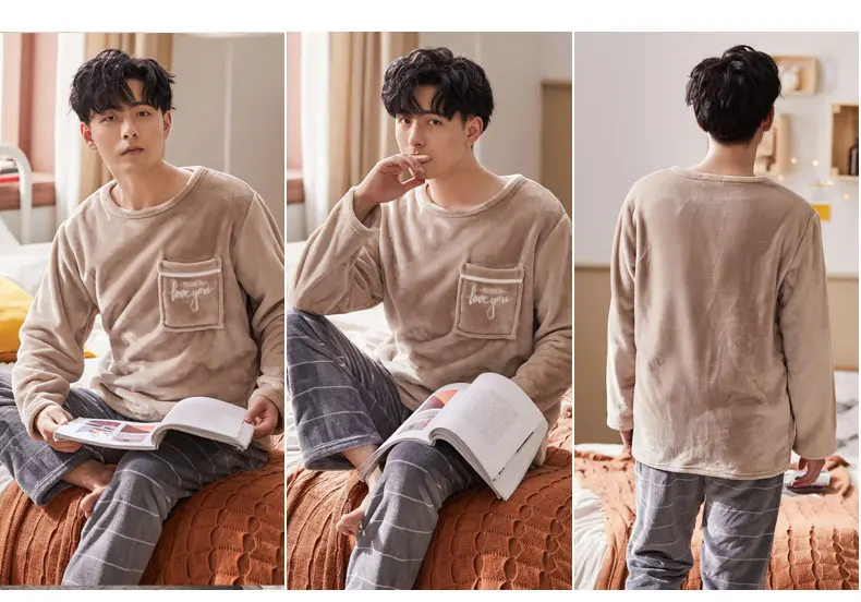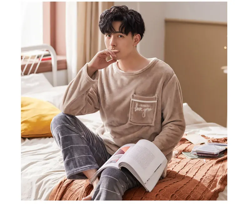 New Autumn Winter Thick Warm Men’s Pajamas Set Flannel Pyjama Homme Long Sleeve Casual Soft Plus Size L-3XL Male Sleepwear Suit