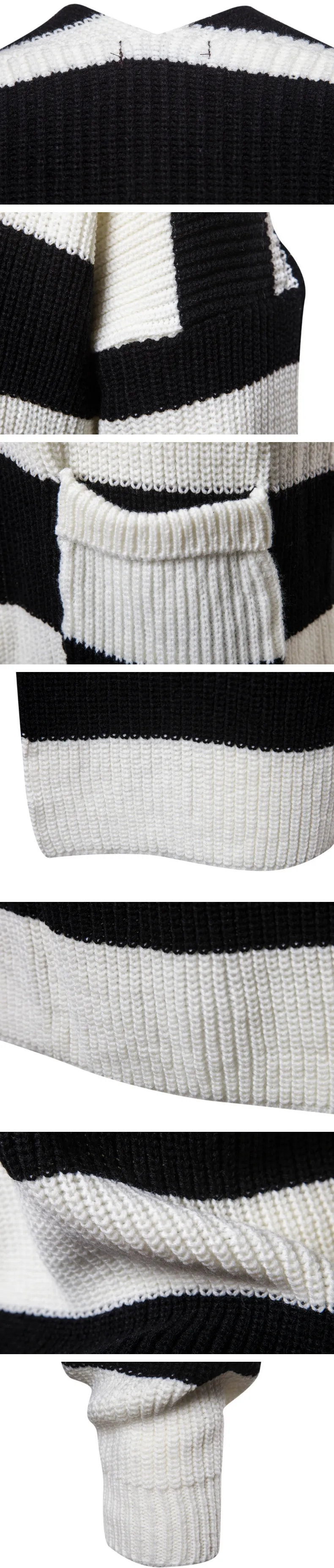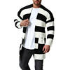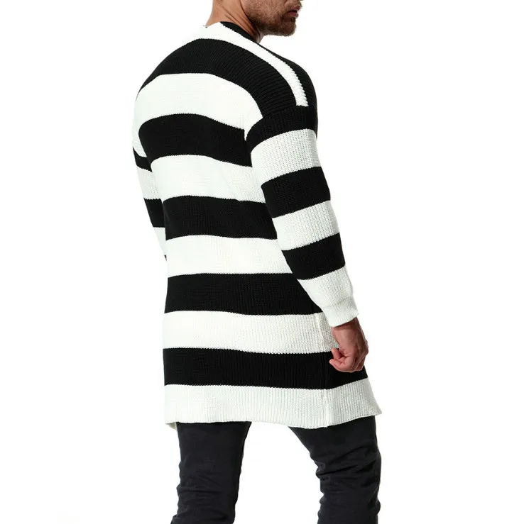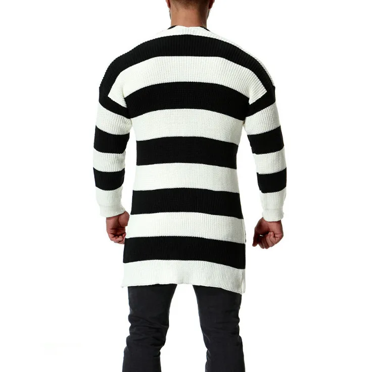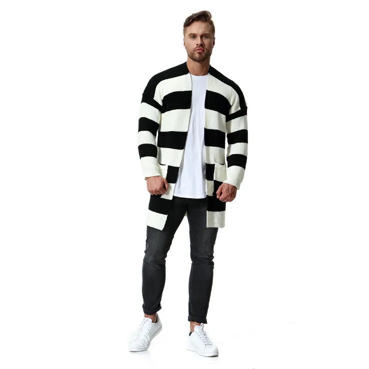 New Brand Long Cardigan Sweater Men British Style Loose Black White Striped Sweatercoat With Pocket Knit Windbreaker Male