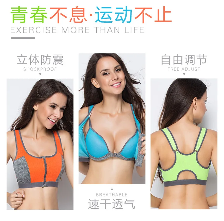 New Brassiere Sport Femme Top Sports Bra Female Fitness Bra Seamless Push Up Workout Bra Sexy Front Zipper Sports Wear For Women