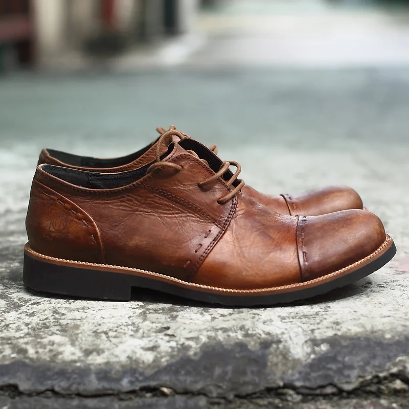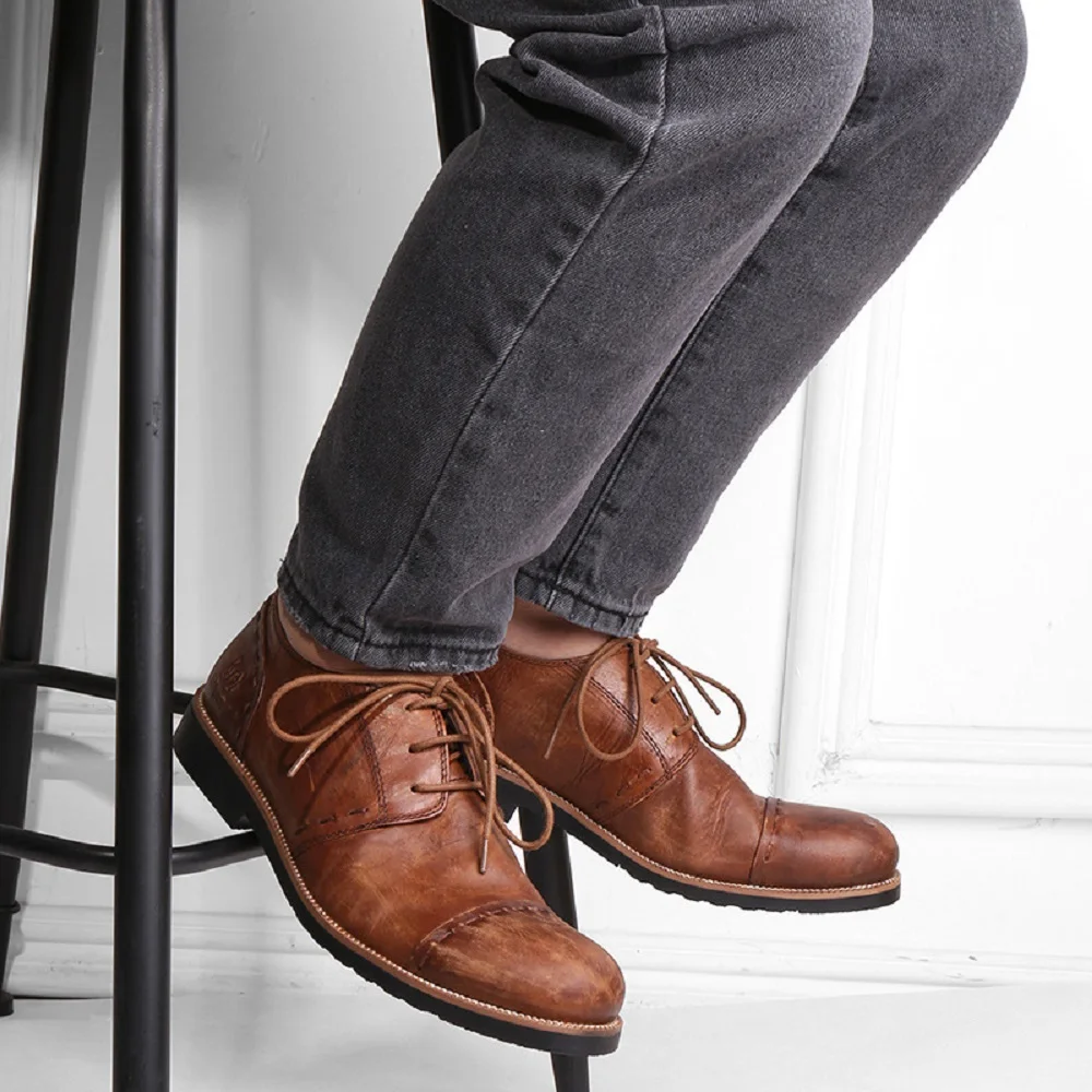 New British men’s leather casual shoes men’s fashion lace up hand made pleated men’s shoes round head retro shoes Punk