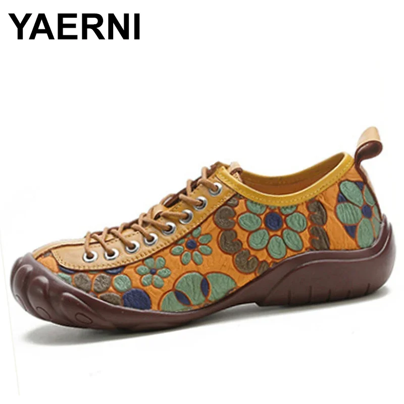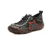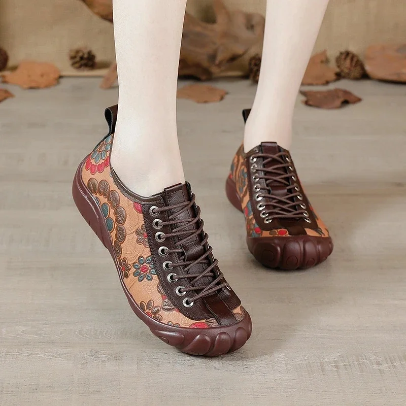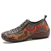 New Casual Lace Up Rainbow Print Stitching Loafers Shoes Women’s Leather Comfy Flats Women Female Boat Shoes