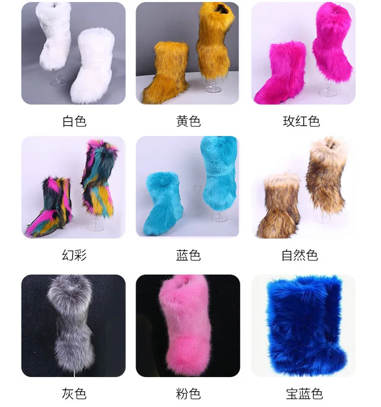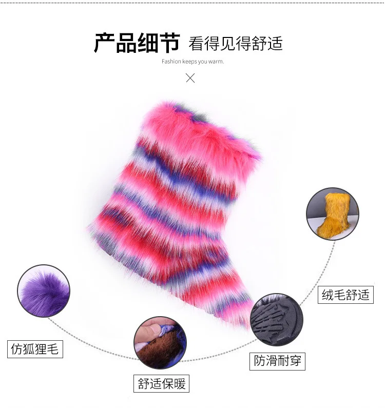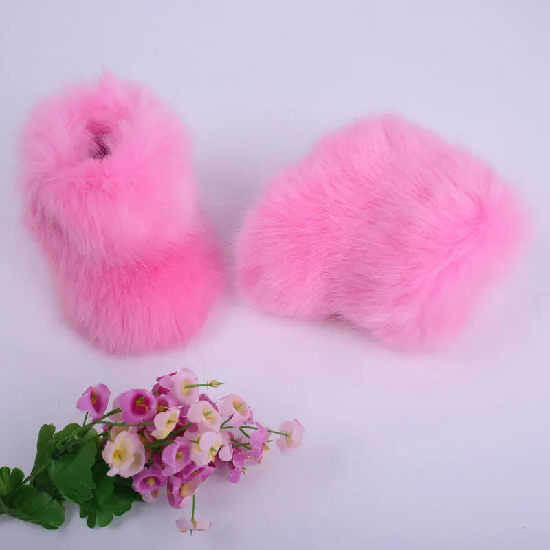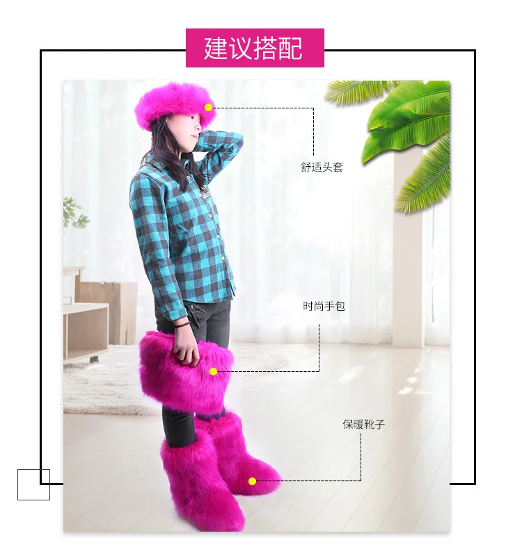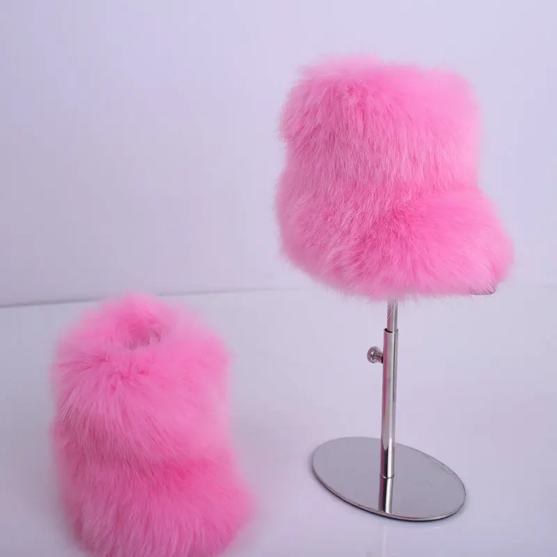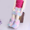 New Children Boots Long Natural Fur Shoes Colorful Princess Shoes Warm Snow Boots Long Tube Plush Girls Winter Shoes Baby Botas