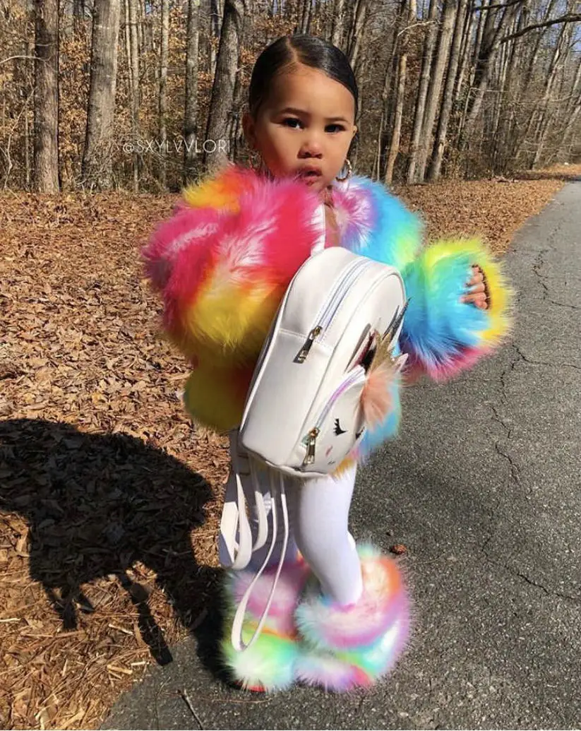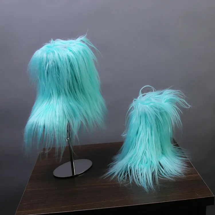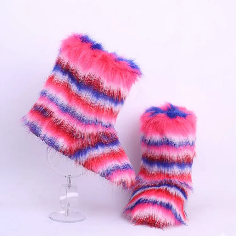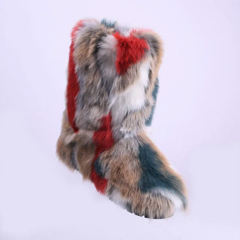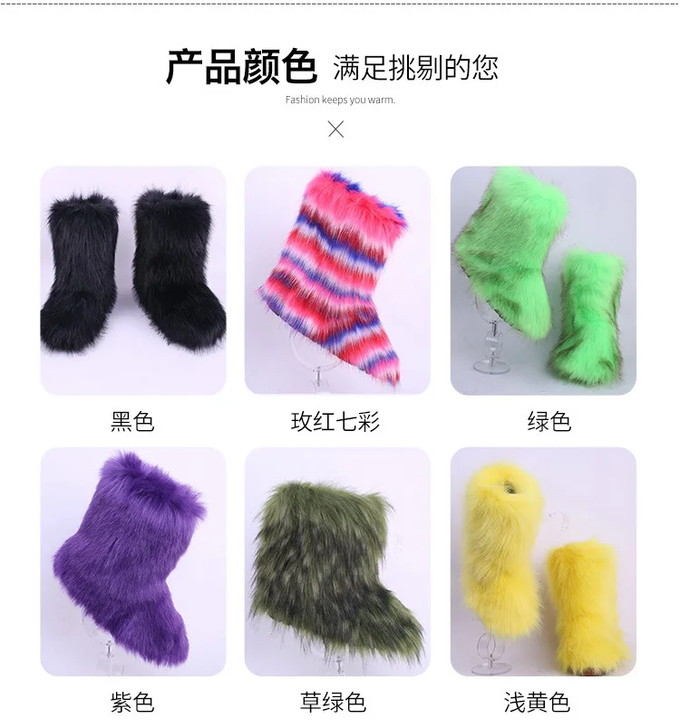 New Children Boots Long Natural Fur Shoes Colorful Princess Shoes Warm Snow Boots Long Tube Plush Girls Winter Shoes Baby Botas