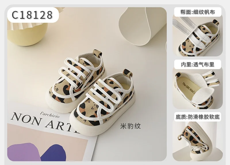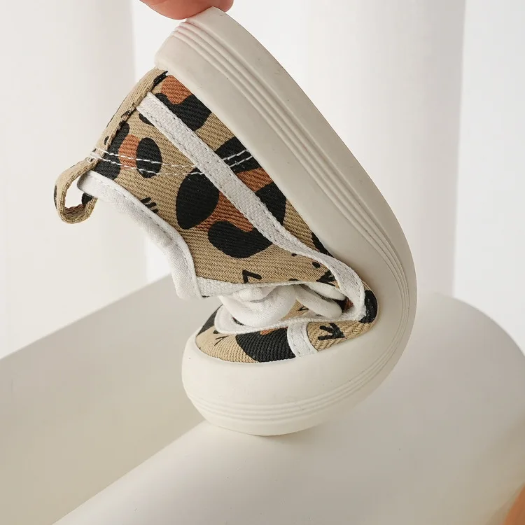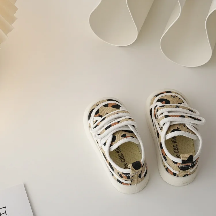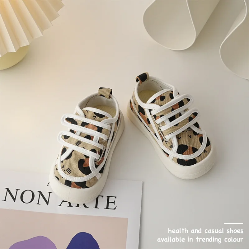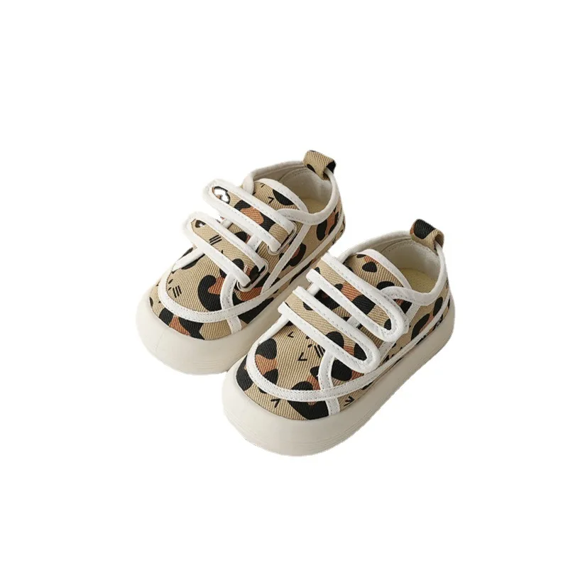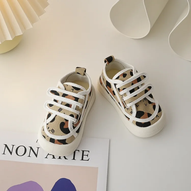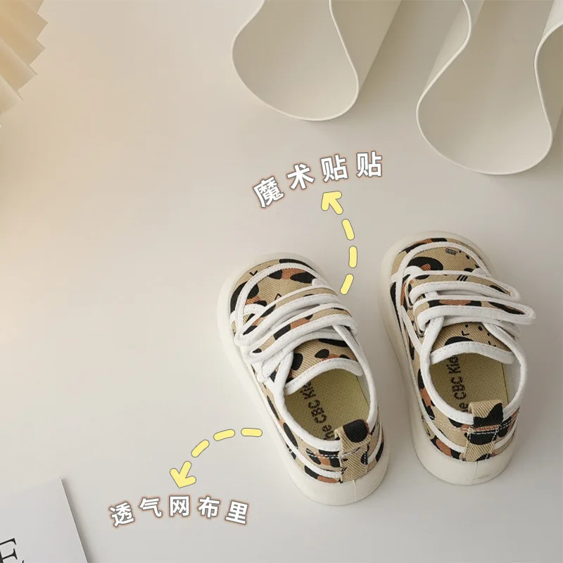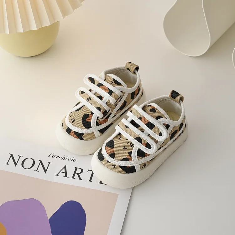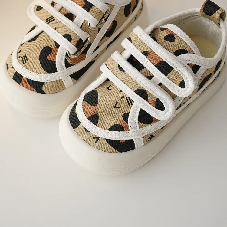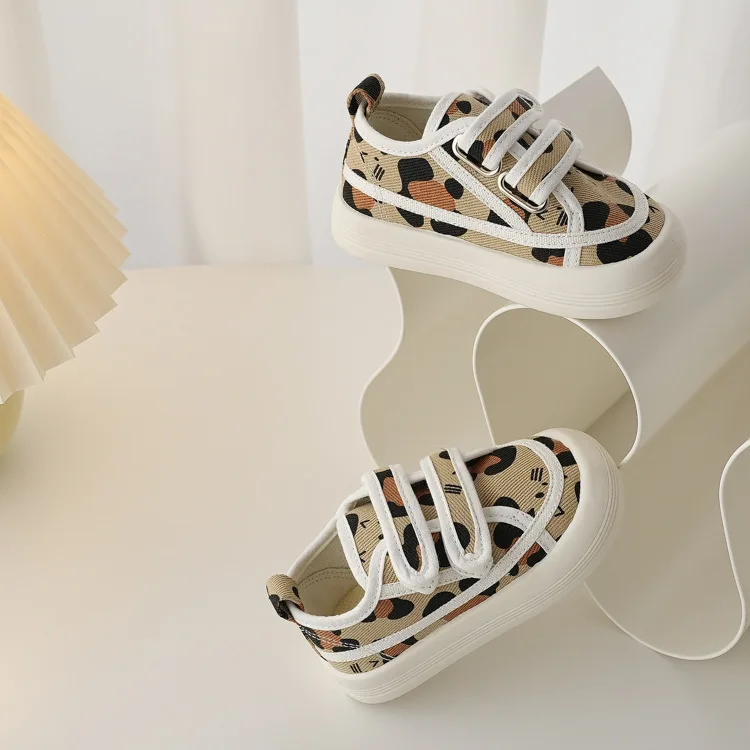 New Children Bread Shoes Kids Board Shoes Leopard Print Boys Sneakers Hook Loop Girls Canvas Casual Shoes Chaussure Enfant Fille