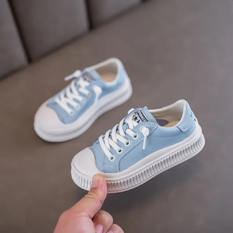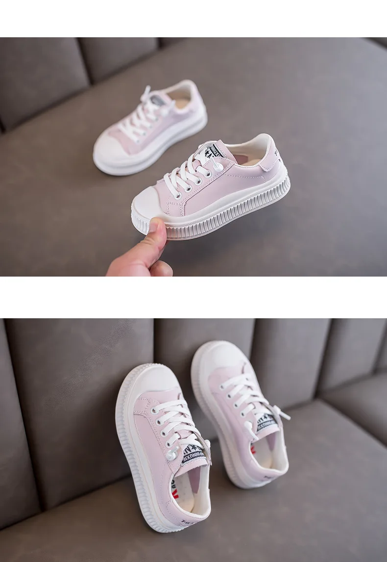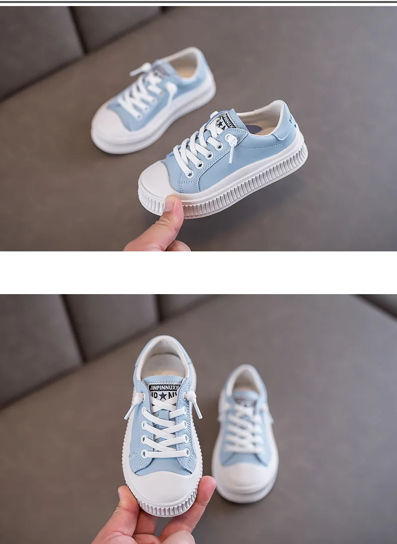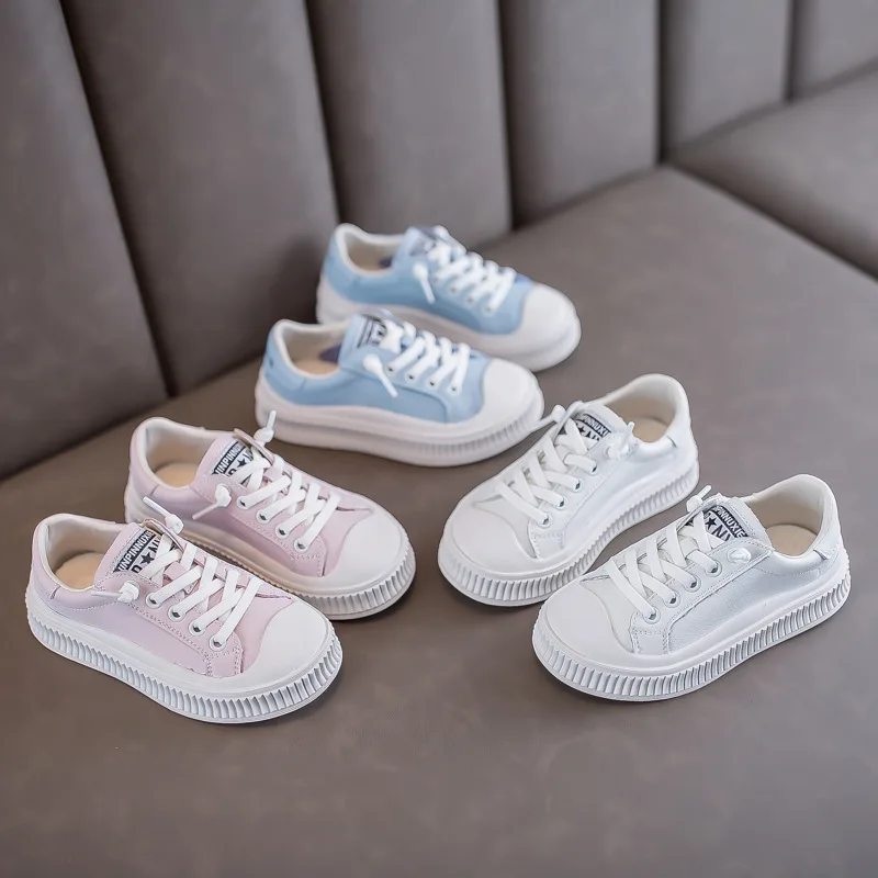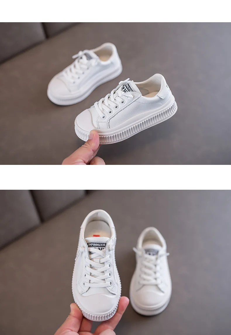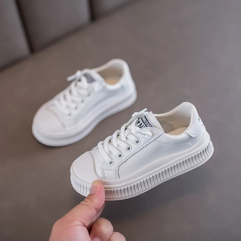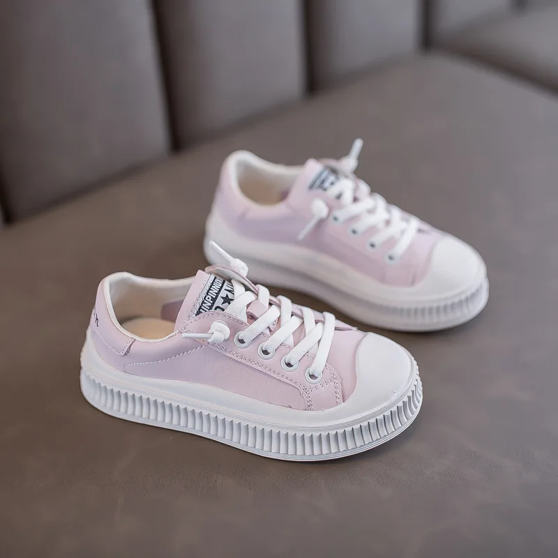 New Children Casual Board Shoes Big Boys Girls School Shoes Soft Sole Single White Shoes Thick Bottom Kids Sneakers Solid Color