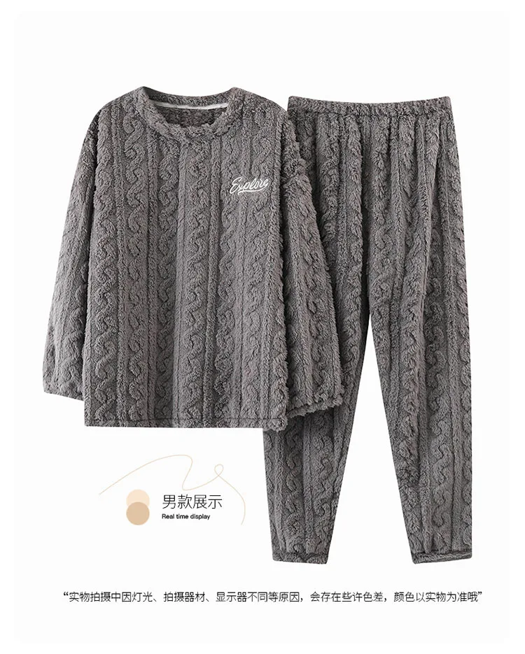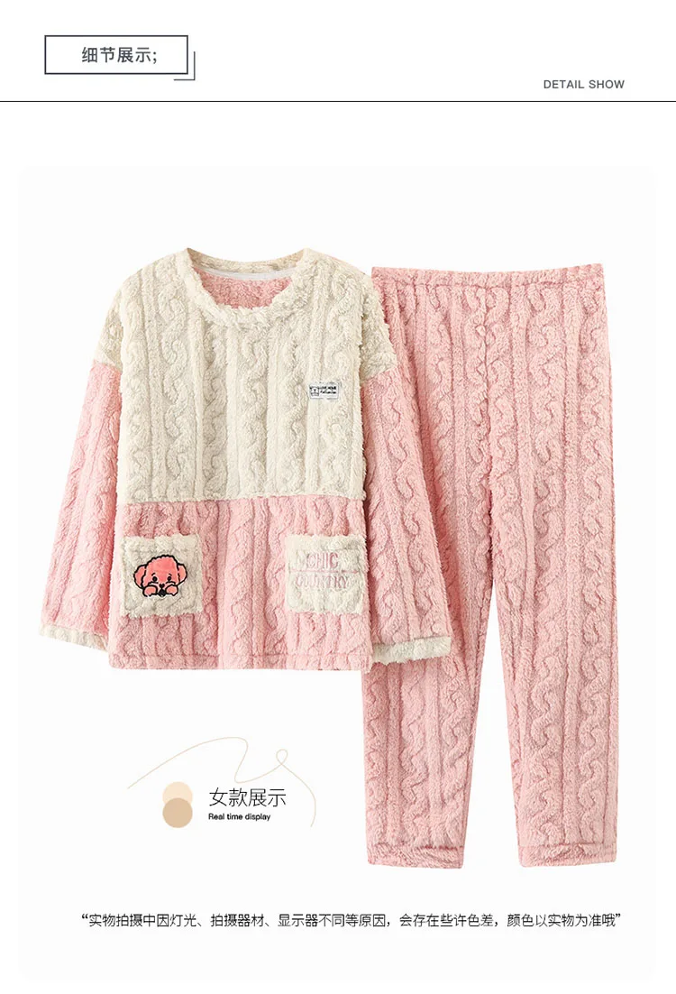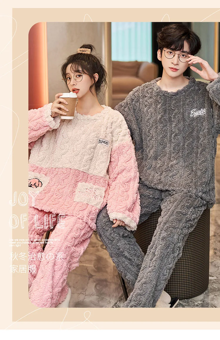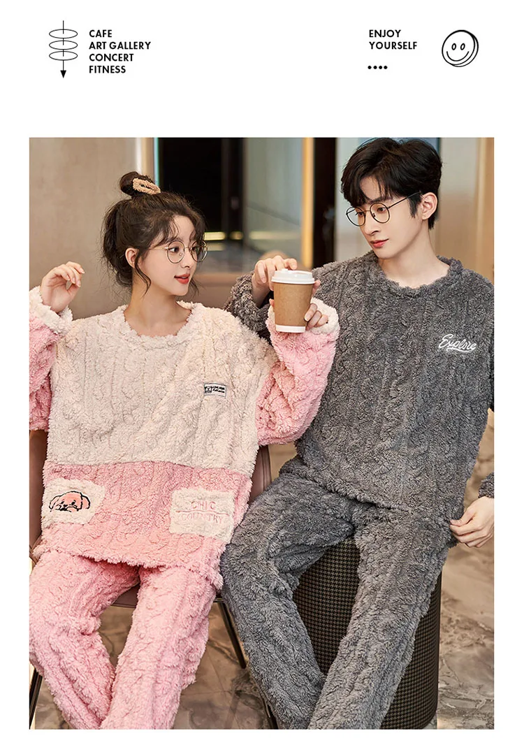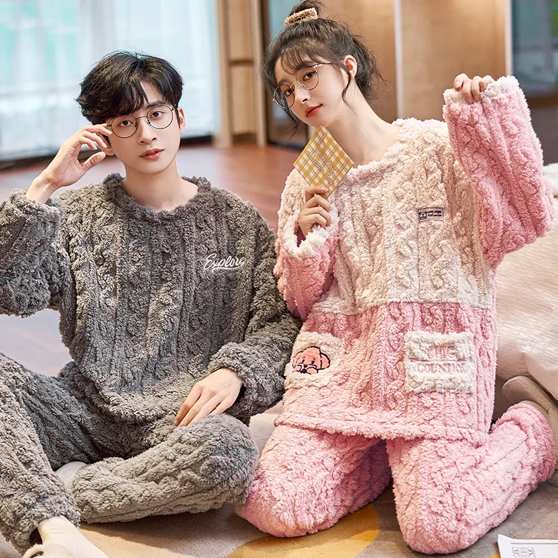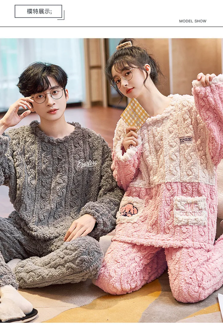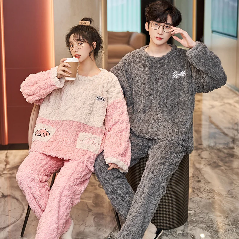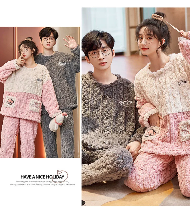 New Couples Pajamas Set Flannel Sleepwear Women Men Winter Warm Fleece Lovers Nightgown Cute Cartoon Pijamas Home Clothes