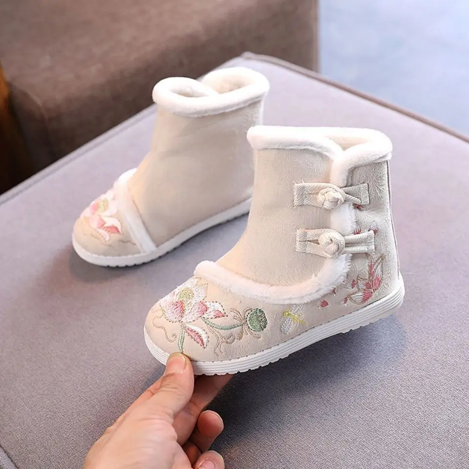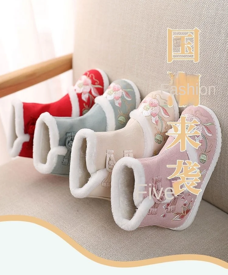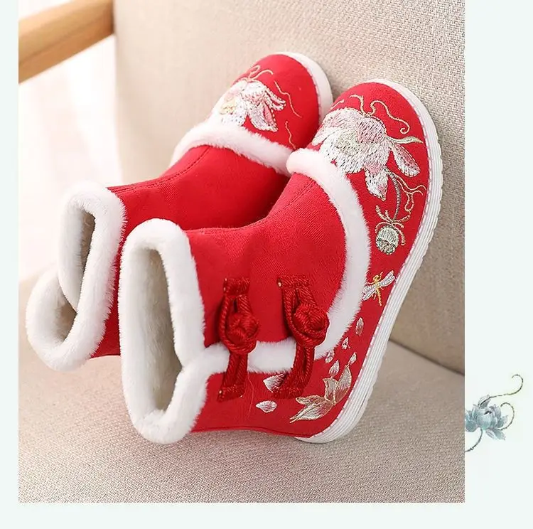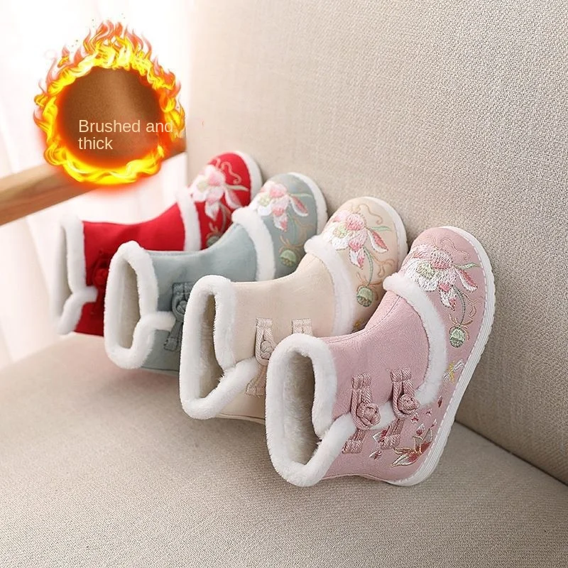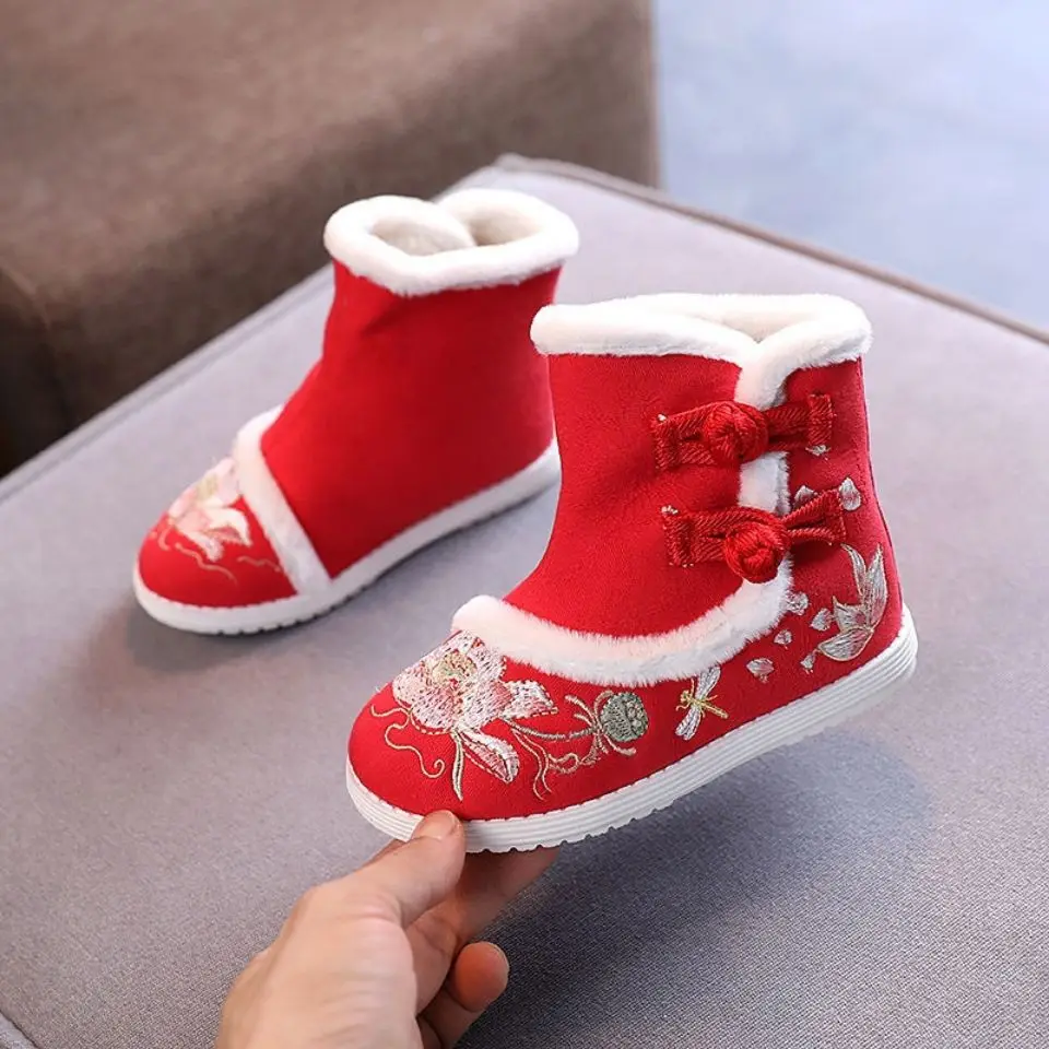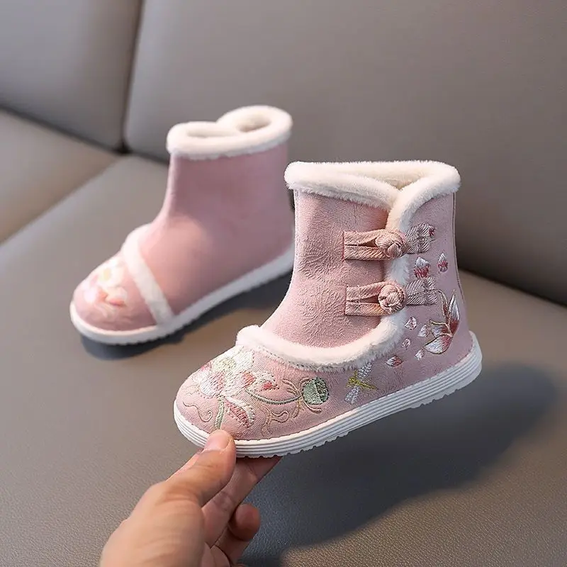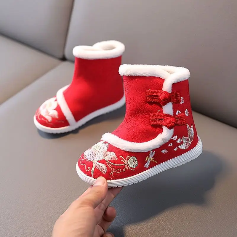 New embroidered children’s winter shoes warm plush Christmas shoes baby casual shoes sports shoes girls thick-soled snow boots