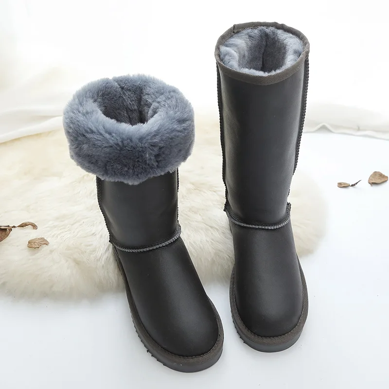 New Fashion Genuine sheepskin Leather Snow Boots for Women Long Boots 100% Natural Fur Winter Long Boots Warm Lady Boots Shoes