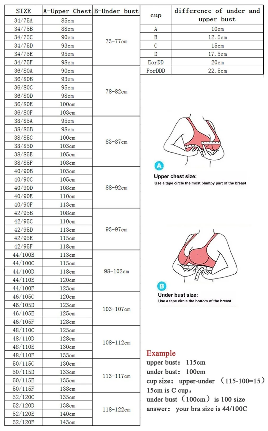 Band Size :34=75 36=80 38=85 40=90 42=95 44=100 46=105 48=110 50=115 52=120
