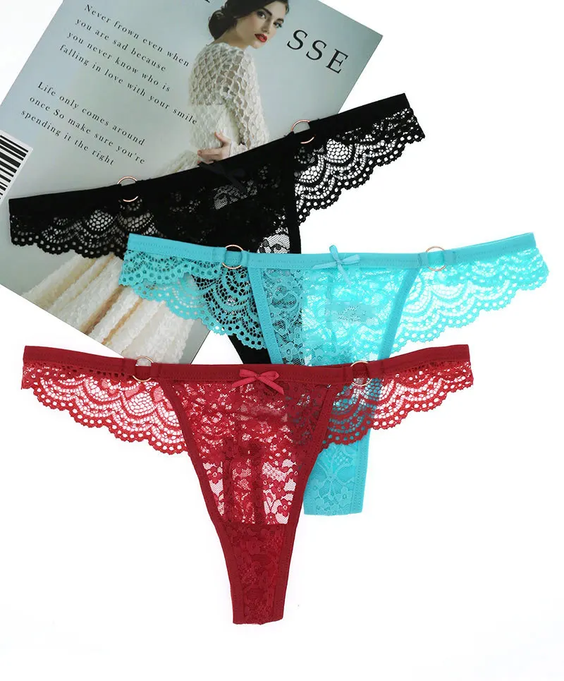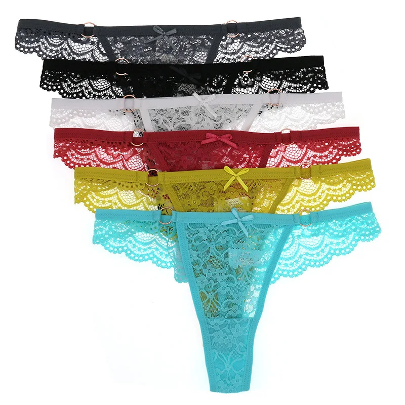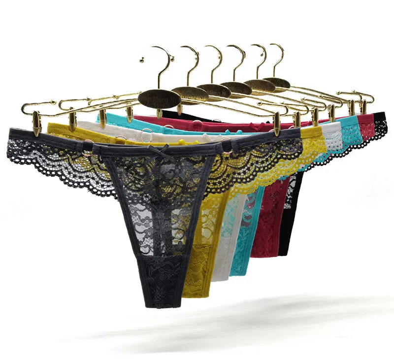 New Foreign trade women sexy fashion lace low waisted thong Girls’ Lace elasticity Hollowed out Breathable G-Strings 6 pcs/Lot