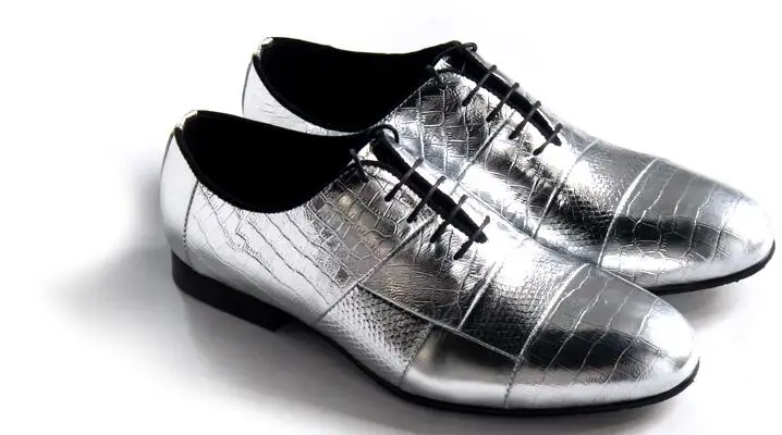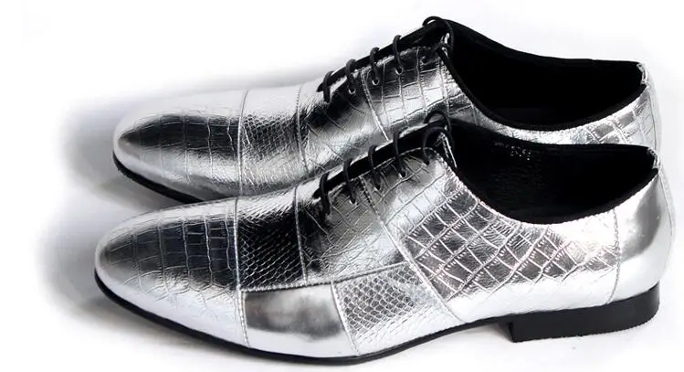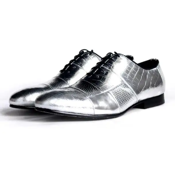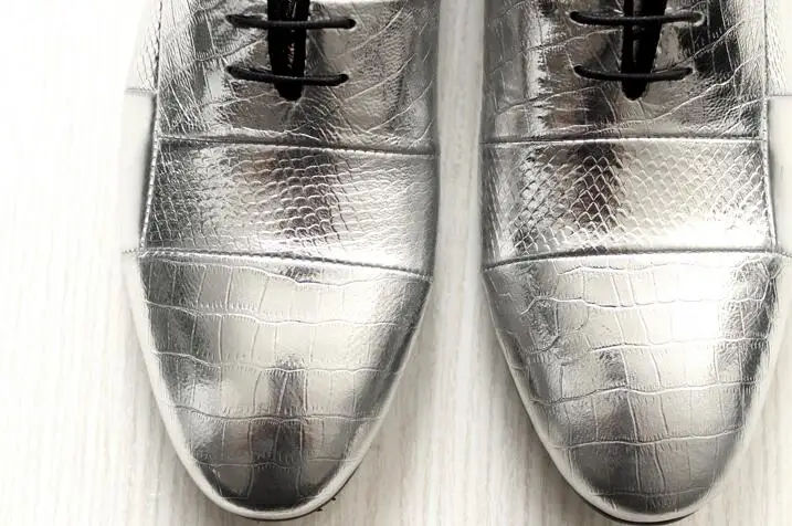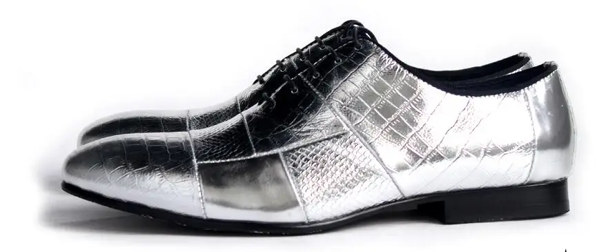 New genuine leather lace up casual shoes for men oxfords handmade fashion silver men shoes