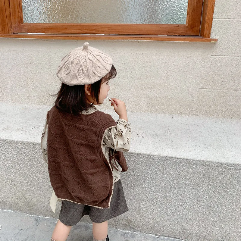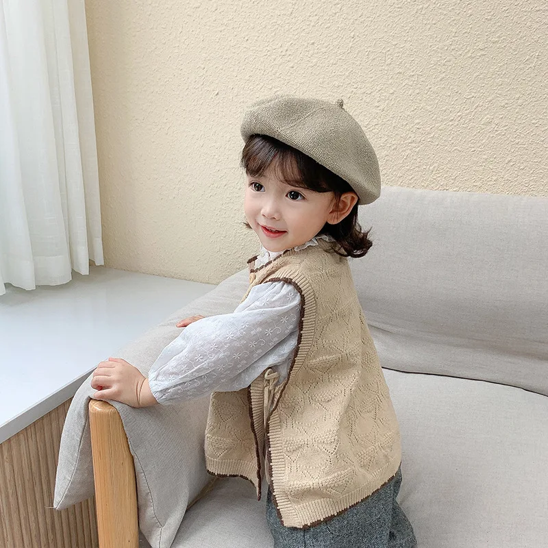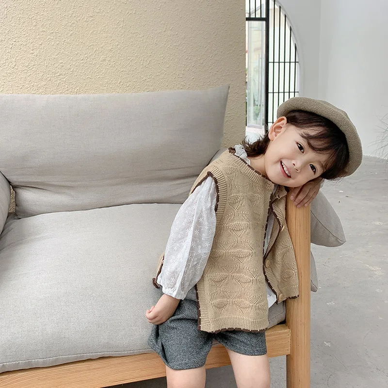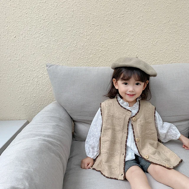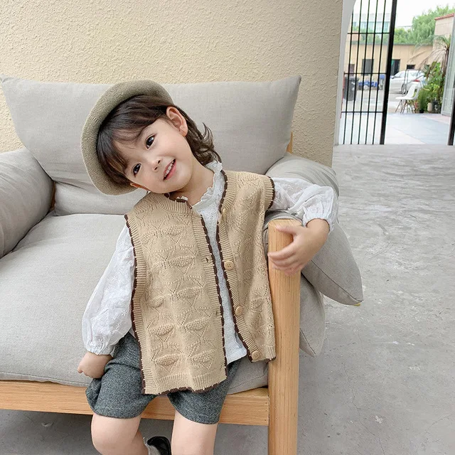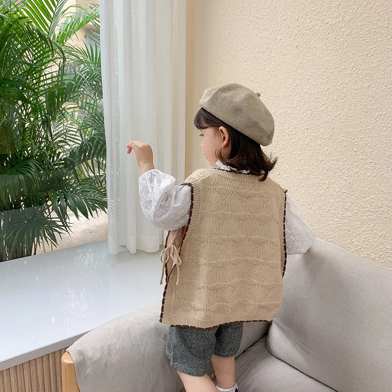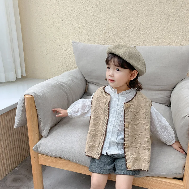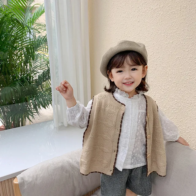 New Girls Clothes Contrast Color Knitted Cardigan Vest Spring And Autumn Toddler Baby Korean Waistcoat Vest