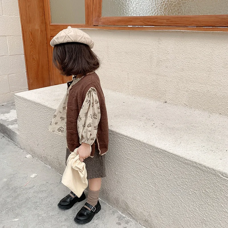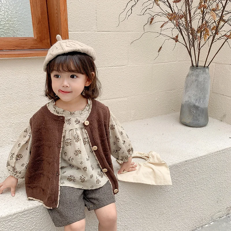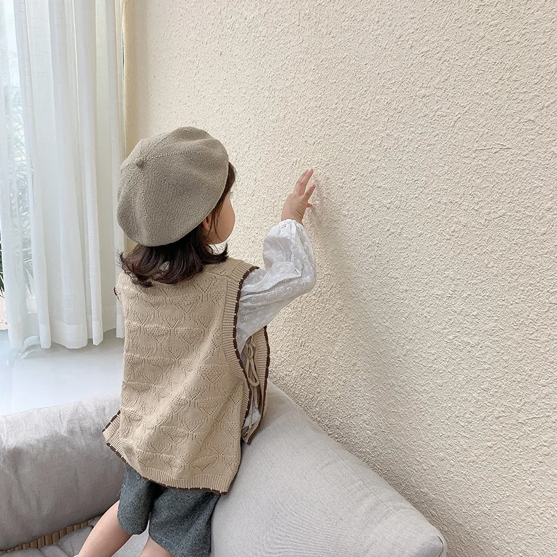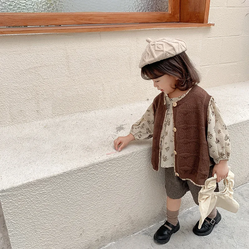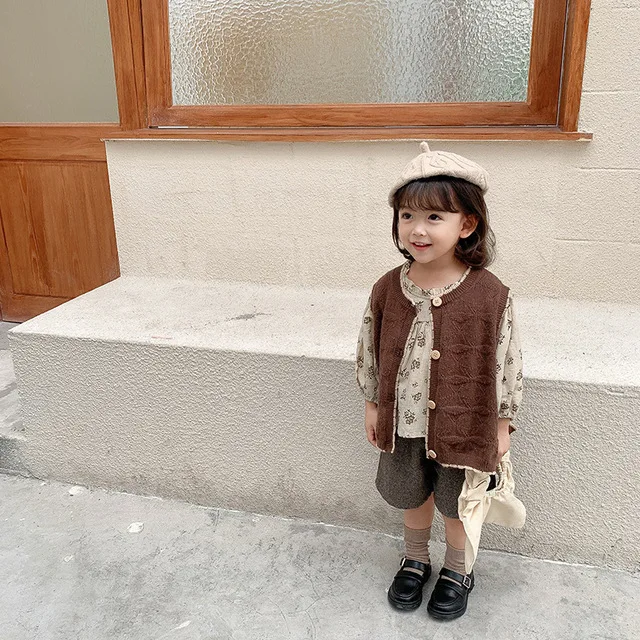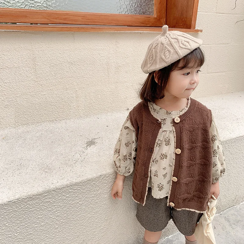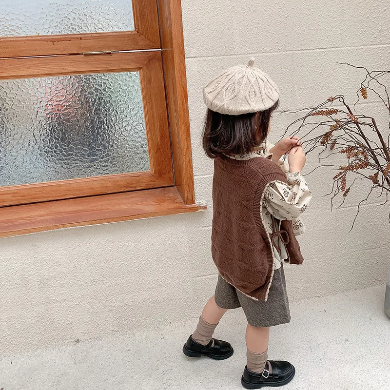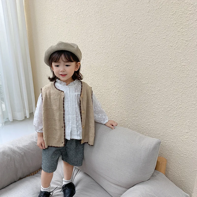 New Girls Clothes Contrast Color Knitted Cardigan Vest Spring And Autumn Toddler Baby Korean Waistcoat Vest