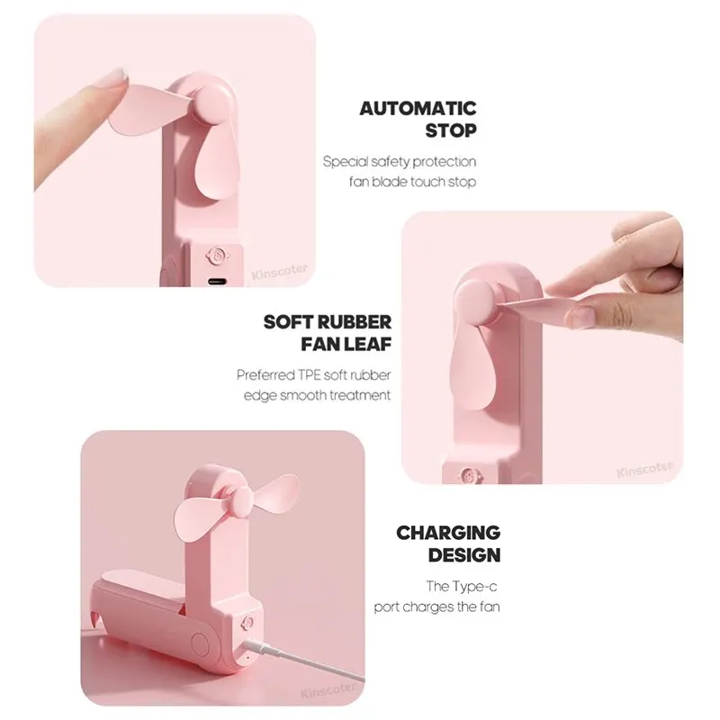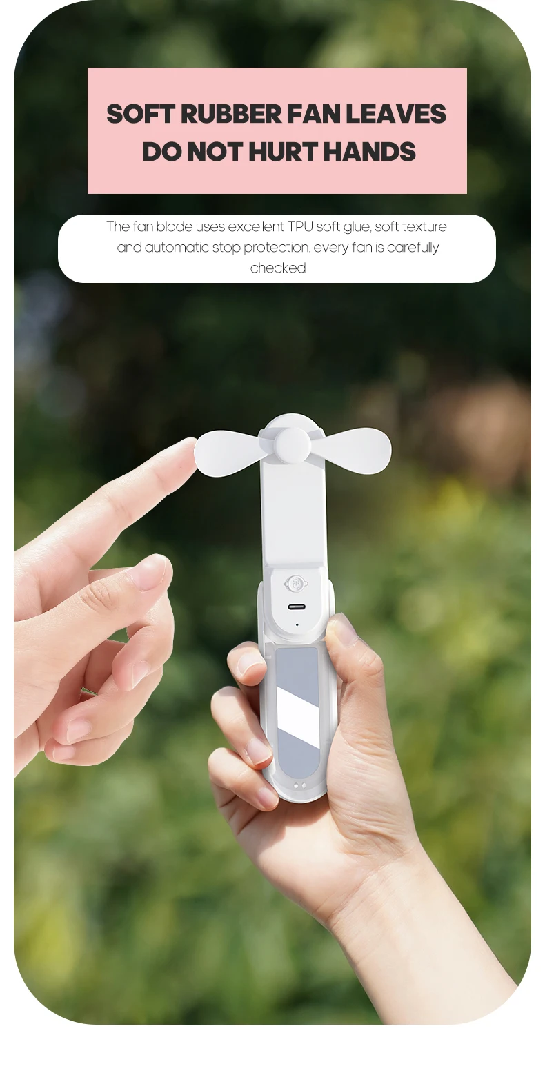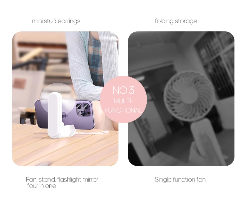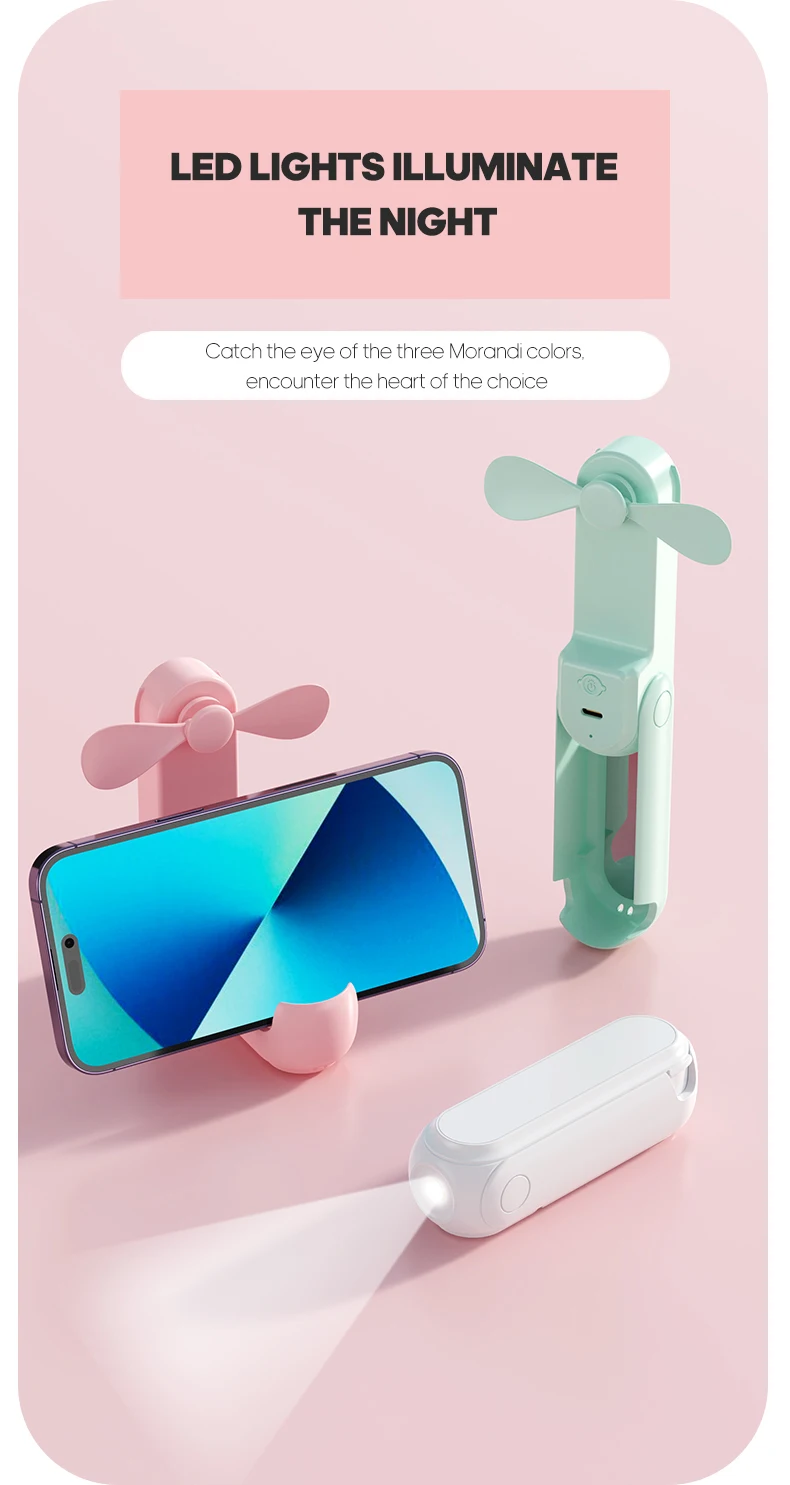 New Handheld Small Fan Portable Creative Mini Three Speed Adjustable Solid Color Charging Folded Fan LED Lighting Phone Holder
