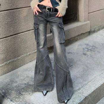 New High Waist Harajuku Loose Embroidered Women Jeans with Rock Punk Style Y2K Micro La Retro Wide Leg Pants