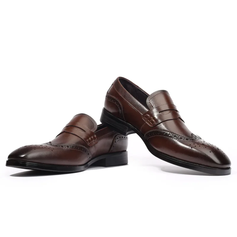 New Italian handmade shoes men’s business formal leather shoes carved Lefu shoes pennies shoes Square shoes