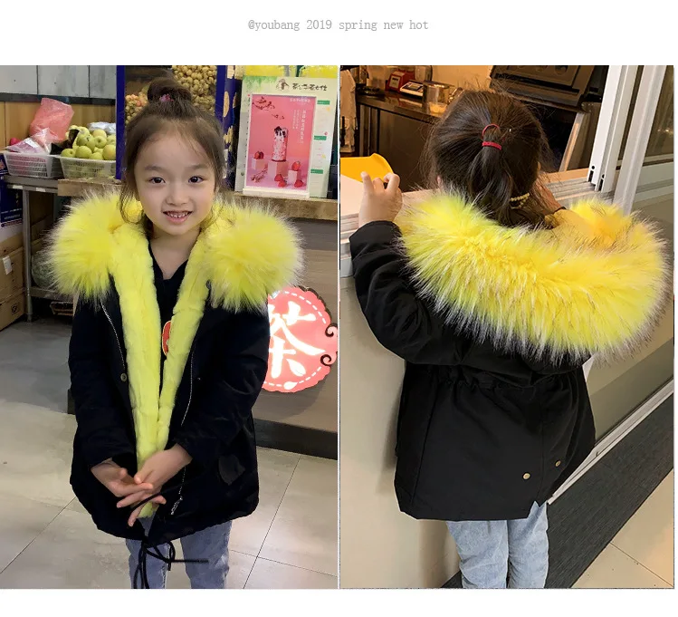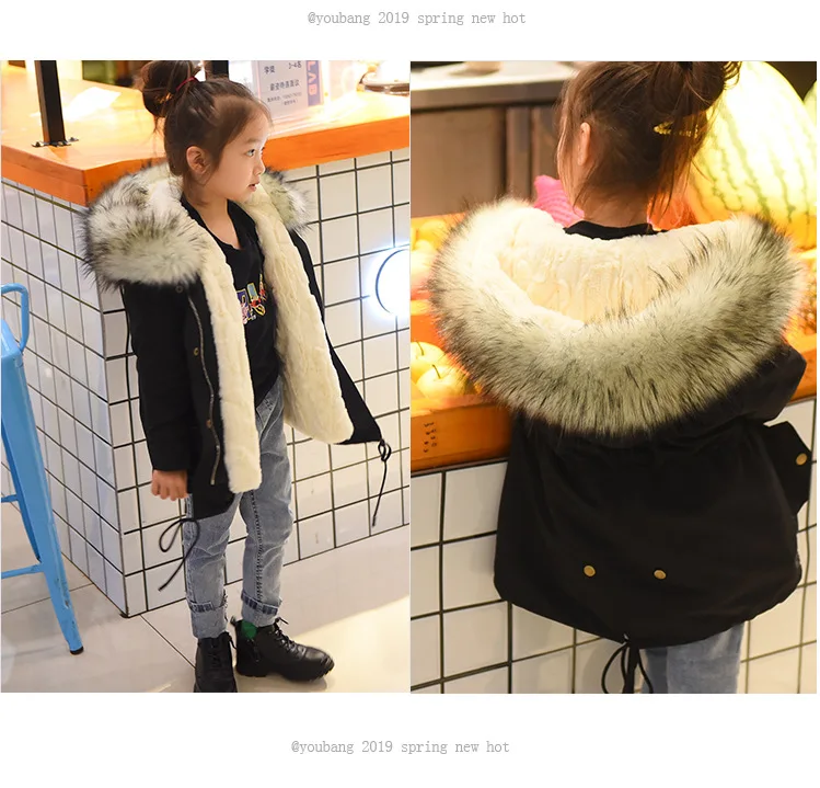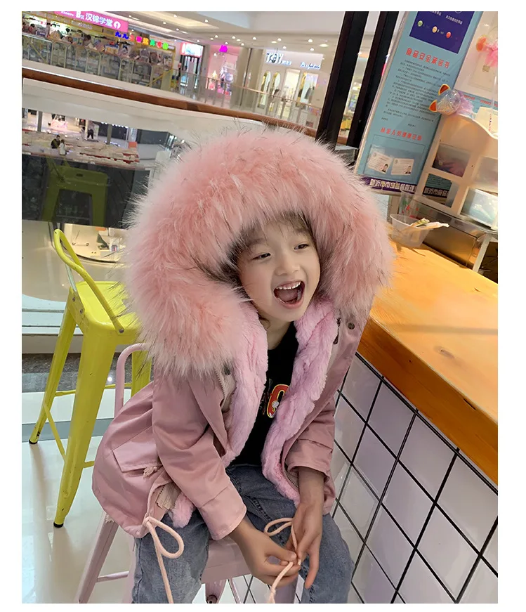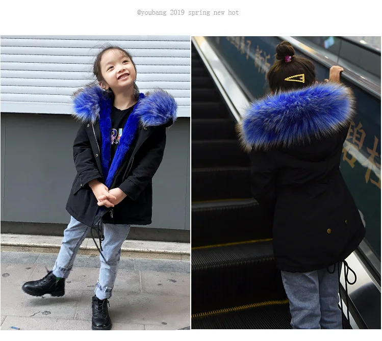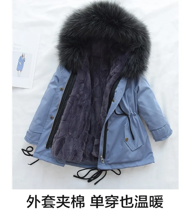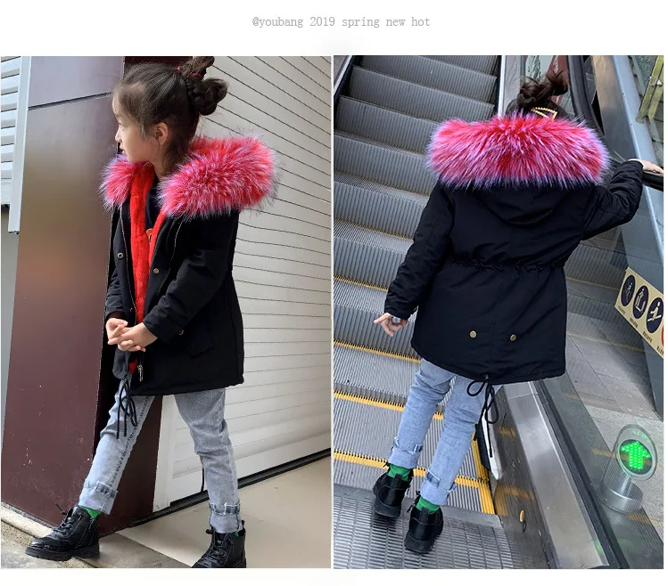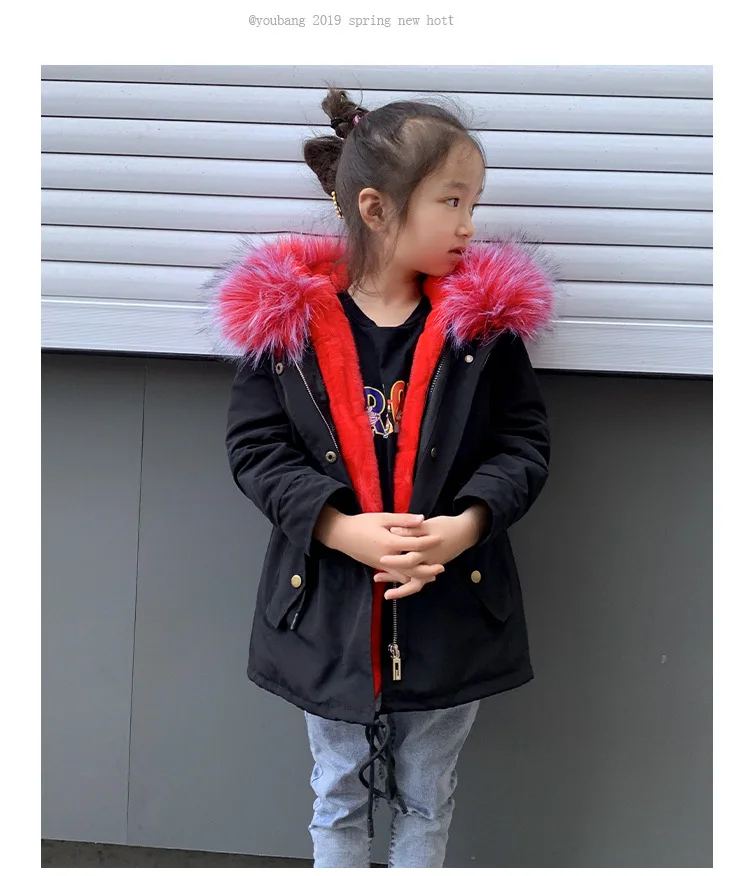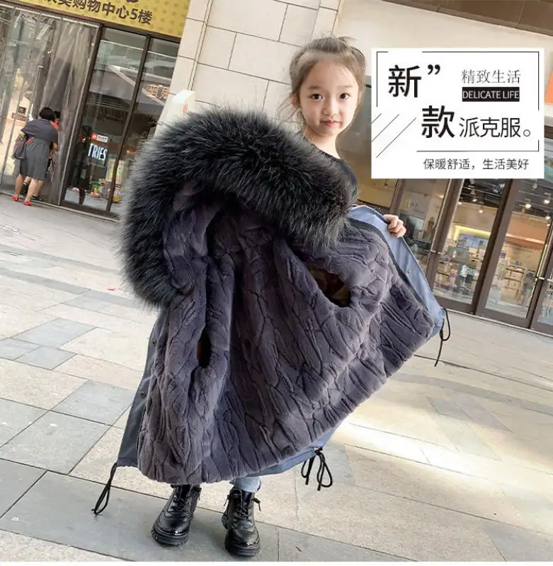 New Kids Fur Coat Winter Coat New Sale Fur Collar Parka 3-15T Children Casual Warm Outerwear Baby Girl Winter Hooded Jacket Coat