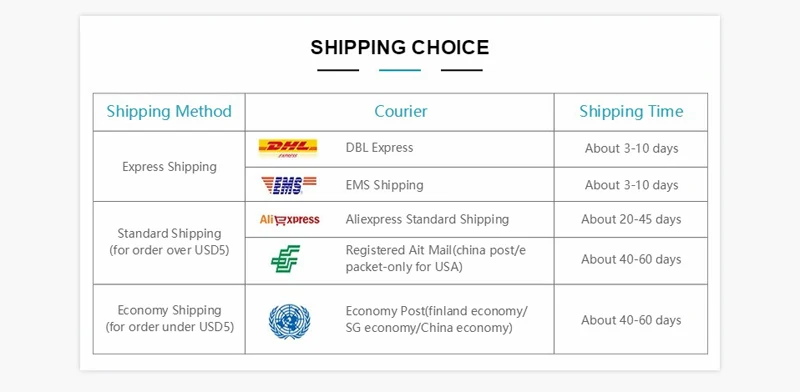 Packages from our warehouse in China will be shipped by ePacket or EMS depending on the weight and size of the product. Packages shipped from our US warehouse are shipped through USPS.