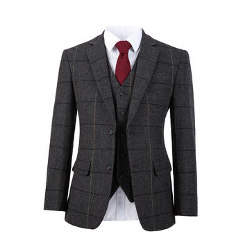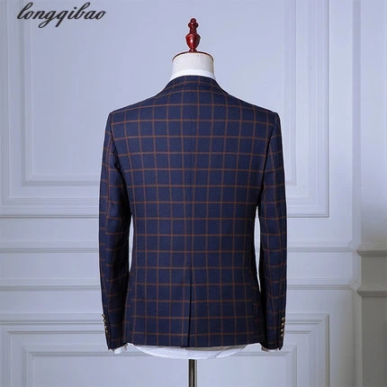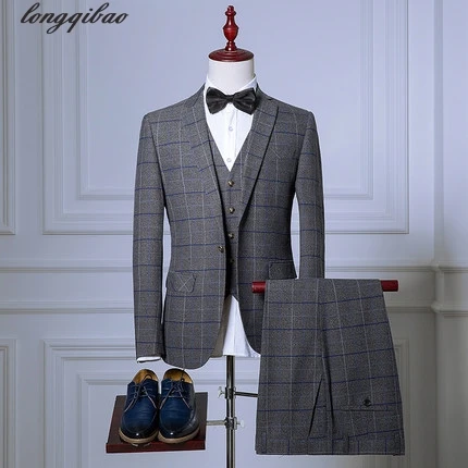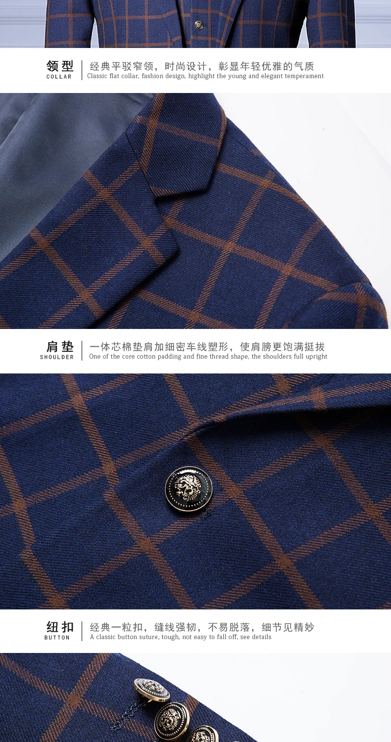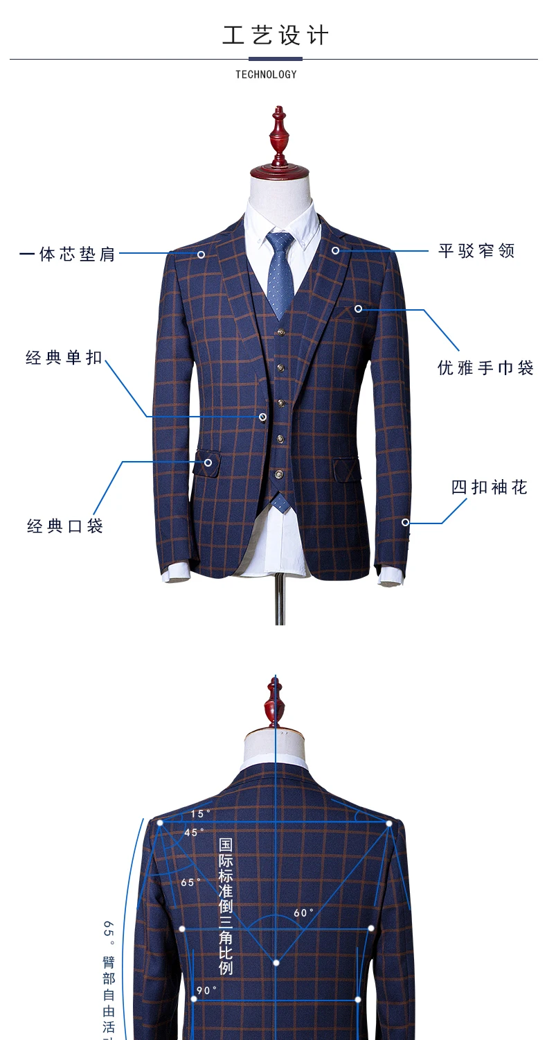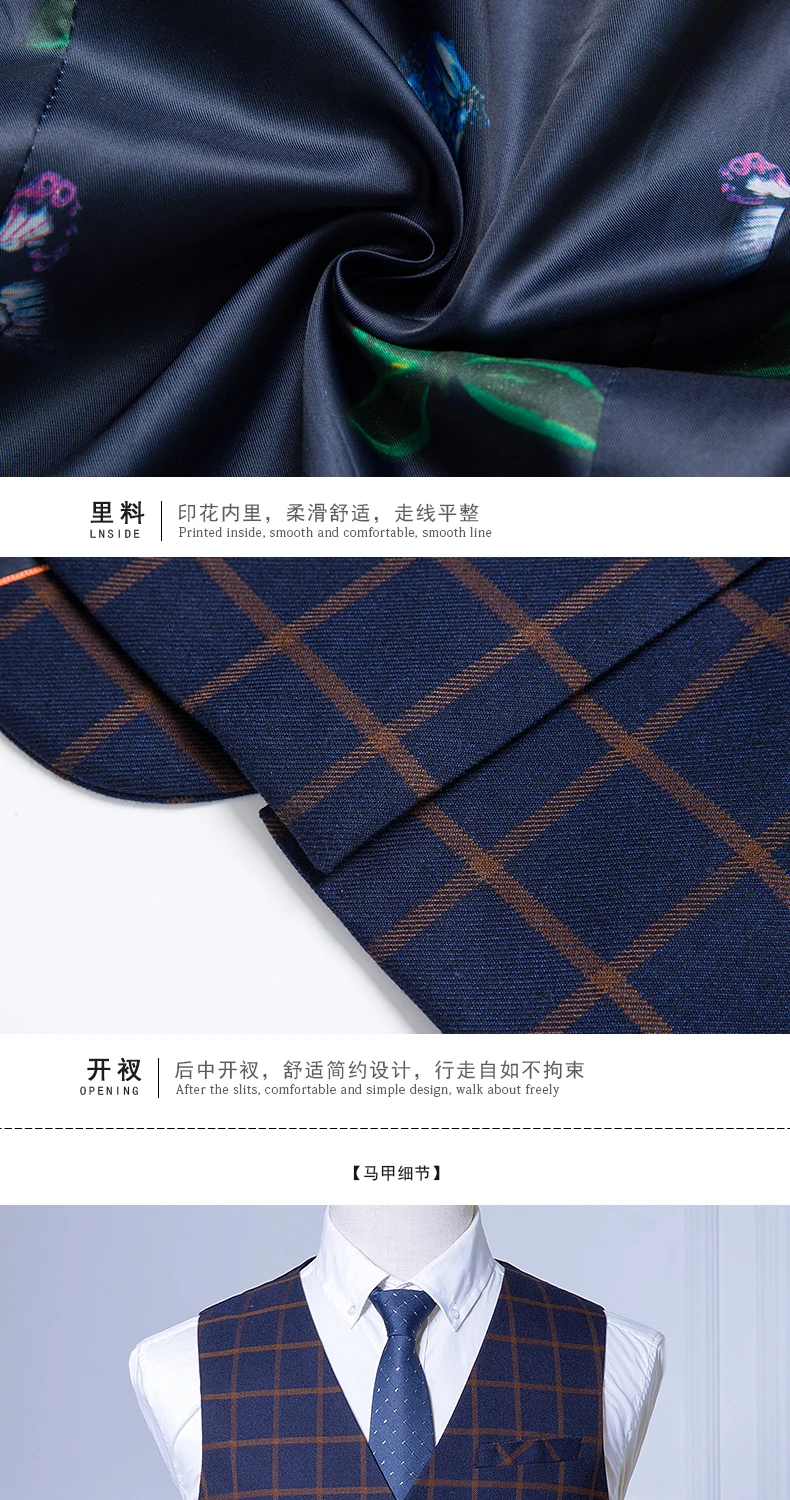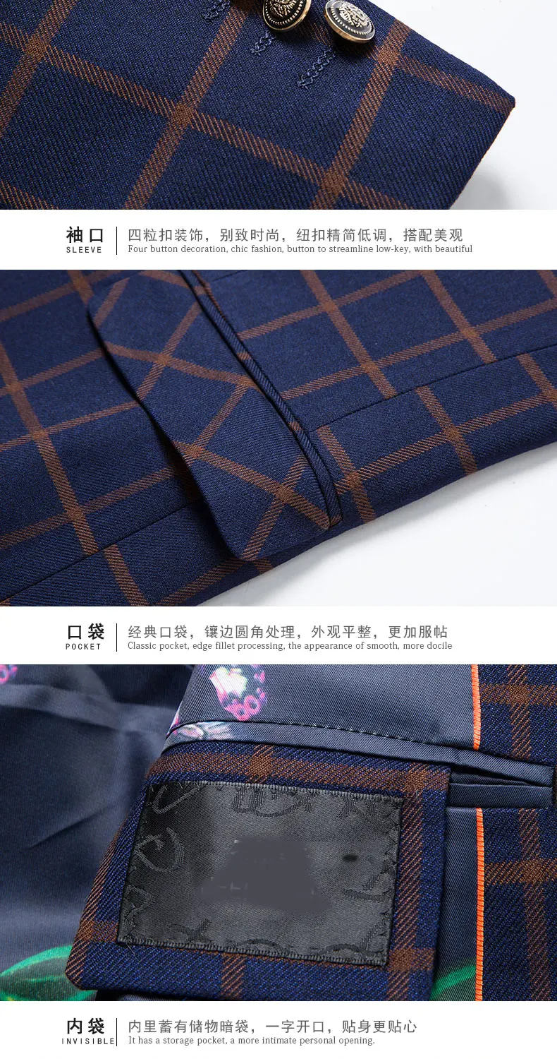 new men’s Business Formal Wear three-piece suit Korean Slim Men’s plaid leisure suits wedding (jackets+vest+pants)