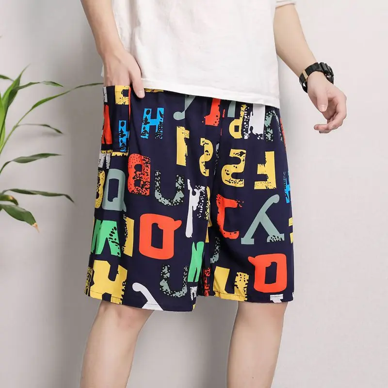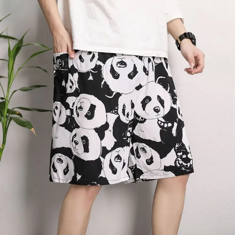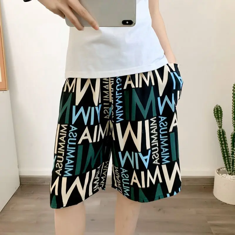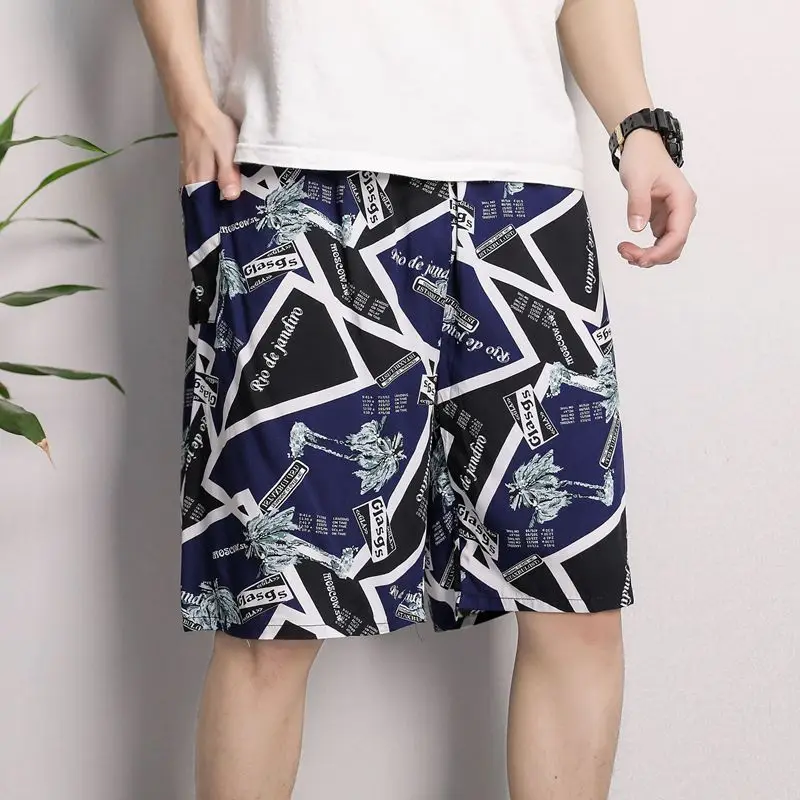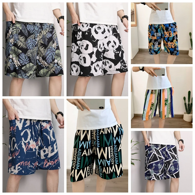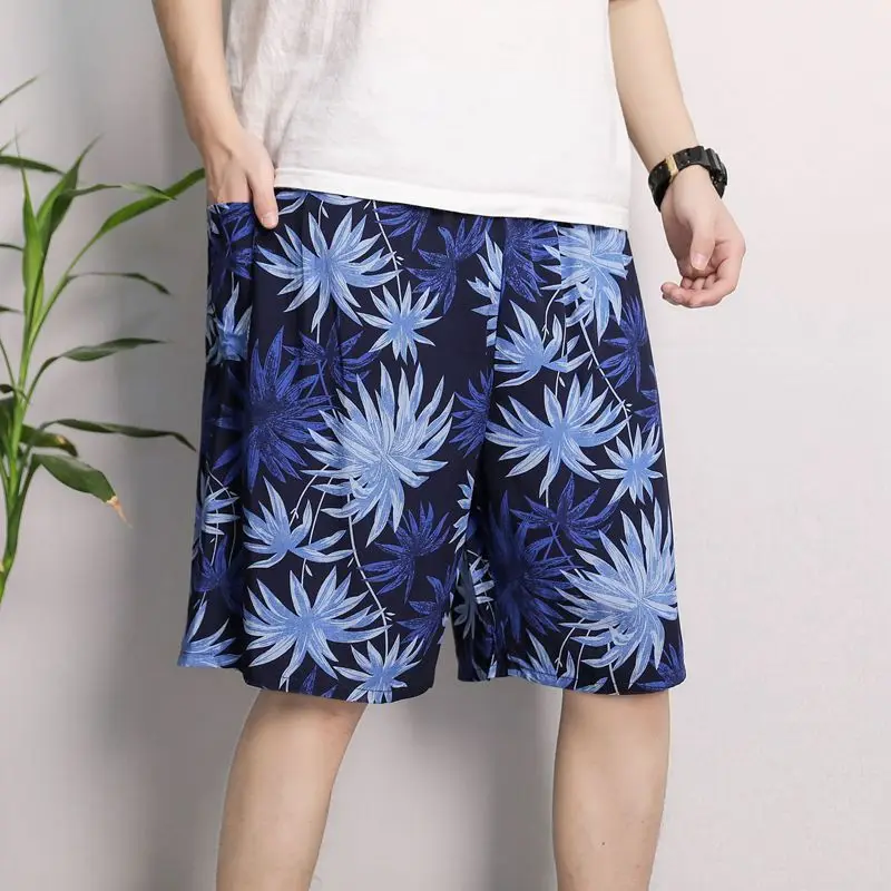 New Men’s Pajamas Spring And Summer Thin Section Loose Sleepwear Fashion Print Geometry Shorts Cotton Silk Home Wear Beach Pants