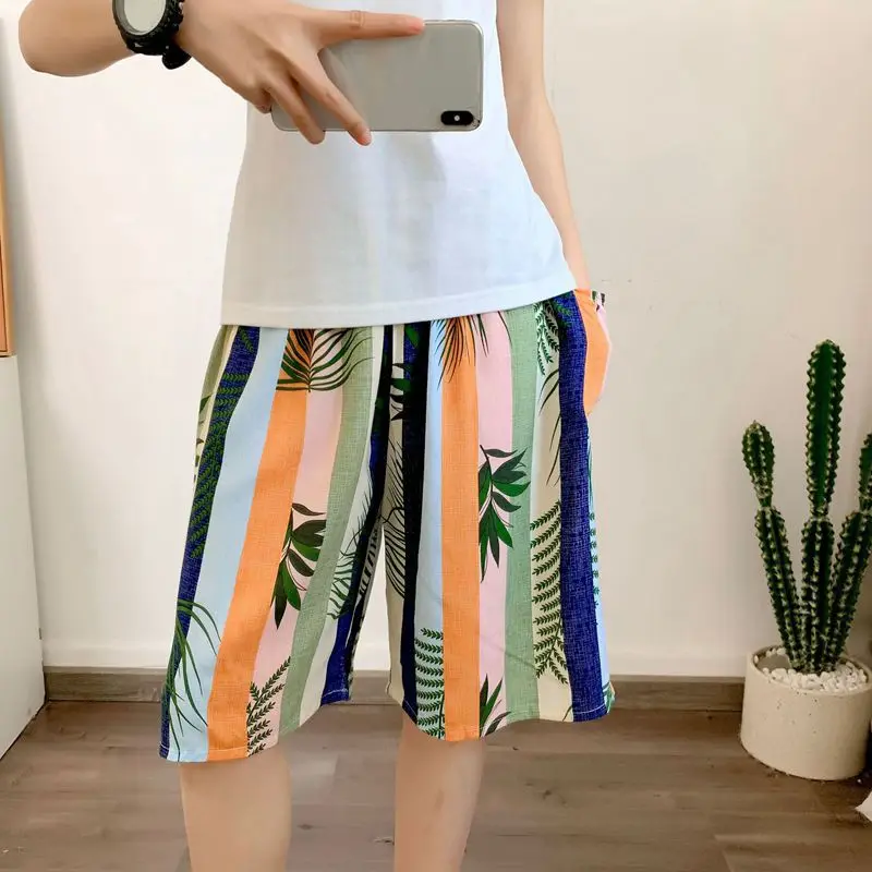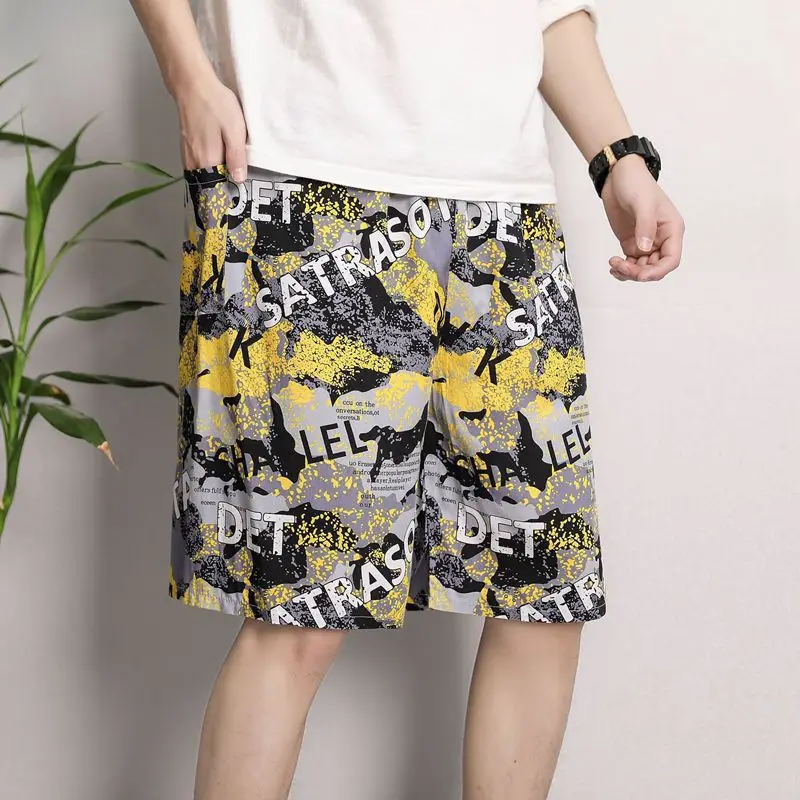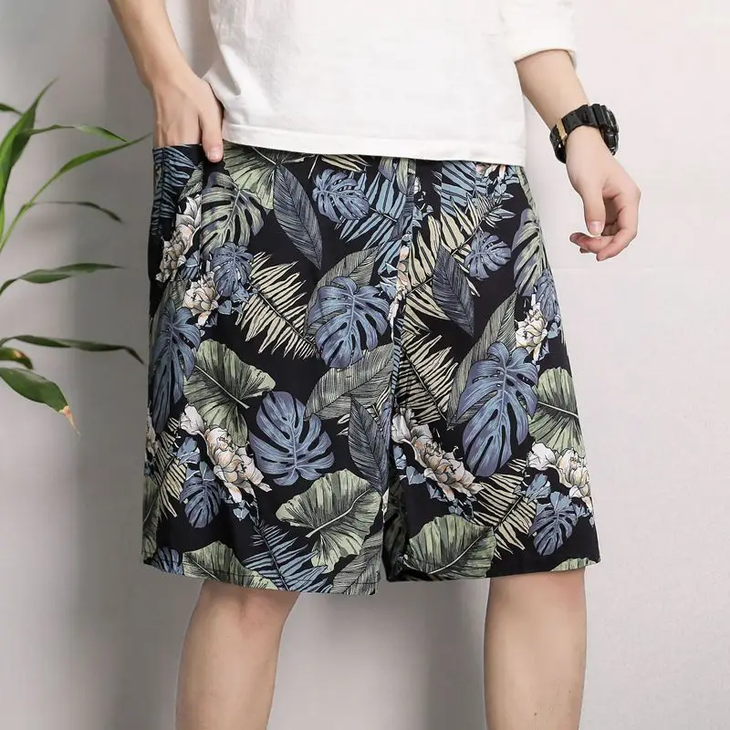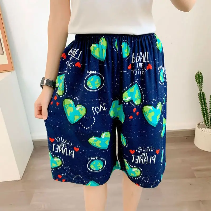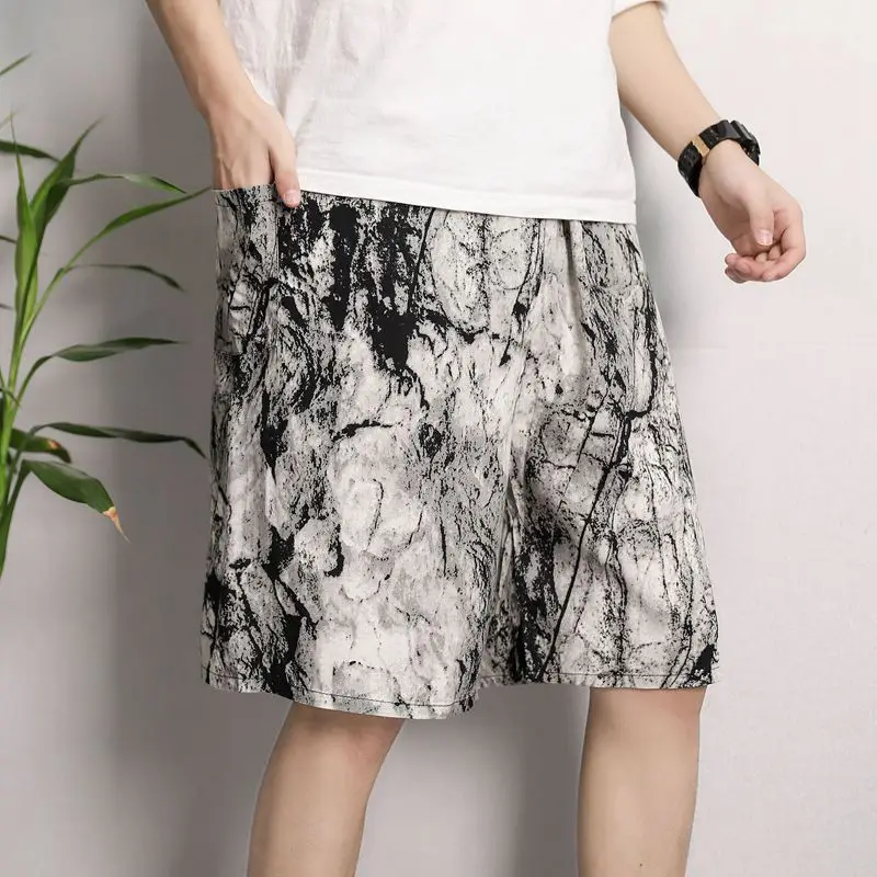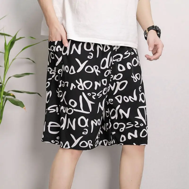 New Men’s Pajamas Spring And Summer Thin Section Loose Sleepwear Fashion Print Geometry Shorts Cotton Silk Home Wear Beach Pants