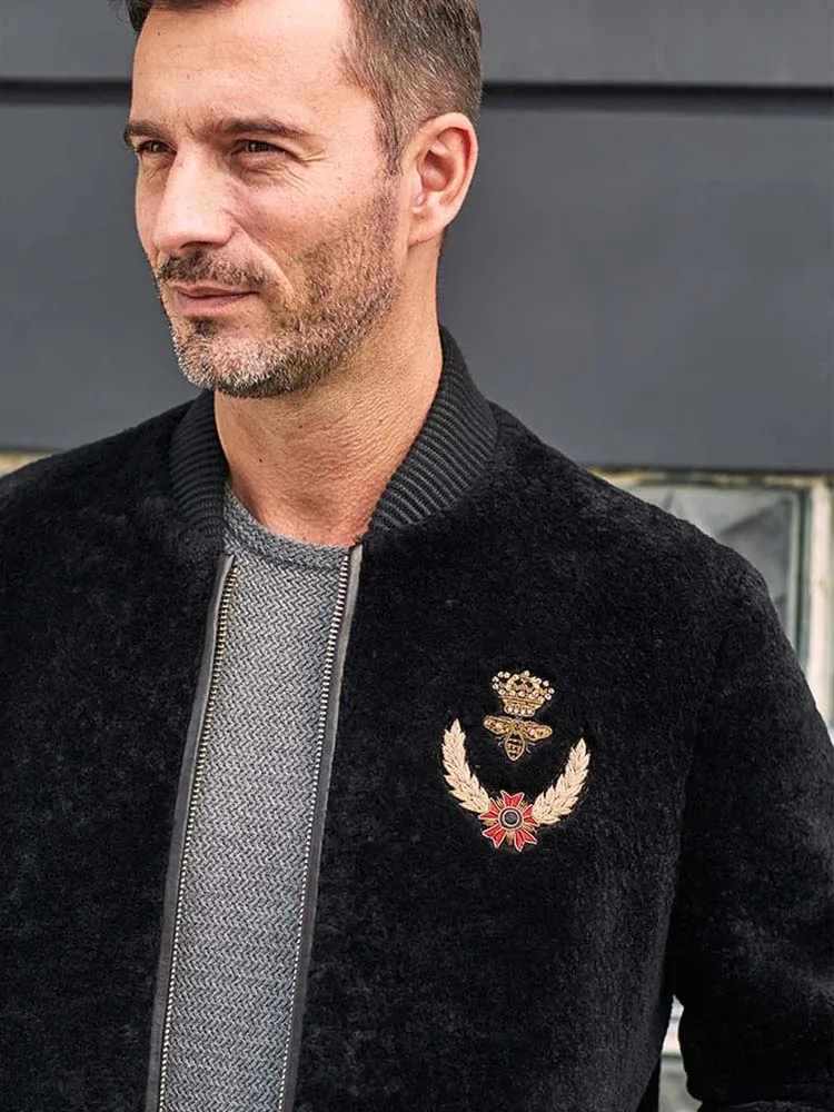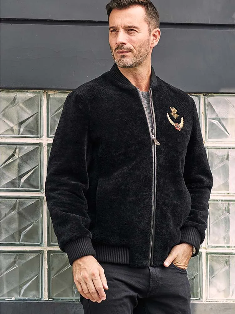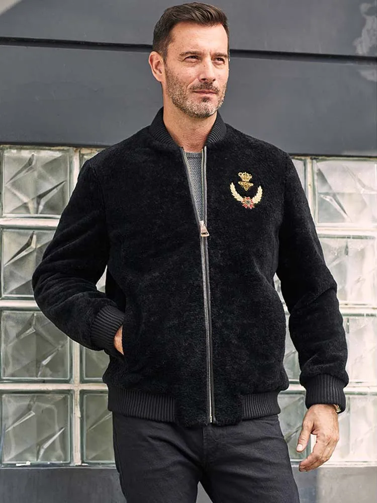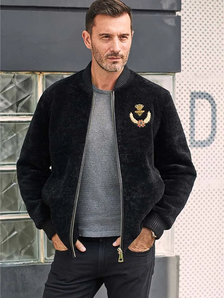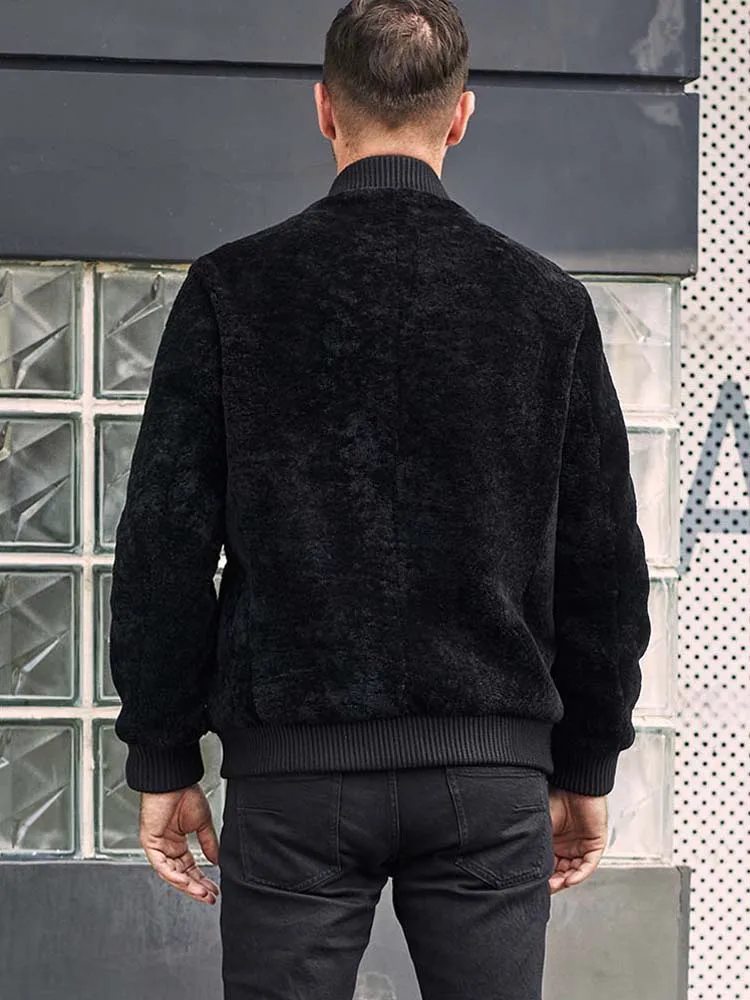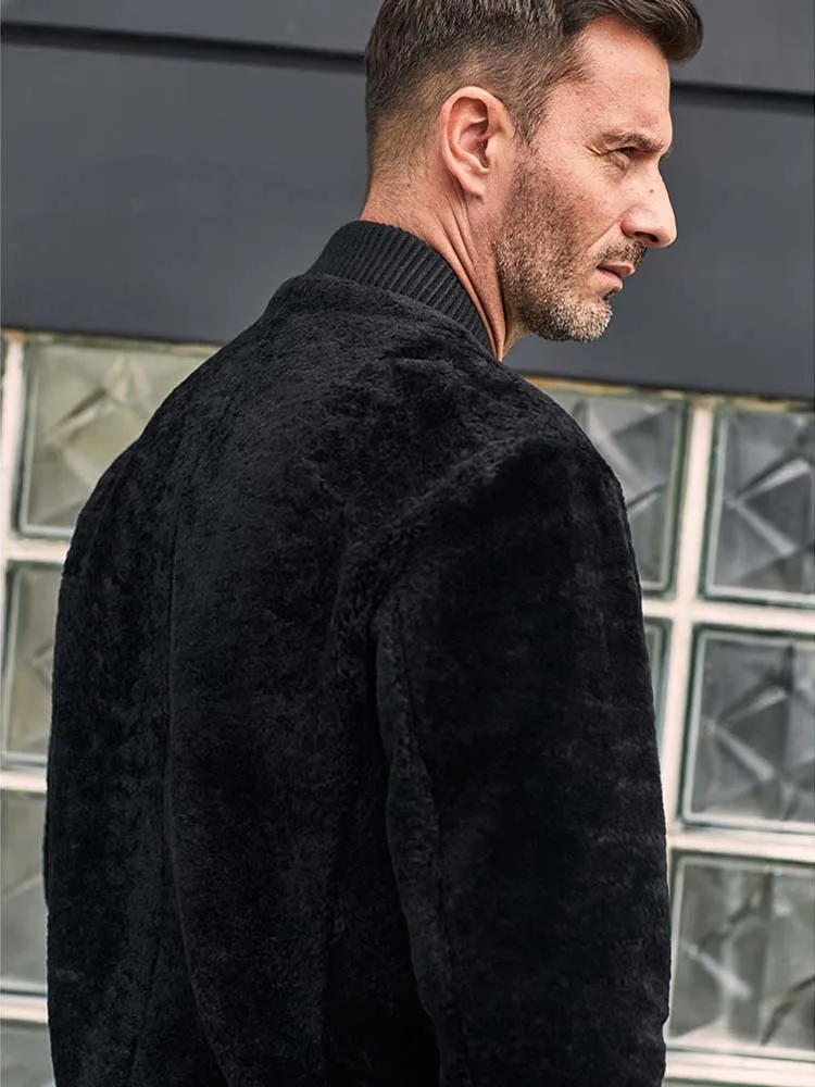 New Mens Shearling Coat Black Leather Jacket Short Wool Outwear Warm Fur Overcoat Baseball Uniform