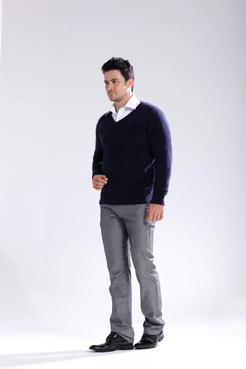 new men’s solid color knitted mink cashmere sweater men knit v-neck and o-neck pullovers