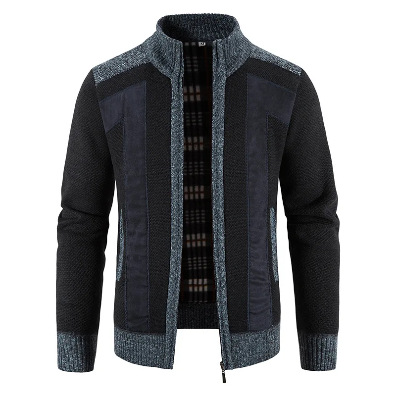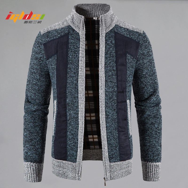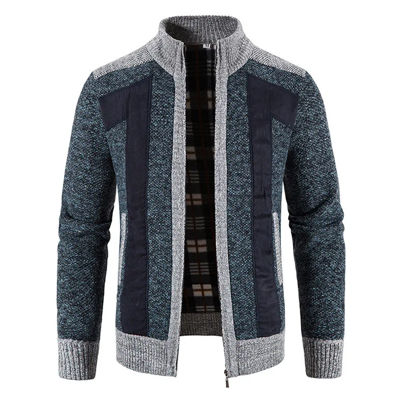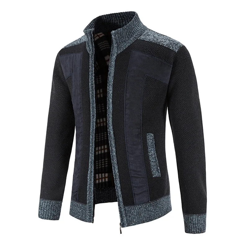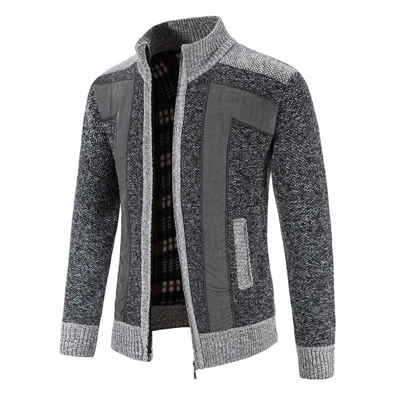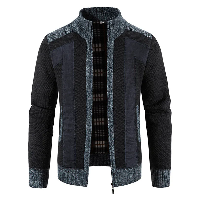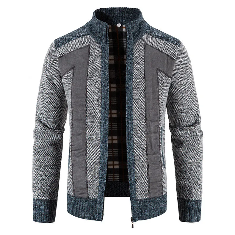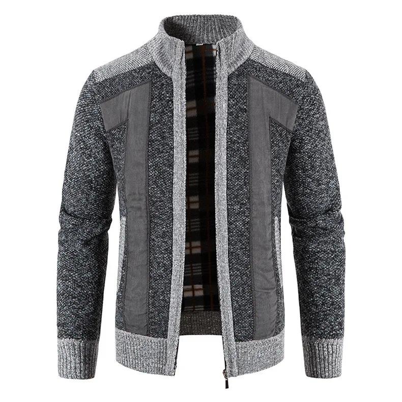 New Men’s Winter Thick Hooded Sweater Fleece Slim Cardigan Male Autumn Knitted Sweatercoat Patchwork Jacket Plus Size 4XL