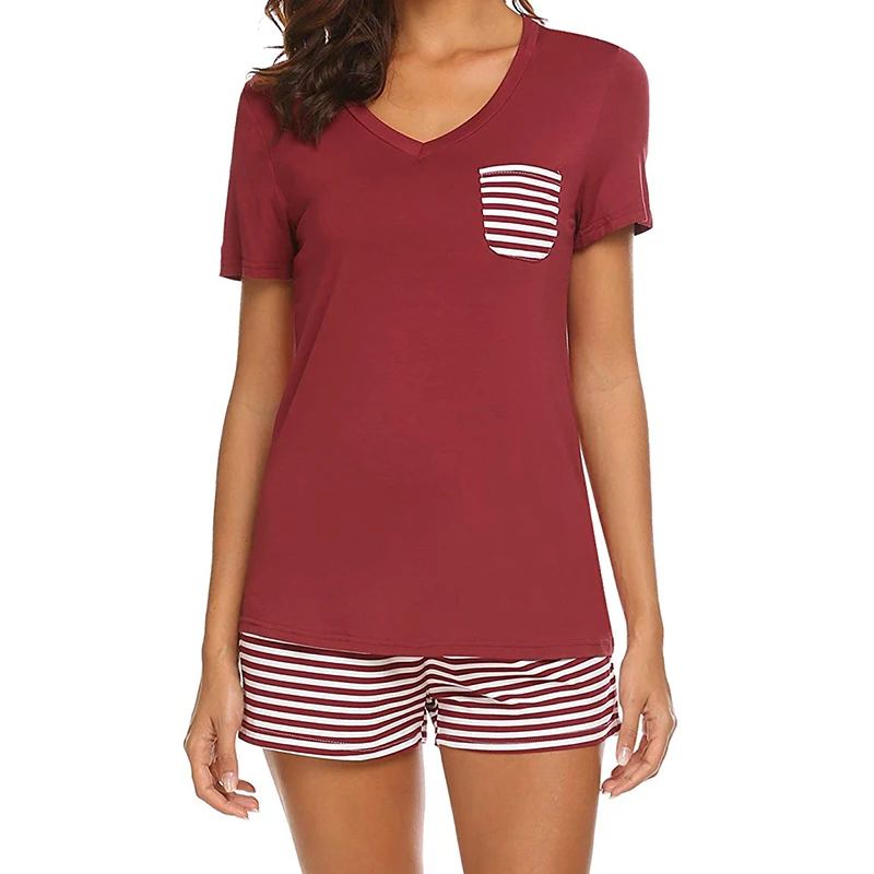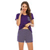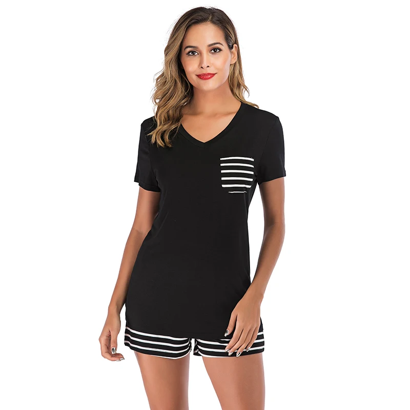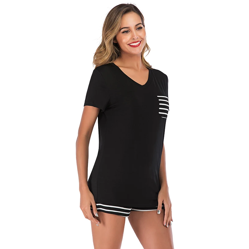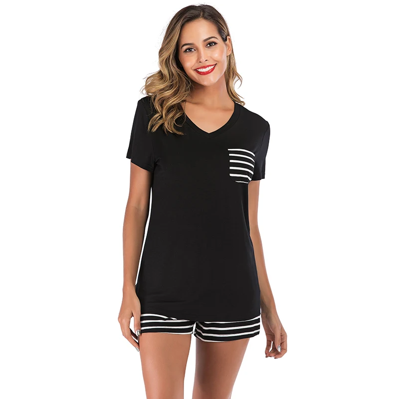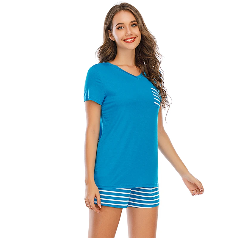 New Modal Lady Short Sleeve Pajamas Set with Bra Pad Bra Two Piece Short sleeve Shorts Striped Loose Large Size Home Wear Set