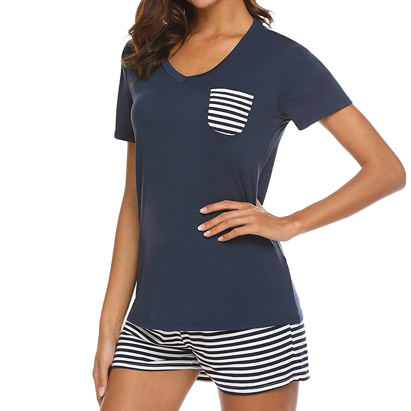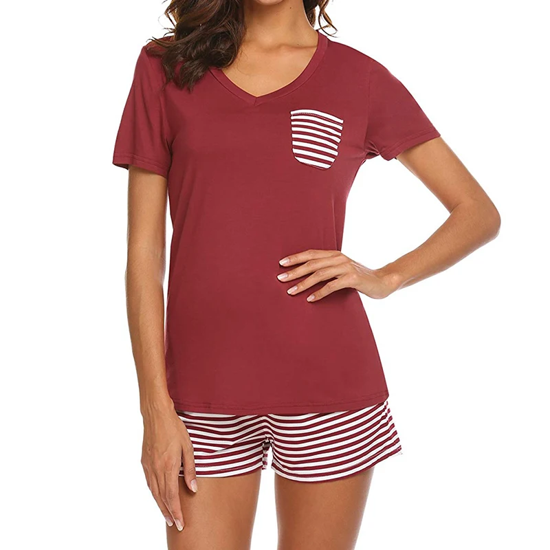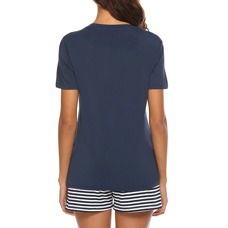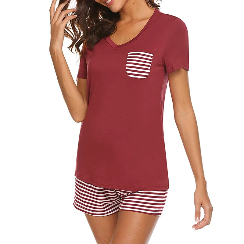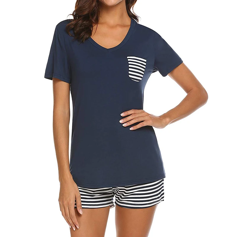 New Modal Lady Short Sleeve Pajamas Set with Bra Pad Bra Two Piece Short sleeve Shorts Striped Loose Large Size Home Wear Set