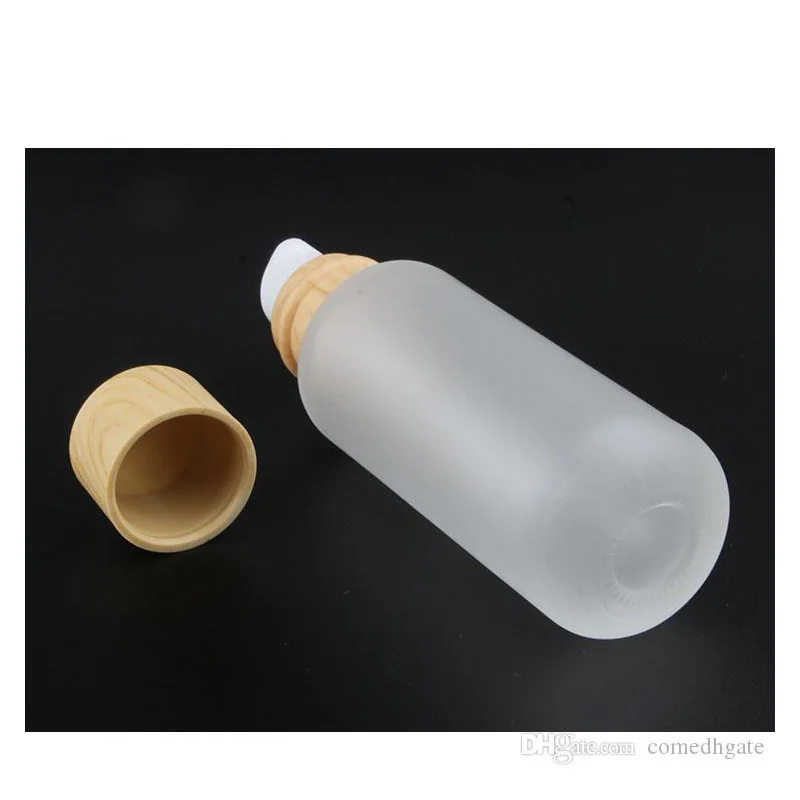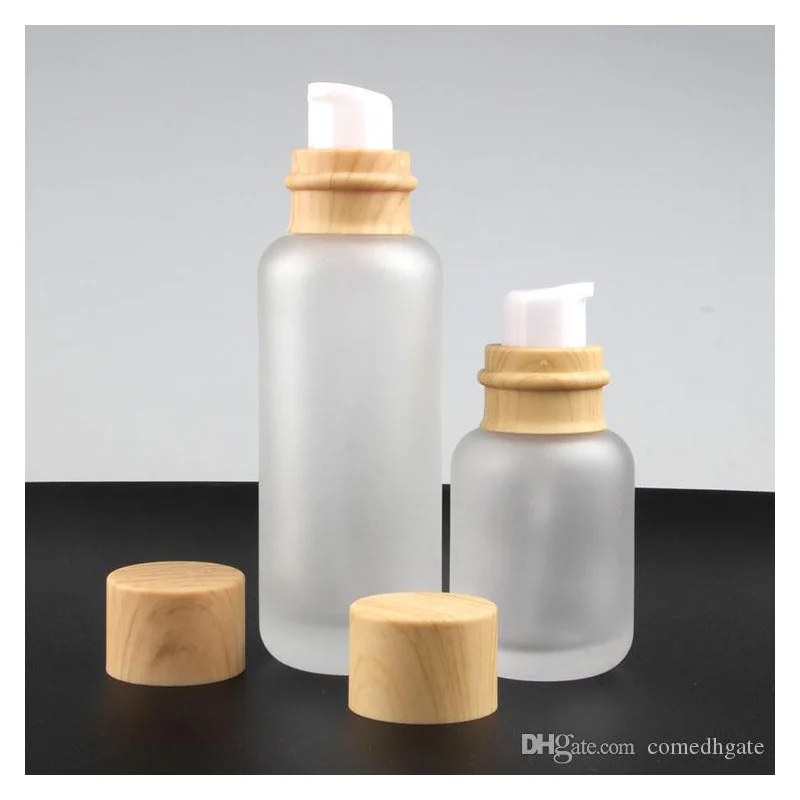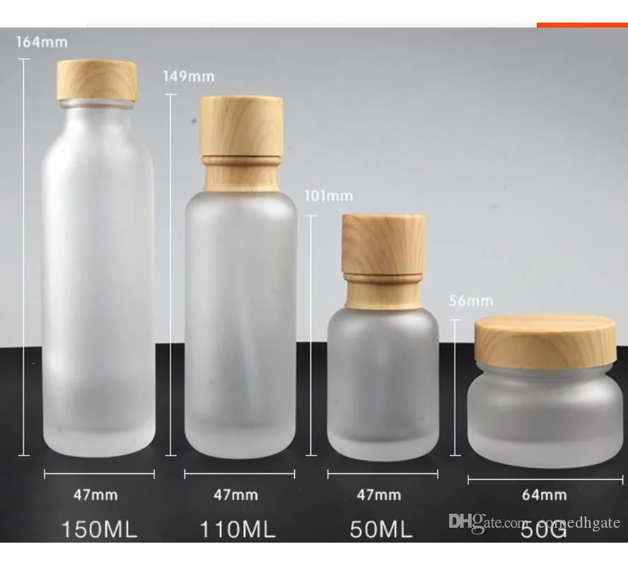 New product frosted glass 150ml 50ml serum/lotion/emulsion bottle 50g jar with imitate wood grain lids
