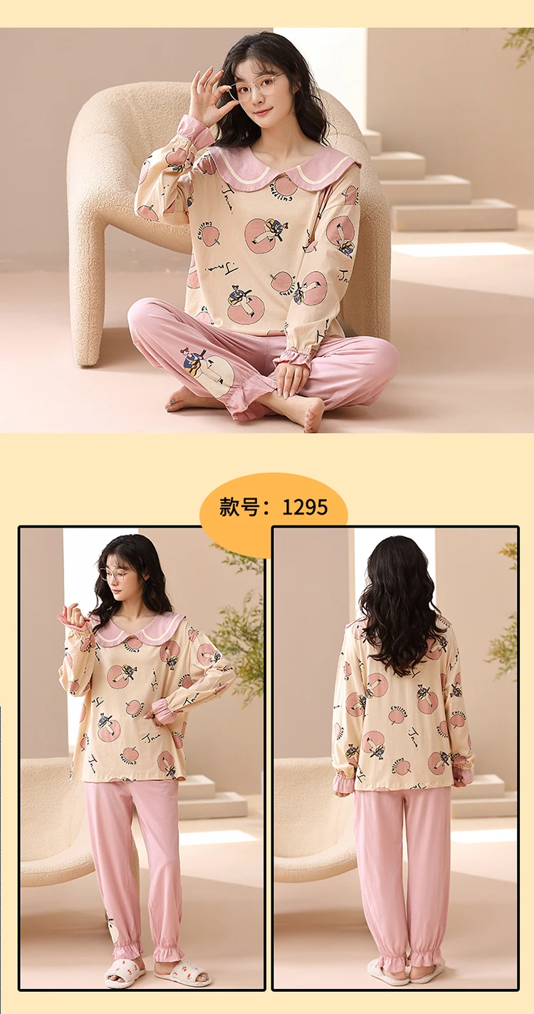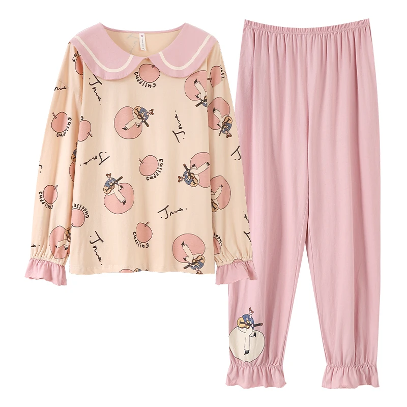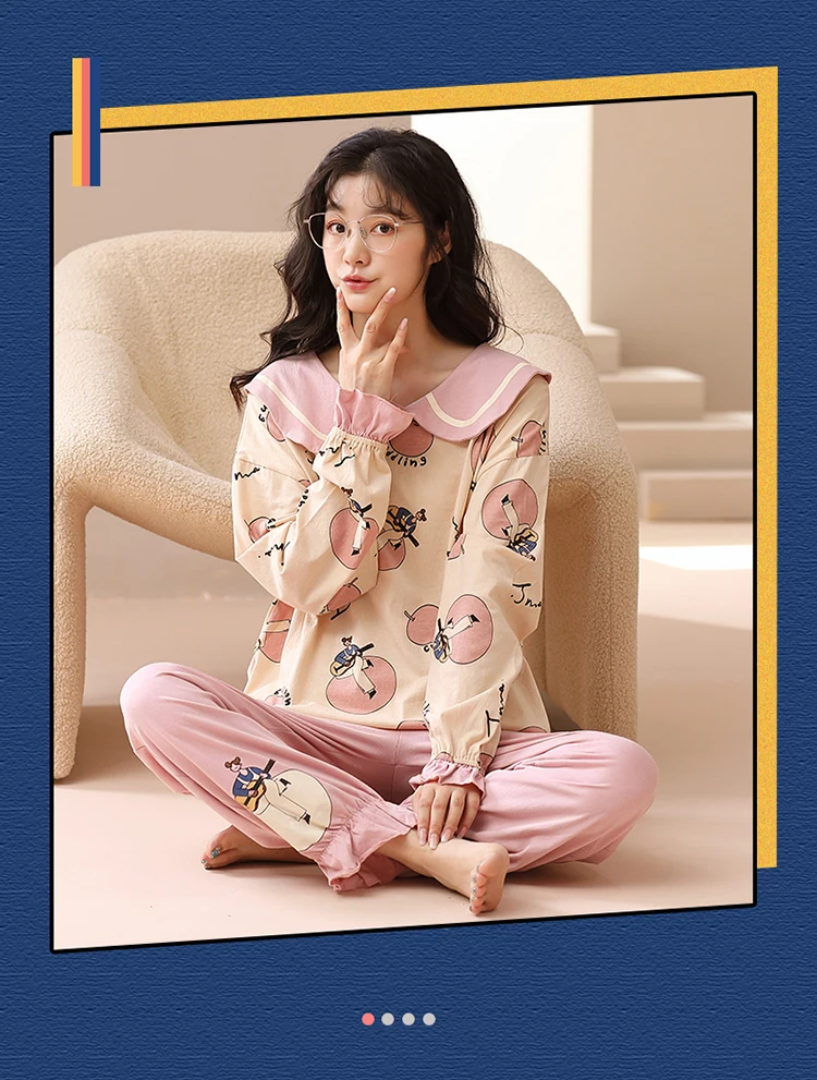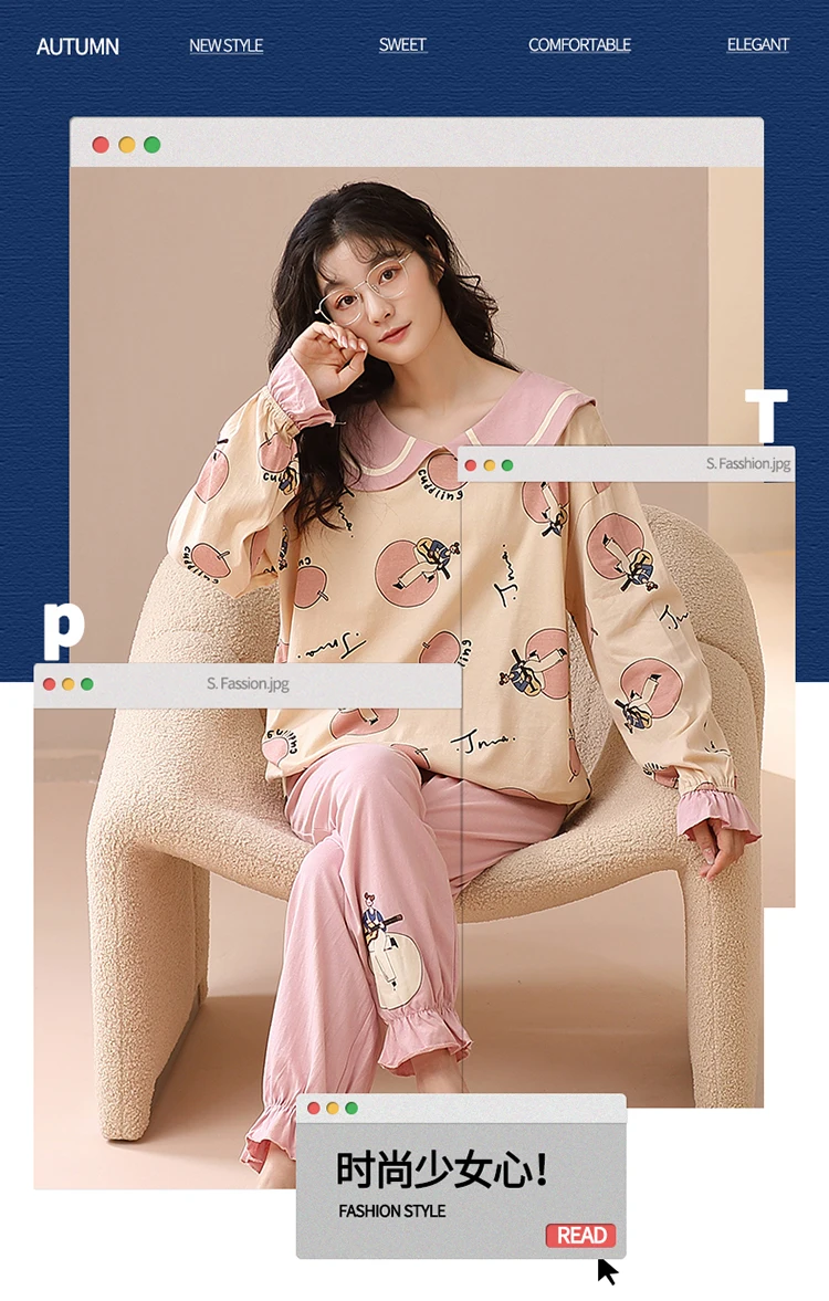 New Spring And Autumn Knited Cotton Women Pajamas Set Long Sleeve Sleepwear Female Casual Soft Sweet Pijama Mujer
