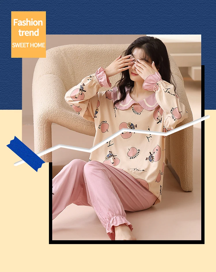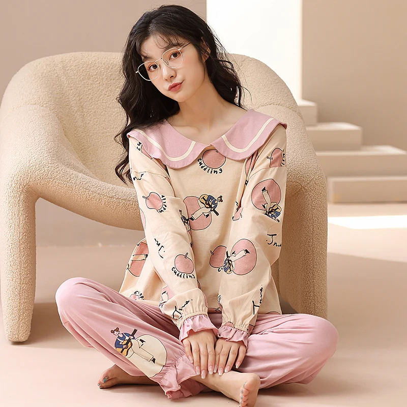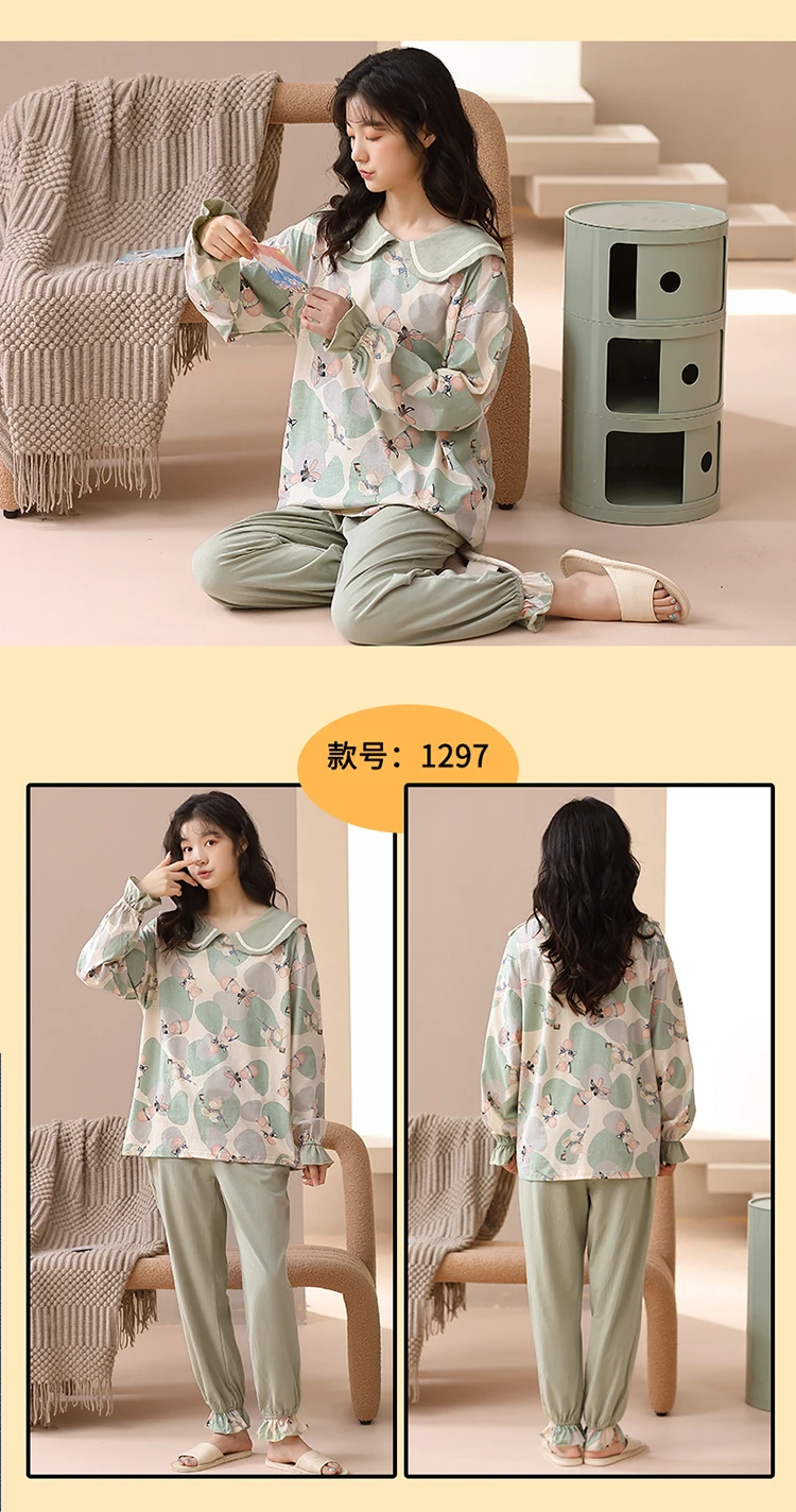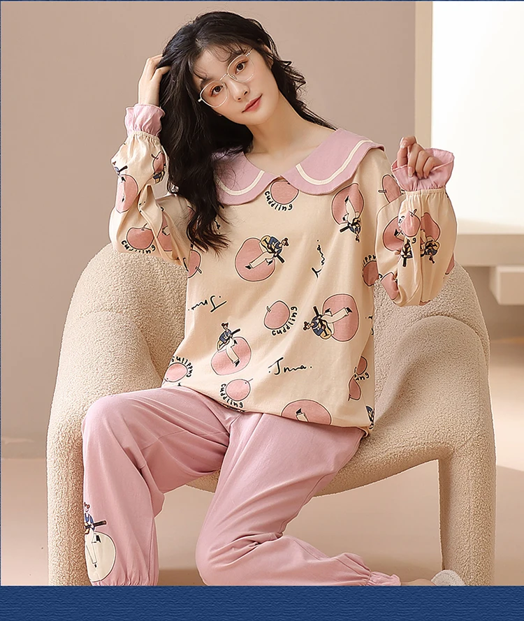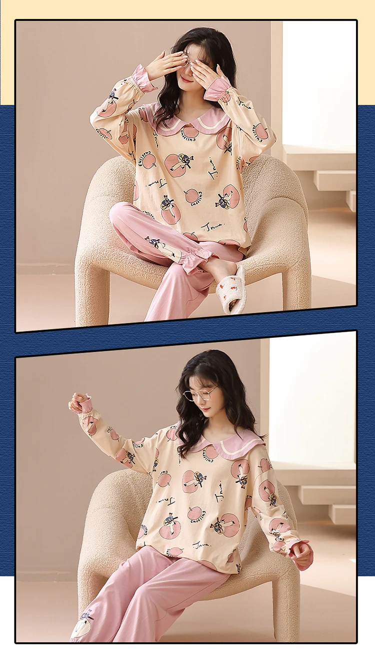 New Spring And Autumn Knited Cotton Women Pajamas Set Long Sleeve Sleepwear Female Casual Soft Sweet Pijama Mujer