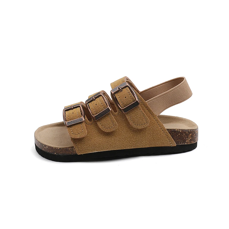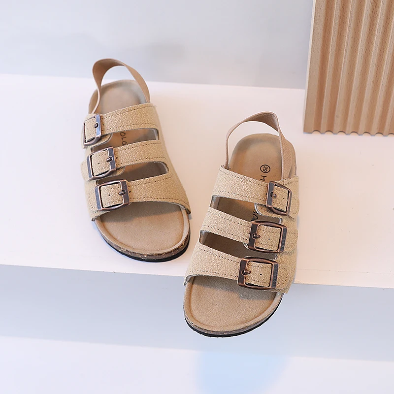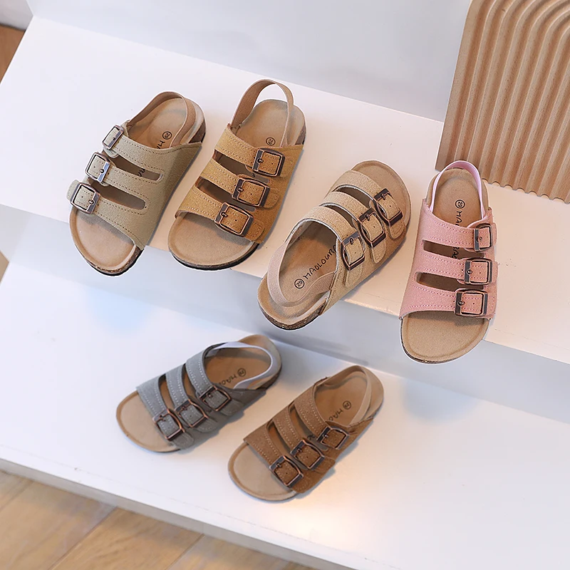New Summer Kids Beach Cork Sandals for Girls Boys Children Outdoor Casual Solid Color Nubuck Leather Non-slip Cute Slide Shoe