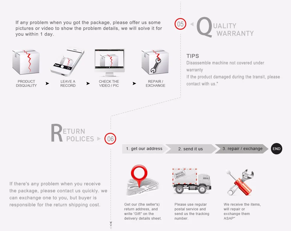 1. Although we have great confidence in the quality and prices of every products we sell, we can’t guarantee all buyers would be 100% satisfied with them due to different reasons. But no matter what happens, we promise we will do our best to Solve any problem occurred during transactions.
