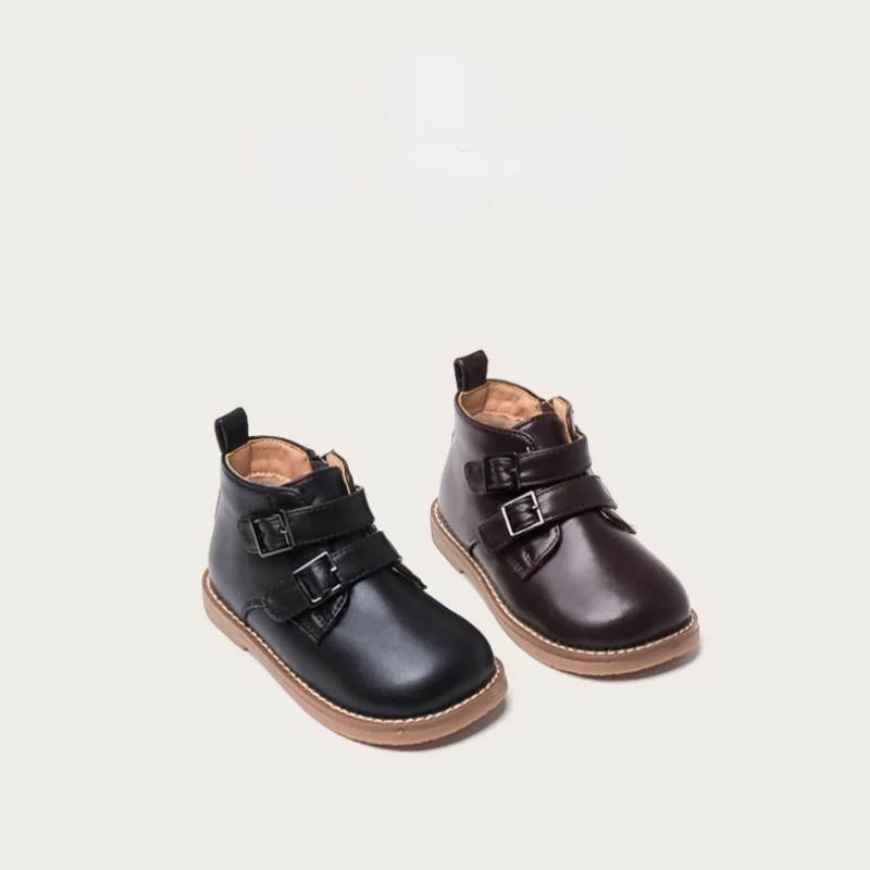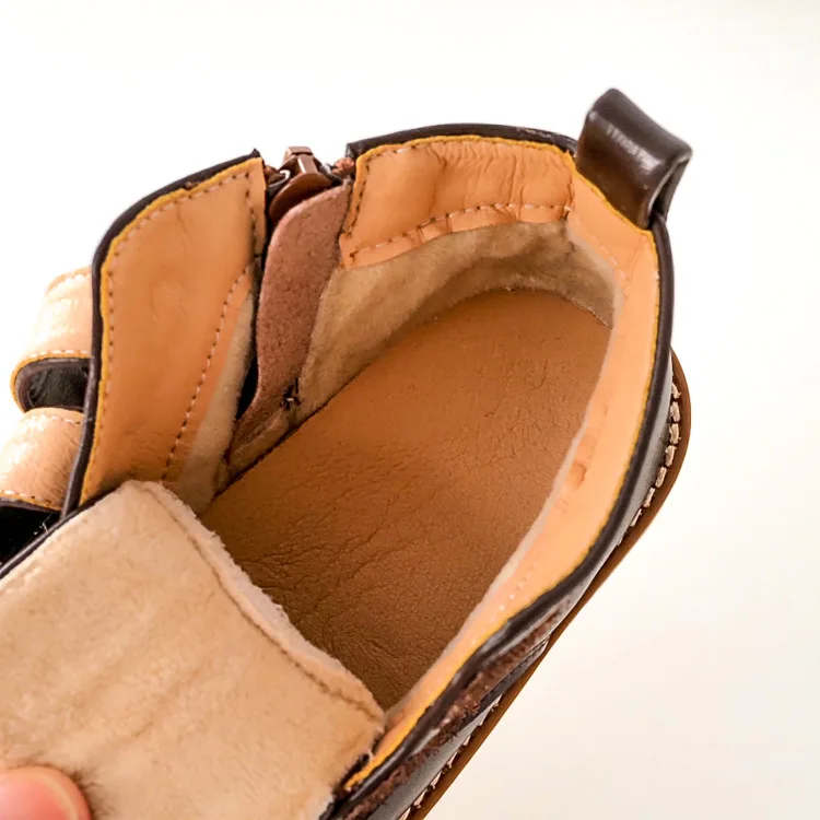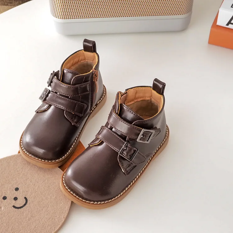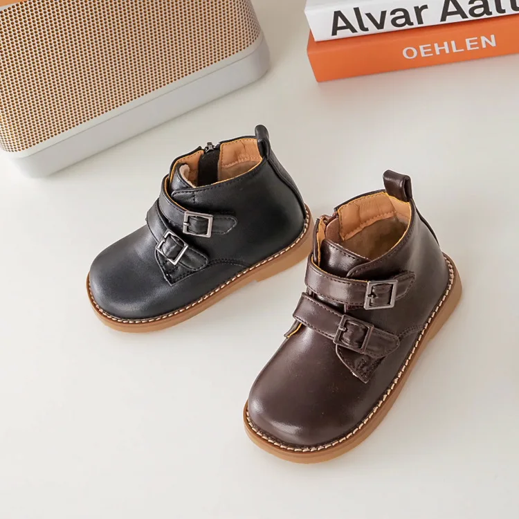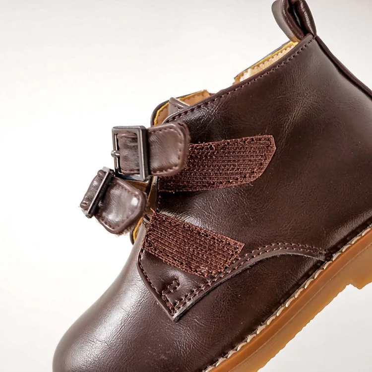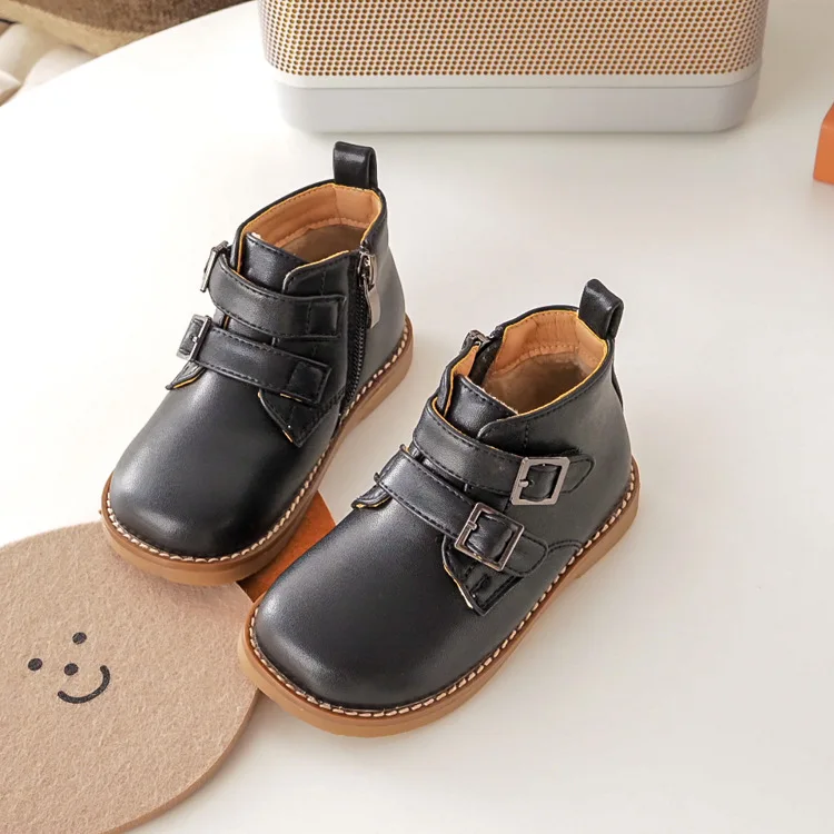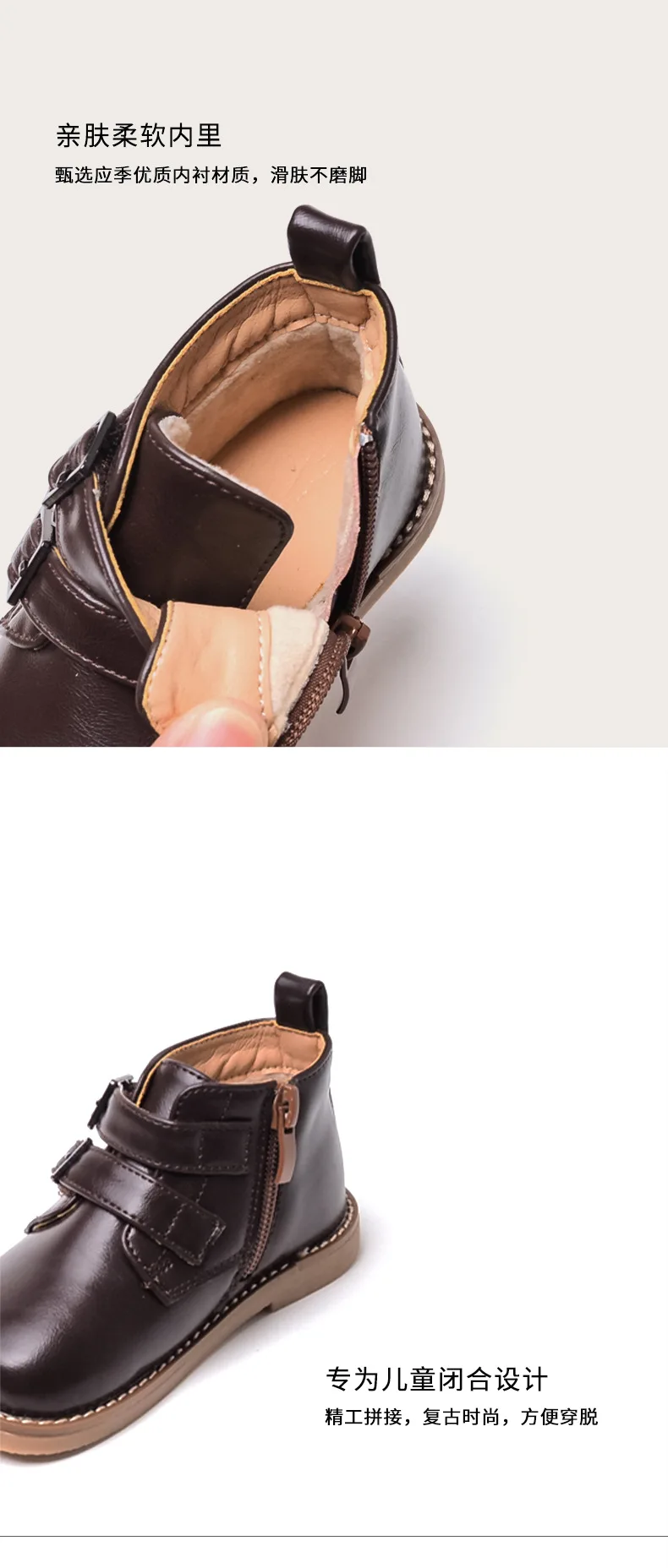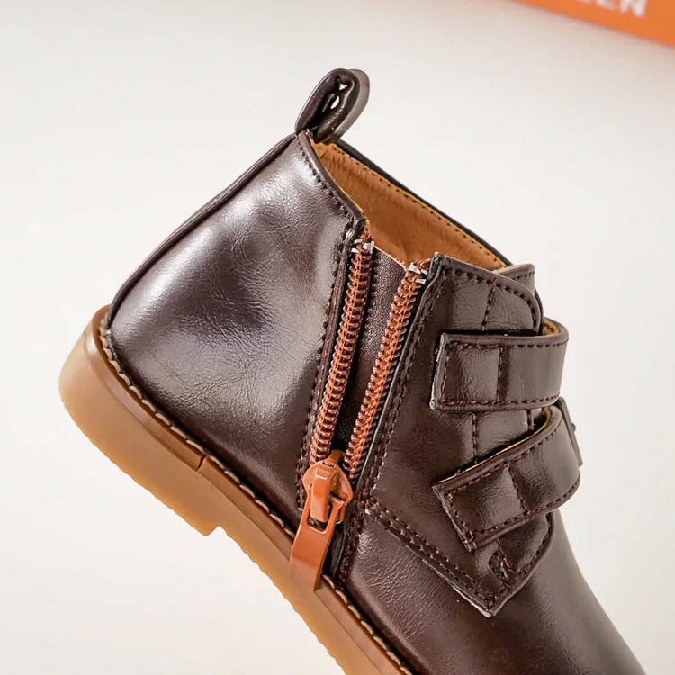 New Thin Velvet Children Leather Boots Autumn Winter Boys Warm Shoes Side Zipper High Top Kids Boots Hook Loop Side Zipper Botas