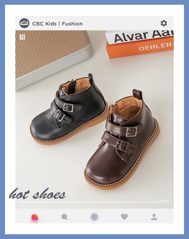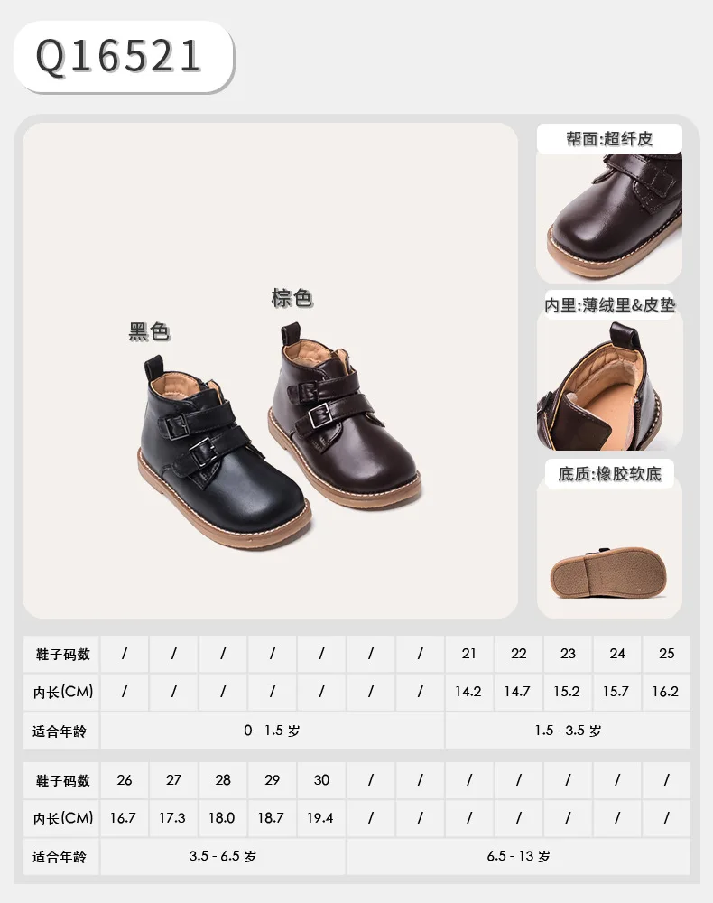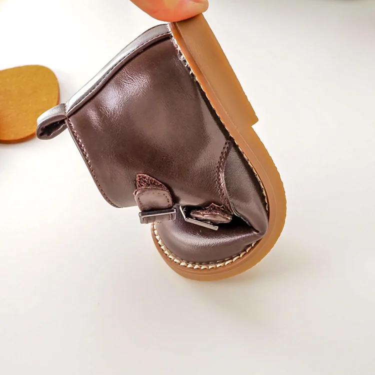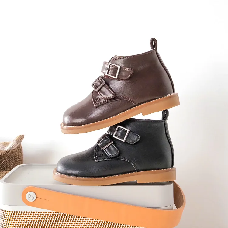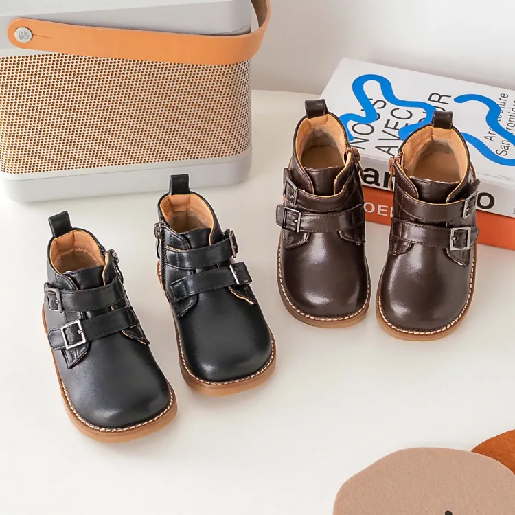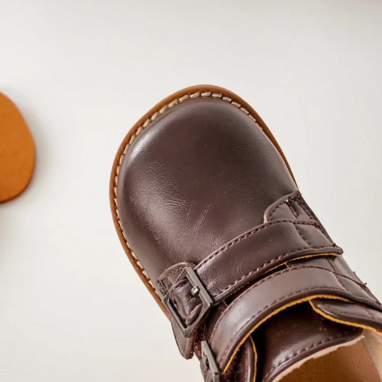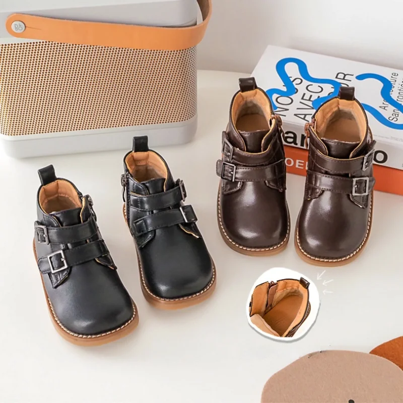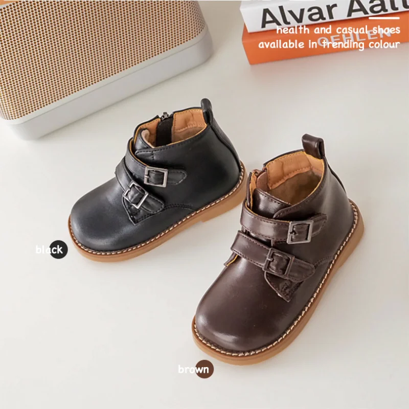 New Thin Velvet Children Leather Boots Autumn Winter Boys Warm Shoes Side Zipper High Top Kids Boots Hook Loop Side Zipper Botas