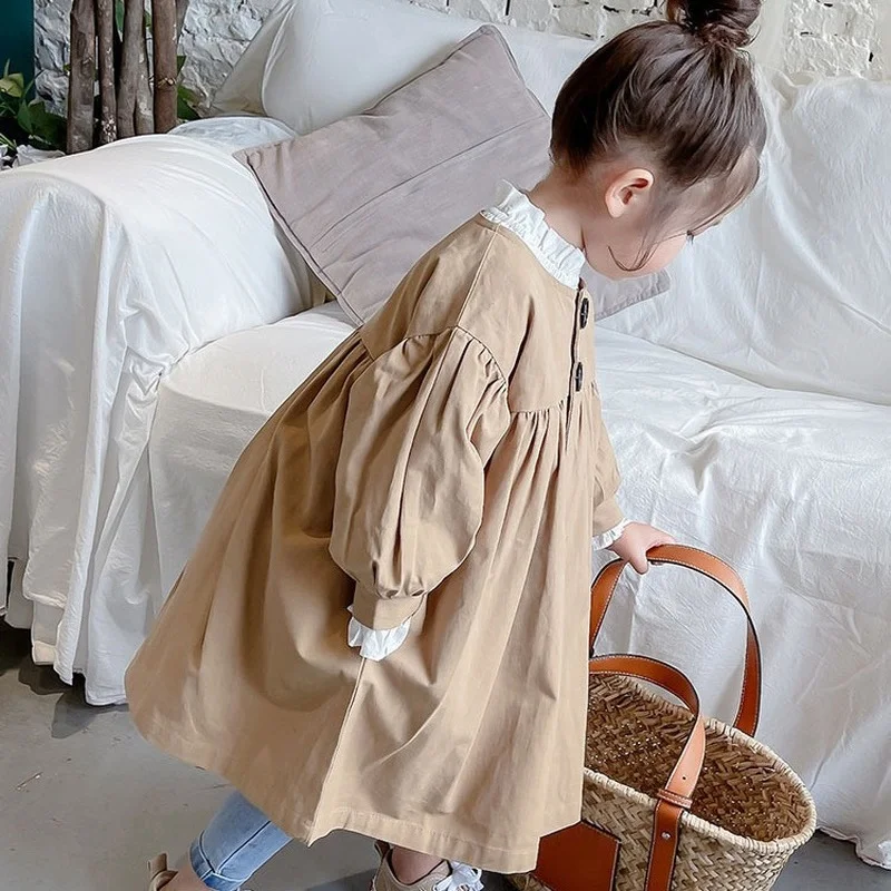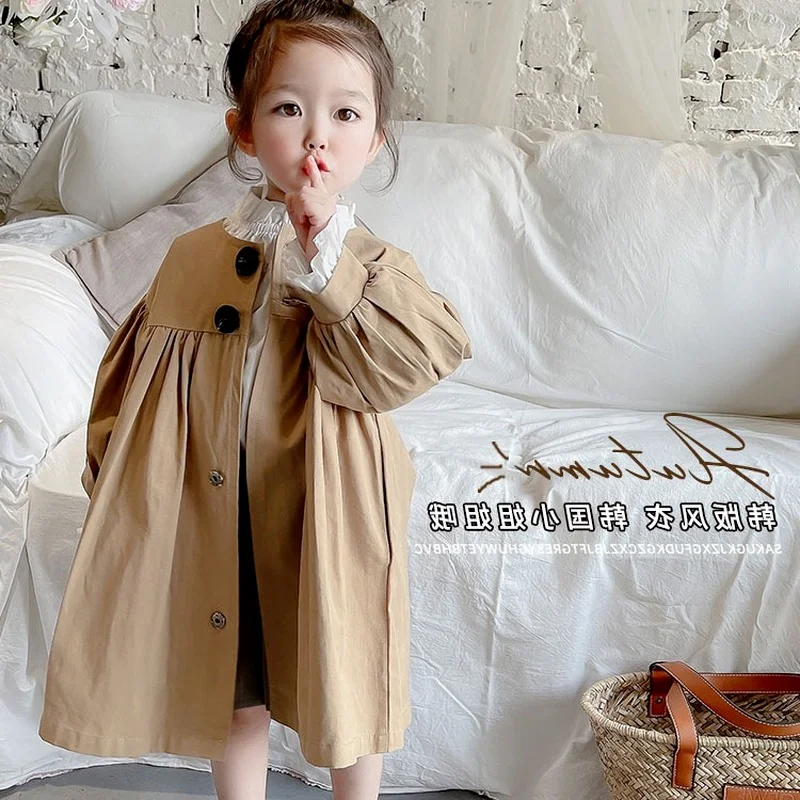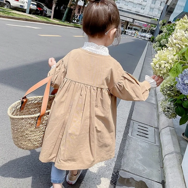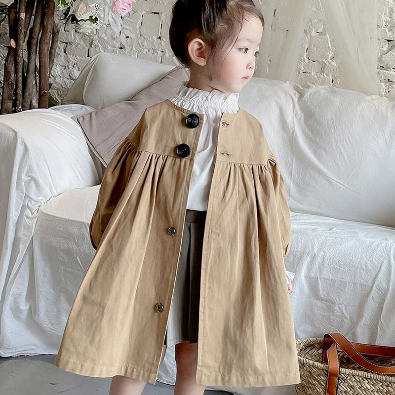 New Toddler Girls Clothes Autumn Spring Lantern Sleeve Trench Fashion Trench Coats Children Windbreaker Outerwear 2-8Y CL638
