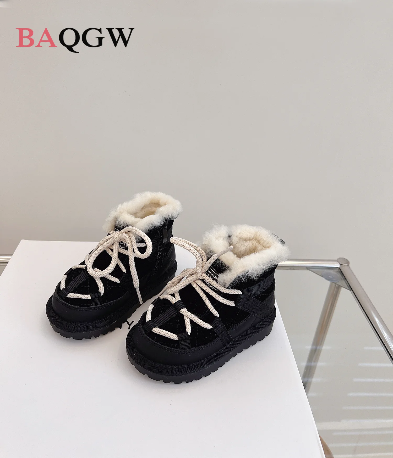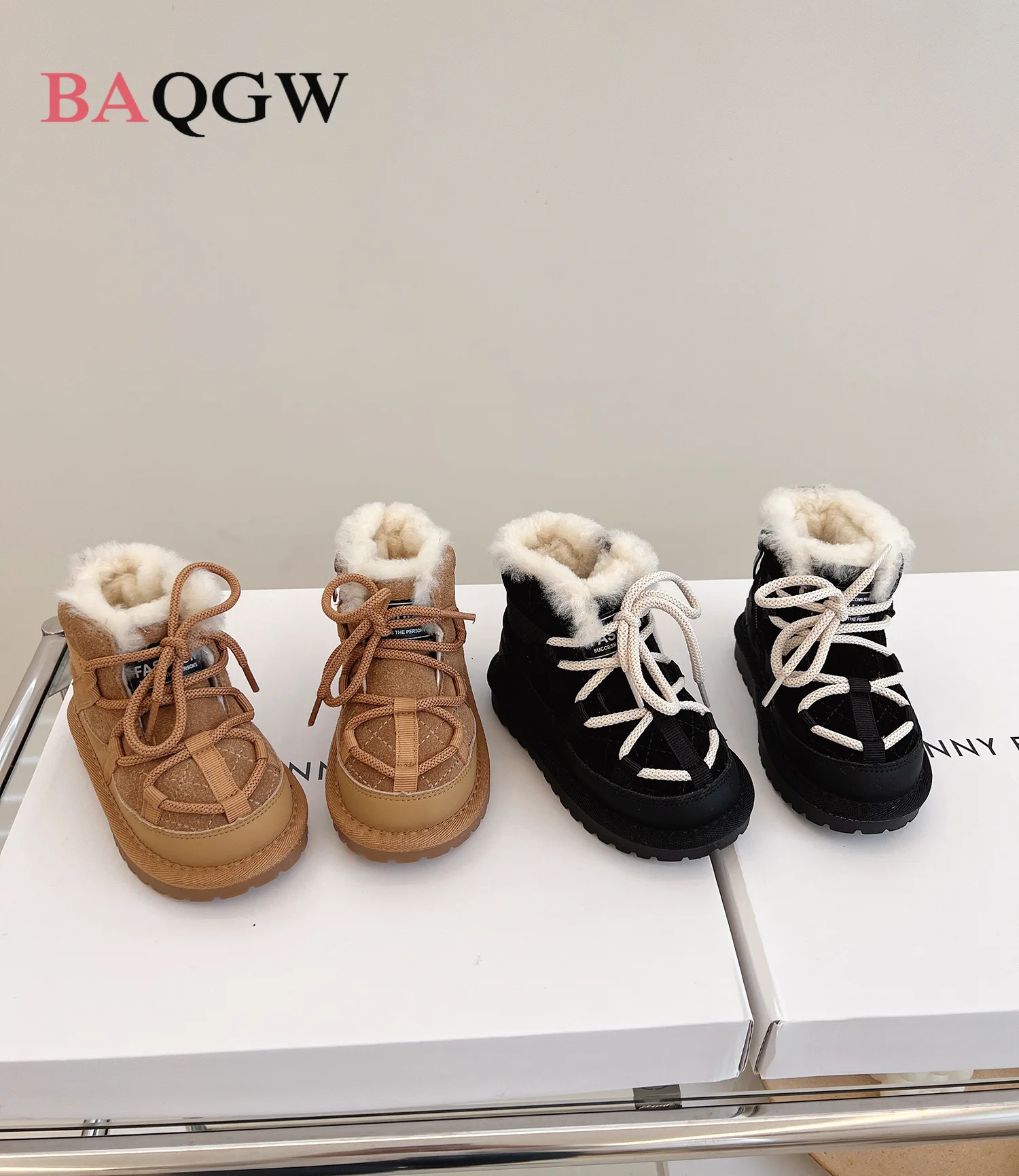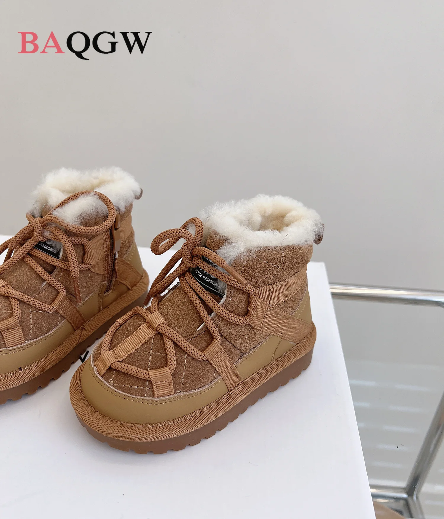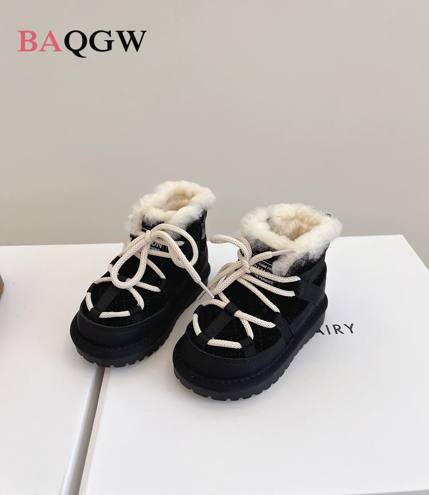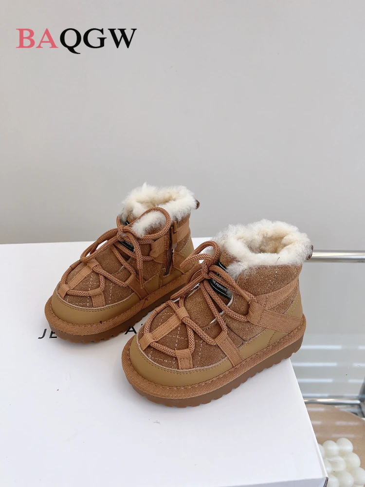 New Winter Children Warm Snow Boots Genuine Leather Warm Plush Toddler Boys Shoes Non-slip Fashion Baby Girls Boots 1-6 Years