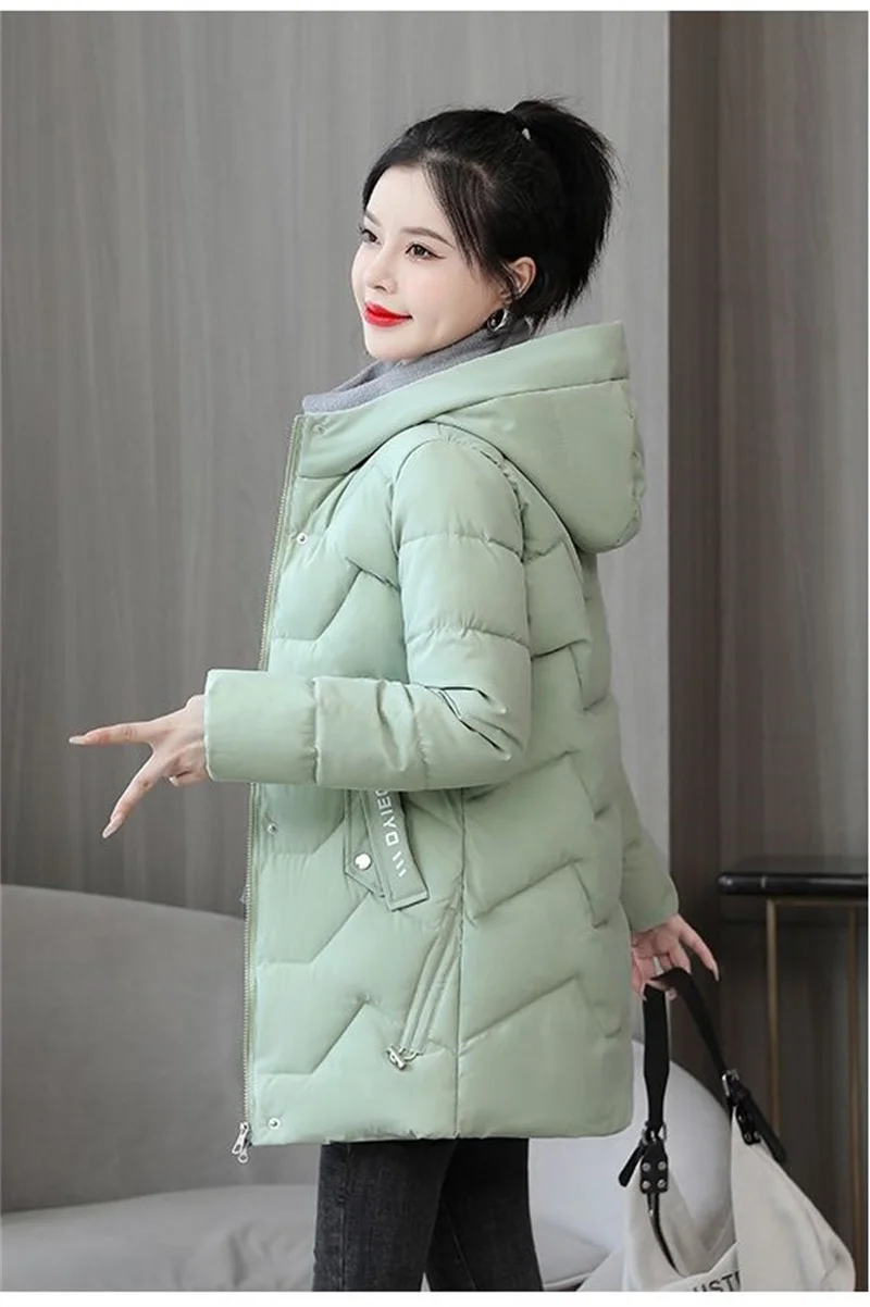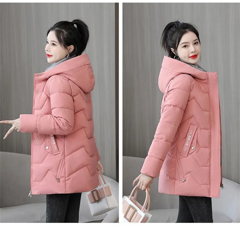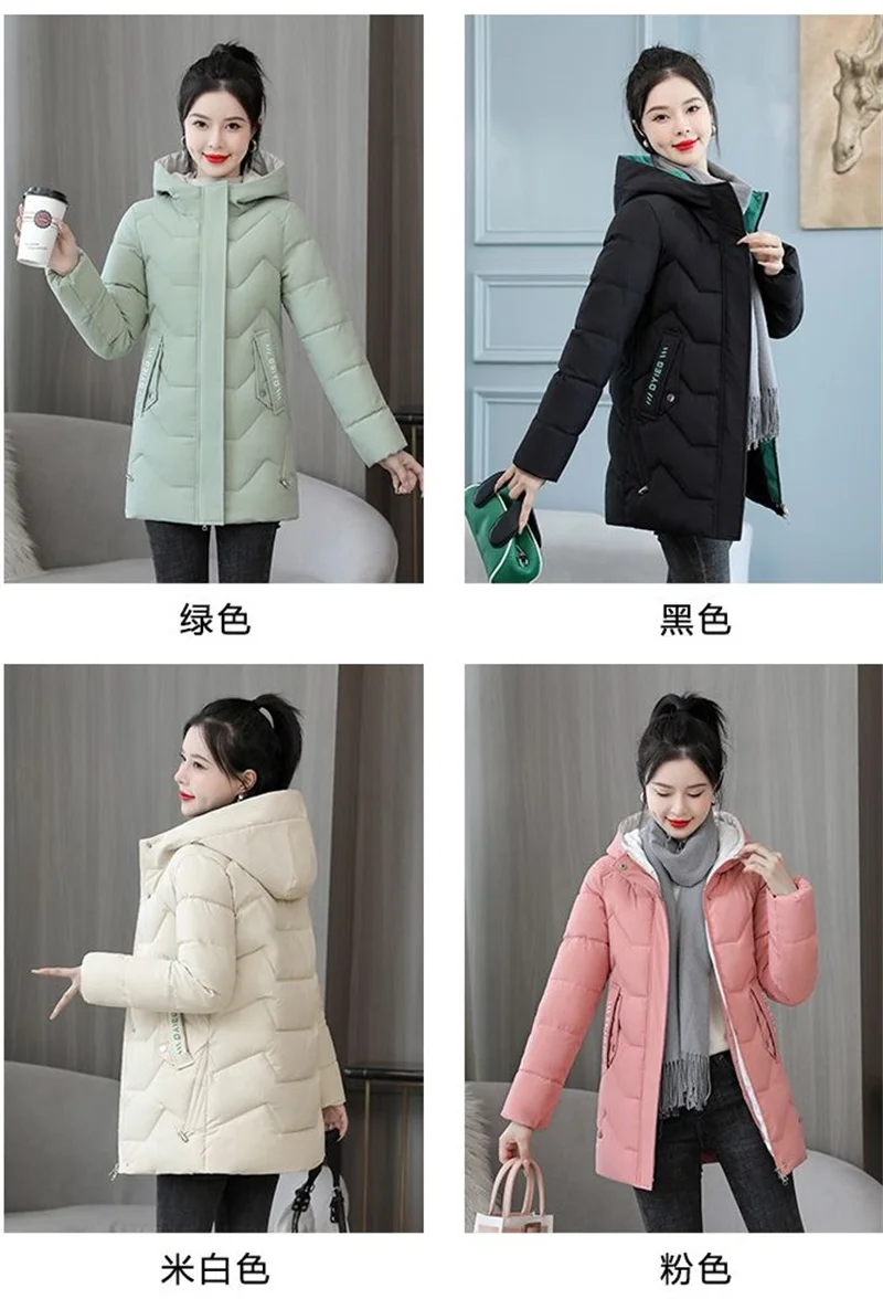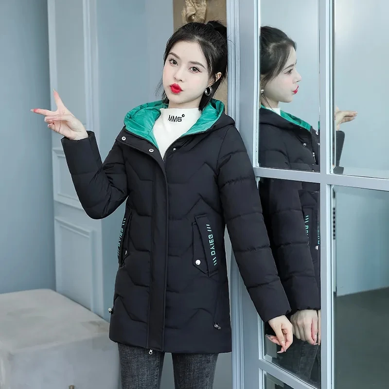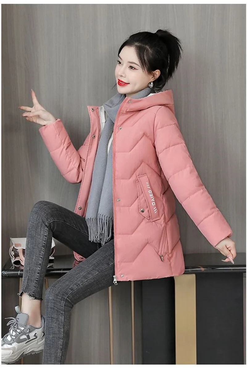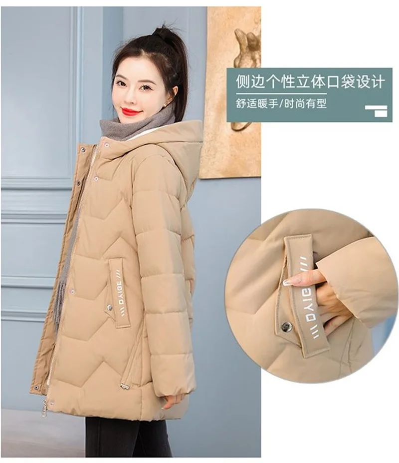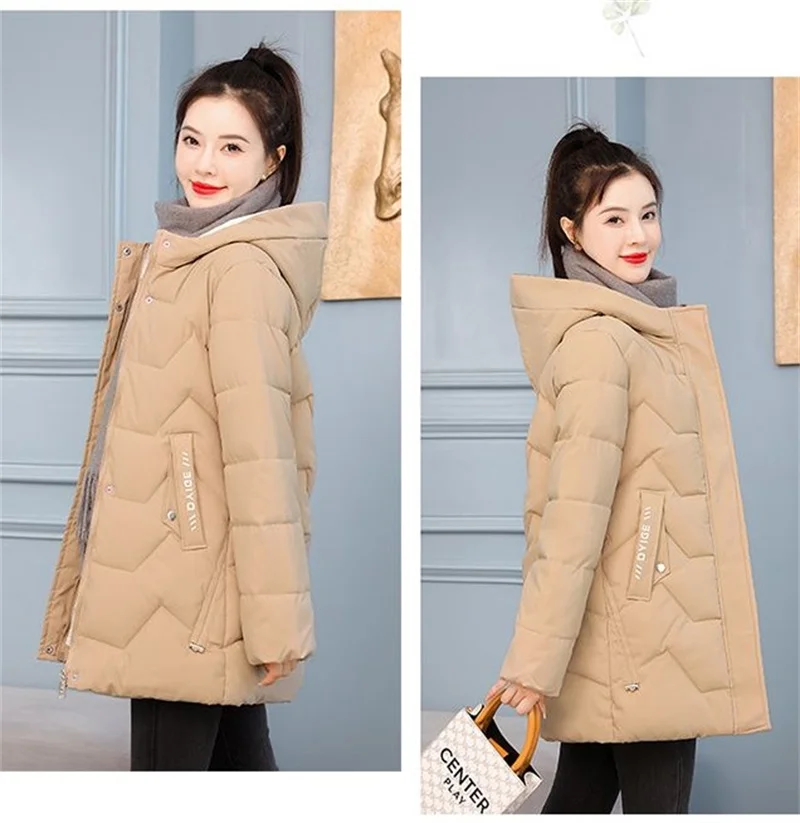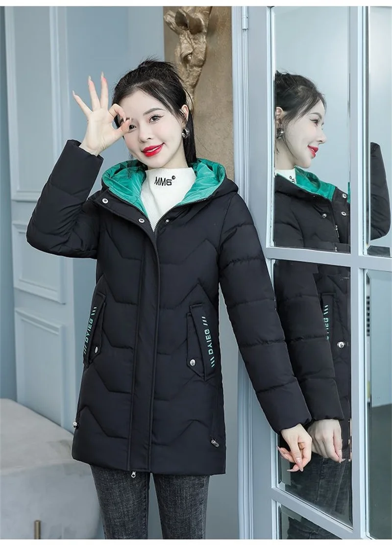 New Winter Printed Letters Women Jacket Long Hooded Parka Cotton Padded Jacket Female Parkas Casual Warm Outwear Snow Wear Coats